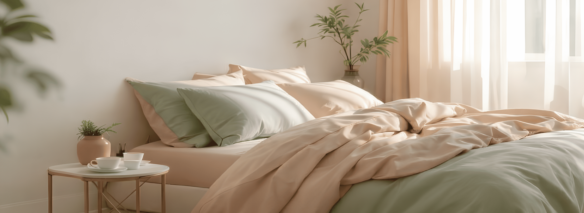 Tessuti in cotone leggero, traspiranti e delicati sulla pelle. Rinnova la tua camera con colori soft e atmosfere luminose.