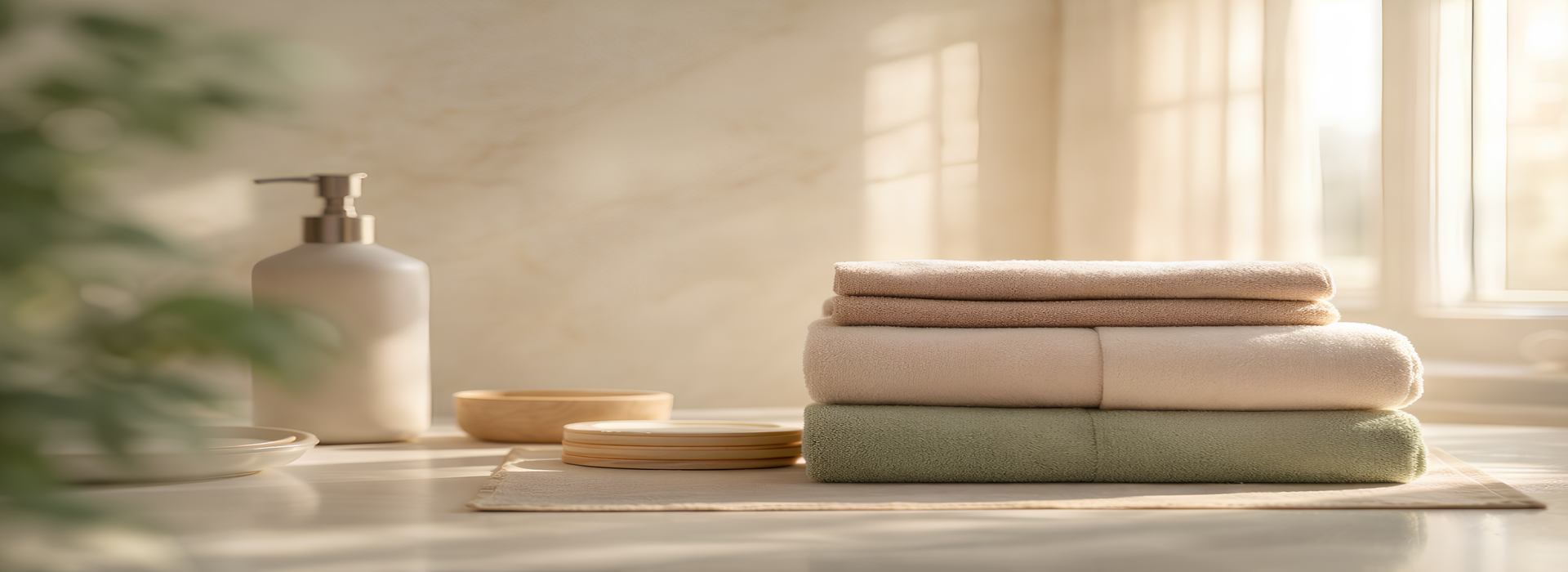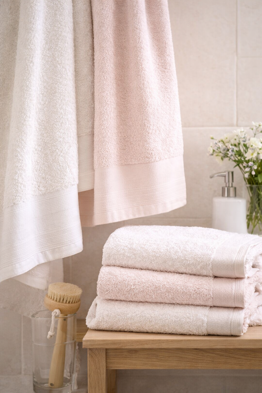 Asciugamani e tessili bagno soffici, freschi e piacevoli sulla pelle. Colori delicati e comfort quotidiano per un’atmosfera rilassante.