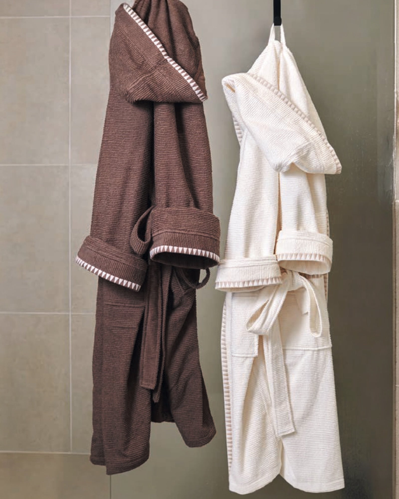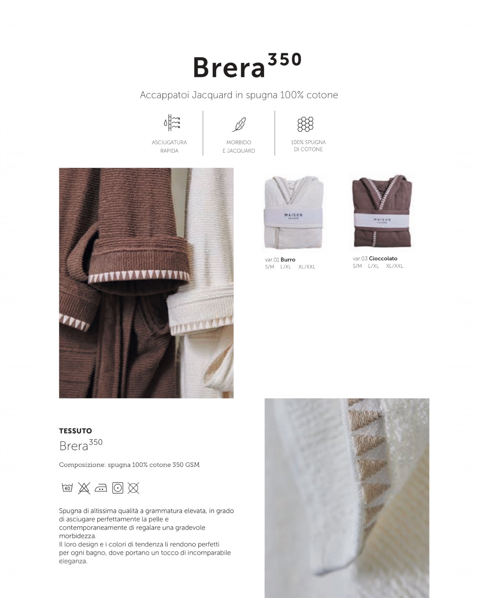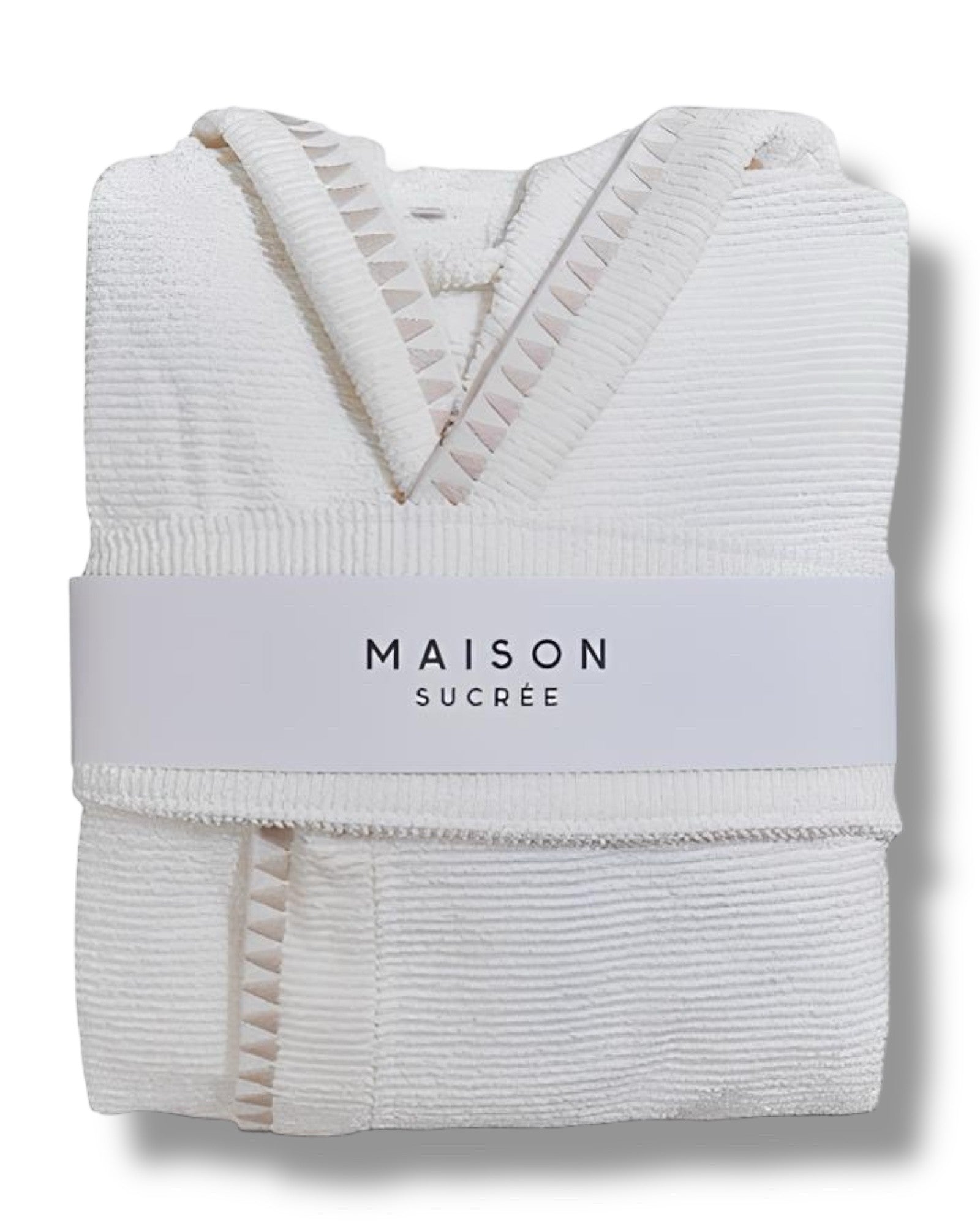 Scopri l'accappatoio Brera 350 di Maison Sucrèe, realizzato in spugna jacquard 100% cotone da 350 GSM: naturale, traspirante, altamente assorbente.