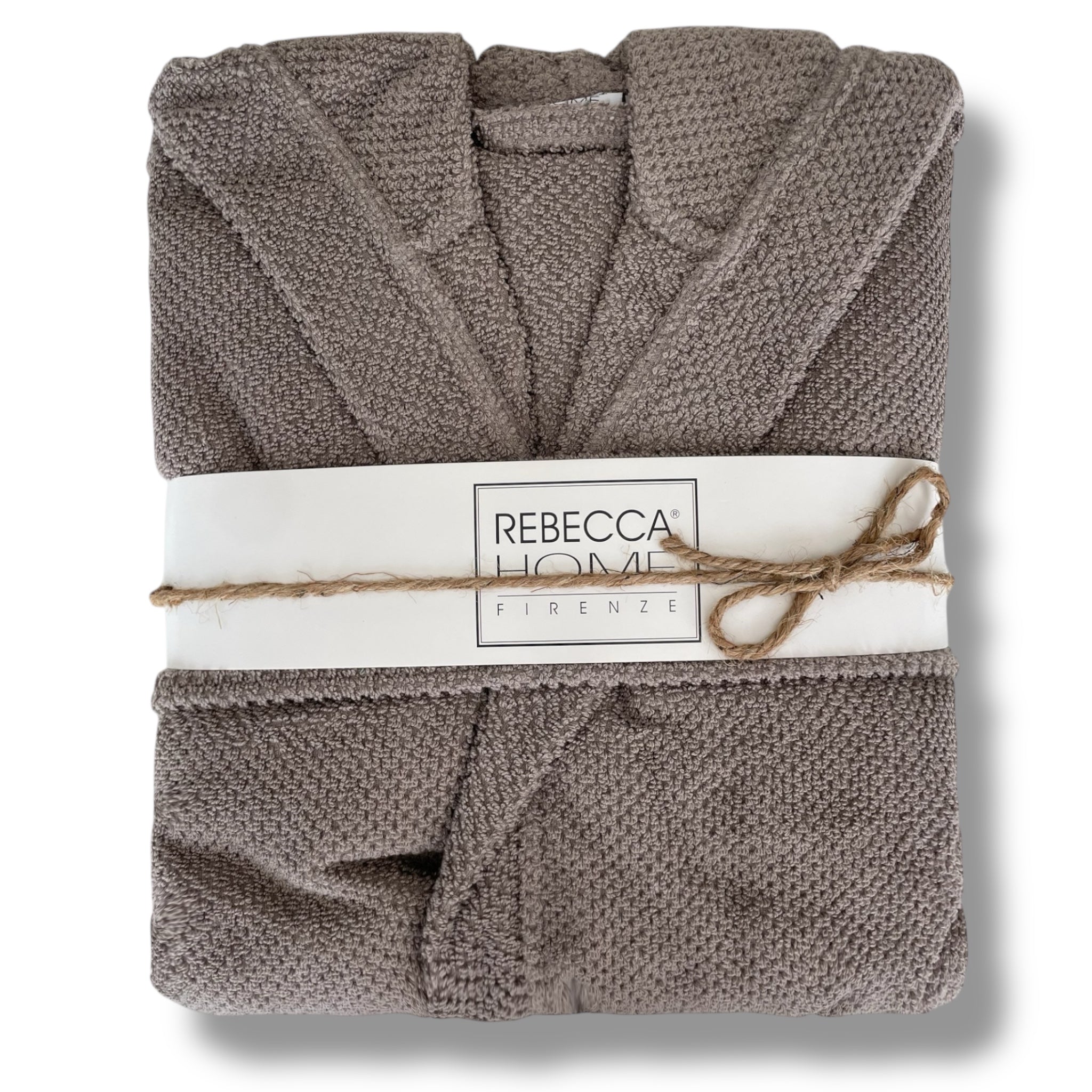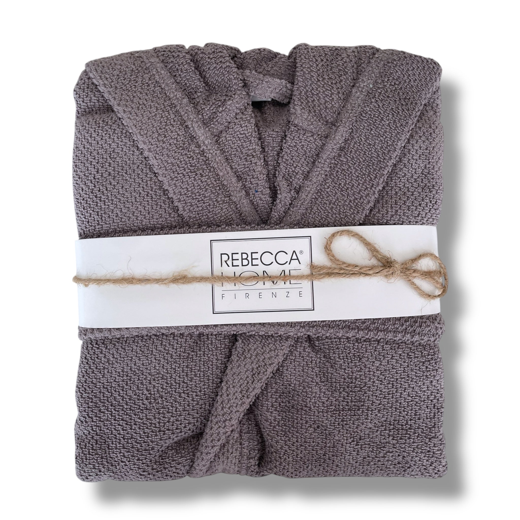 Accappatoio Unisex con cappuccio 100% spugna di cotone con lavorazione jacquard di altissima qualità a grammatura elevata, in grado di asciugare perfettamente la pelle e contemporaneamente di regalare una gradevole morbidezza.