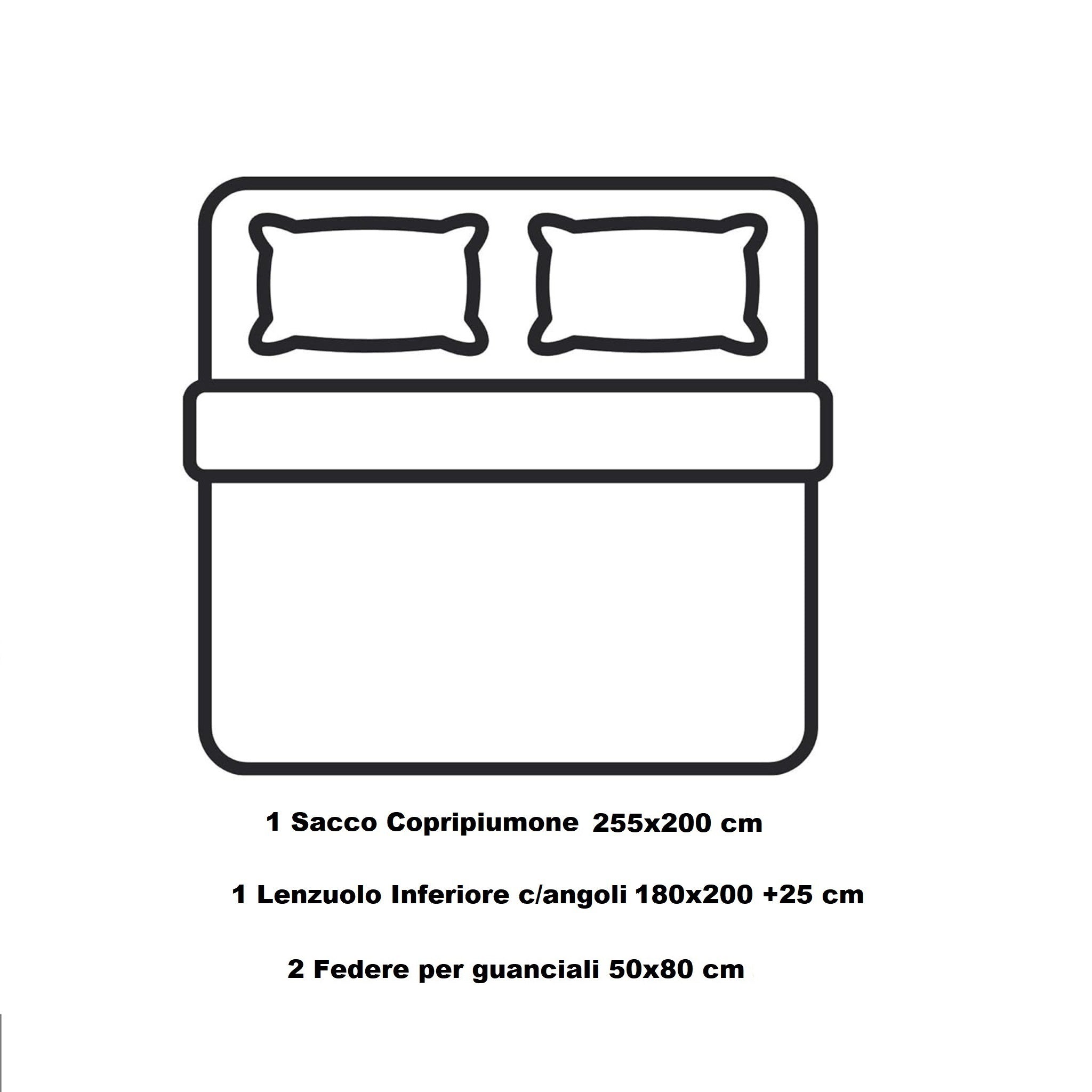 🛏️ Completo matrimoniale Caleffi – Sacco copripiumone 255x200 cm, lenzuolo con angoli 180x200 cm, 2 federe 50x80 cm