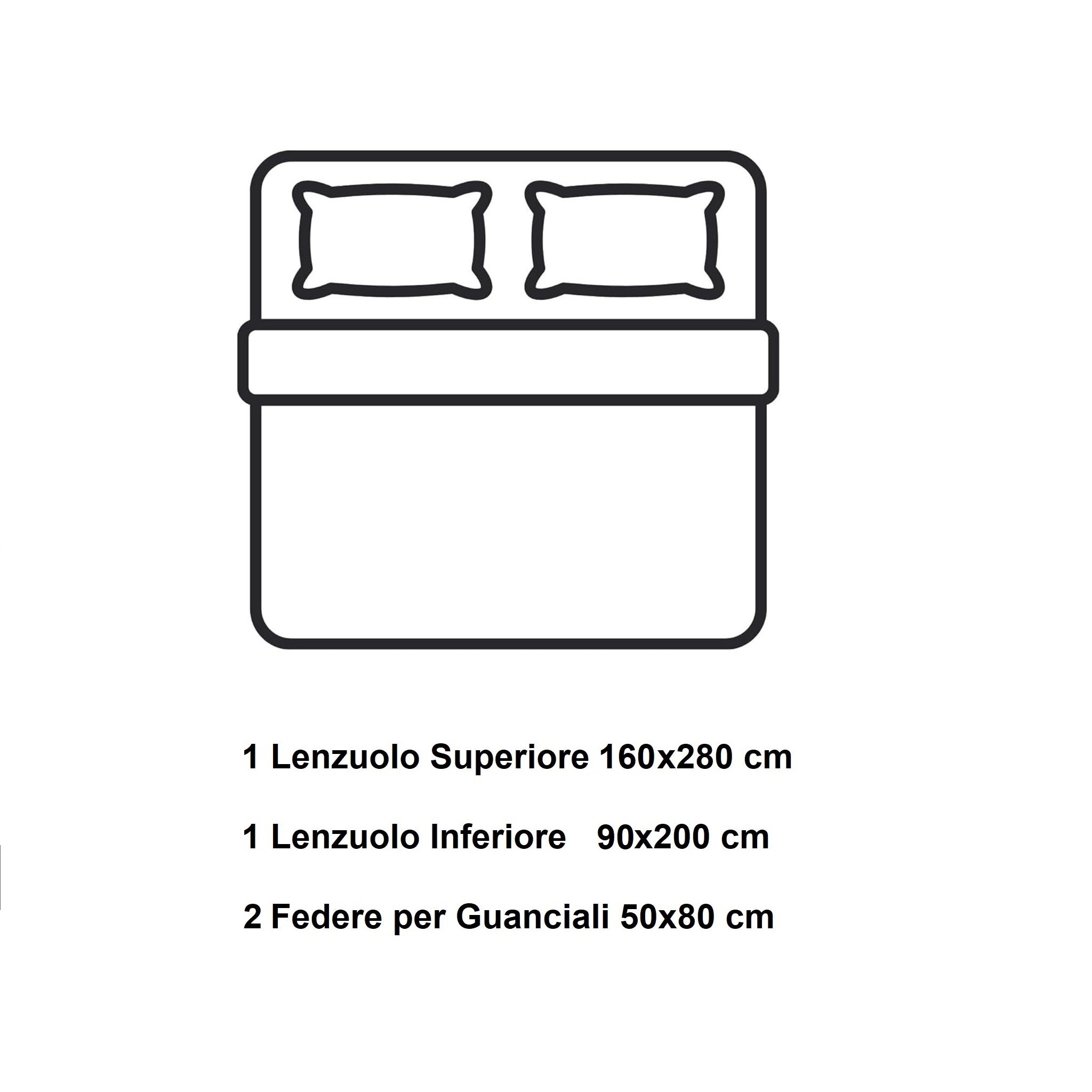 🛏️ Completo Una Piazza: lenzuolo sopra 160x280 cm, lenzuolo con angoli 90x200 cm, 2 federe 50x80 cm