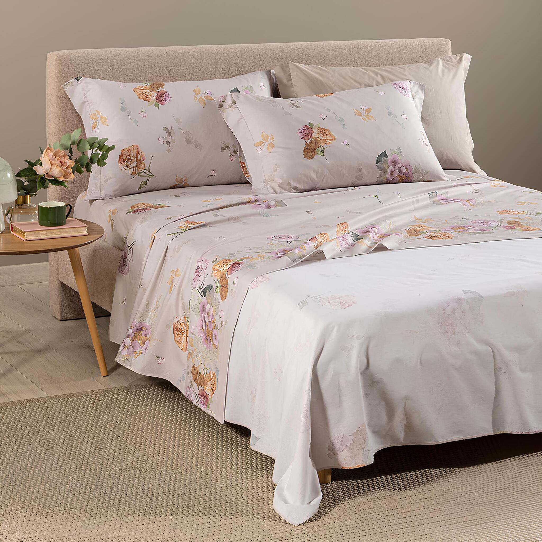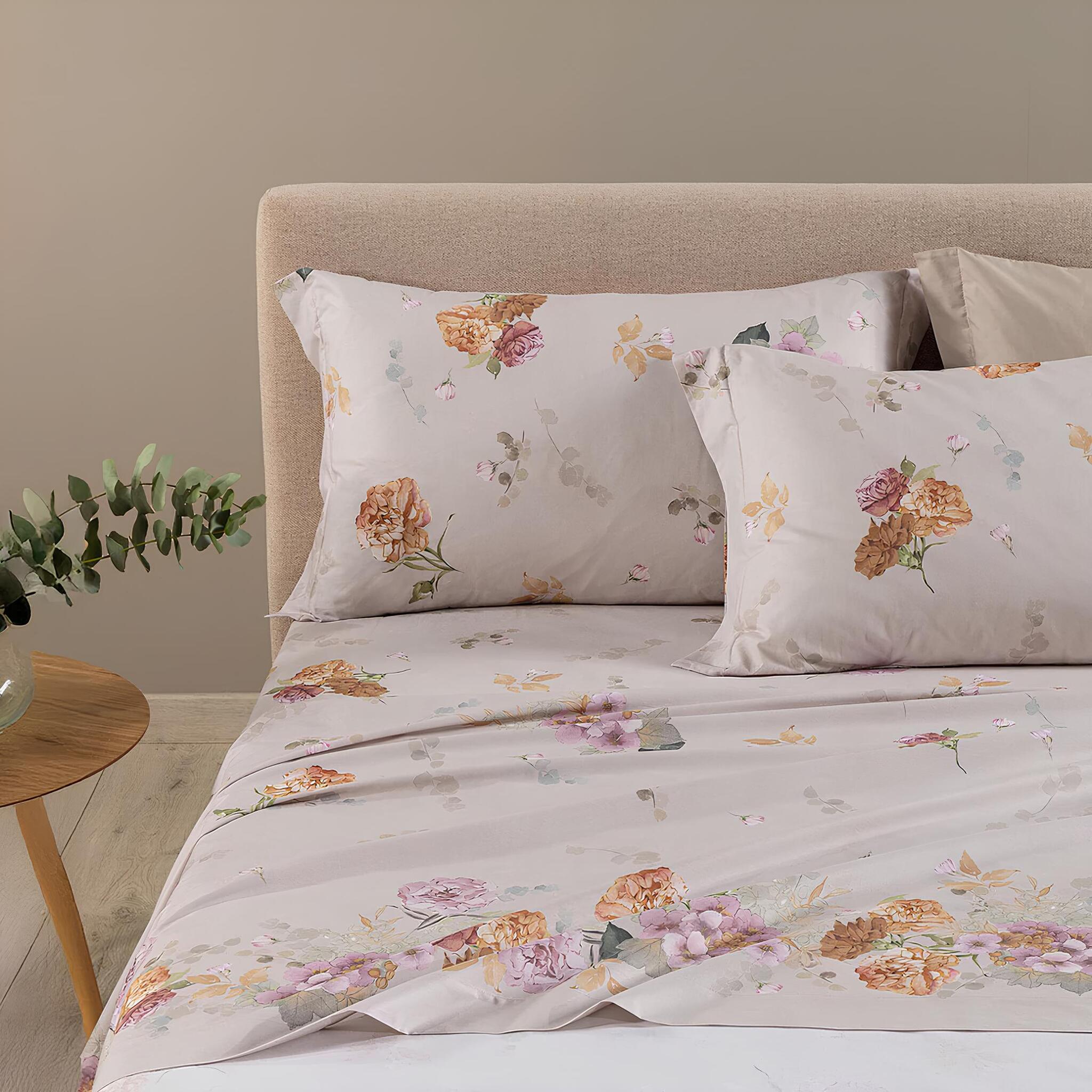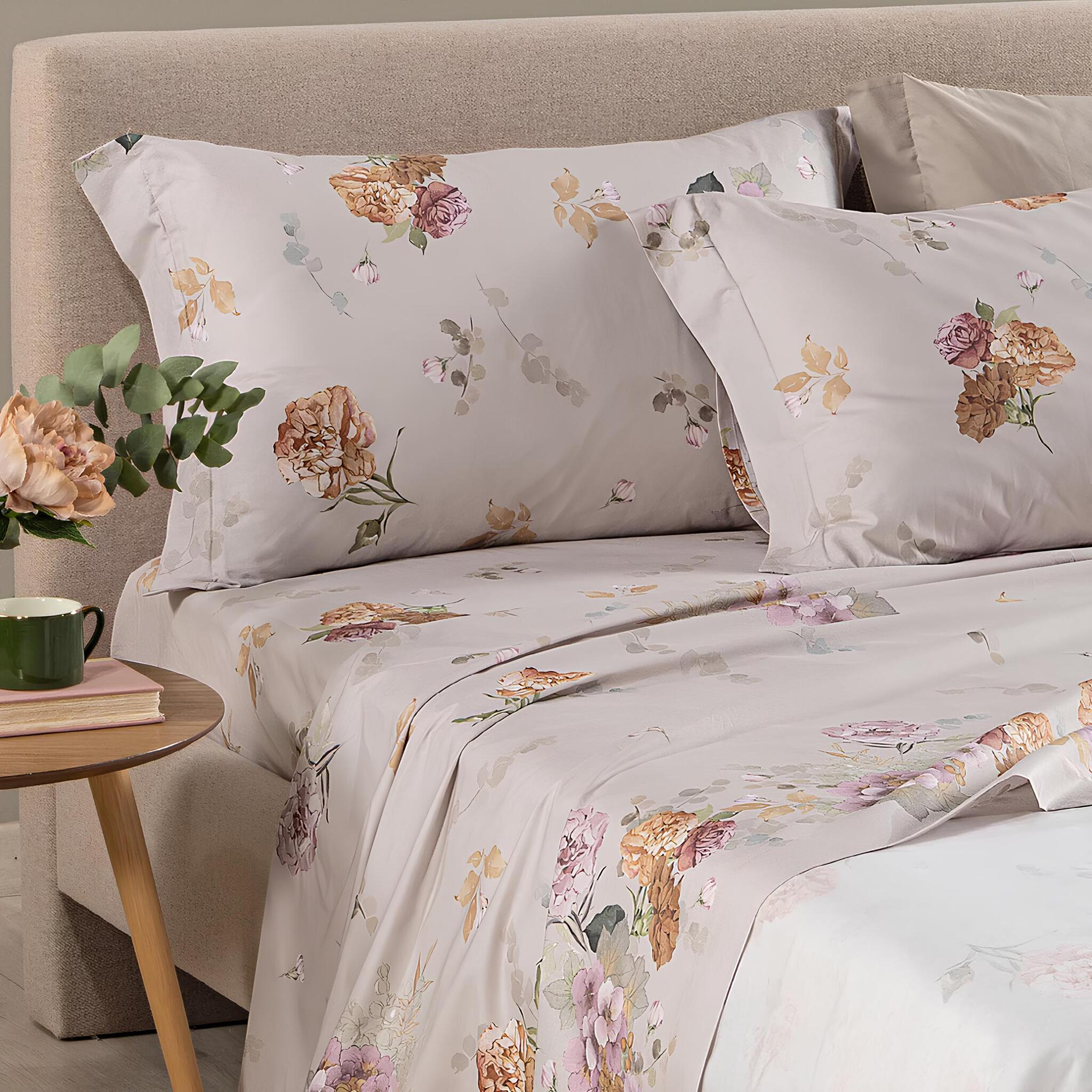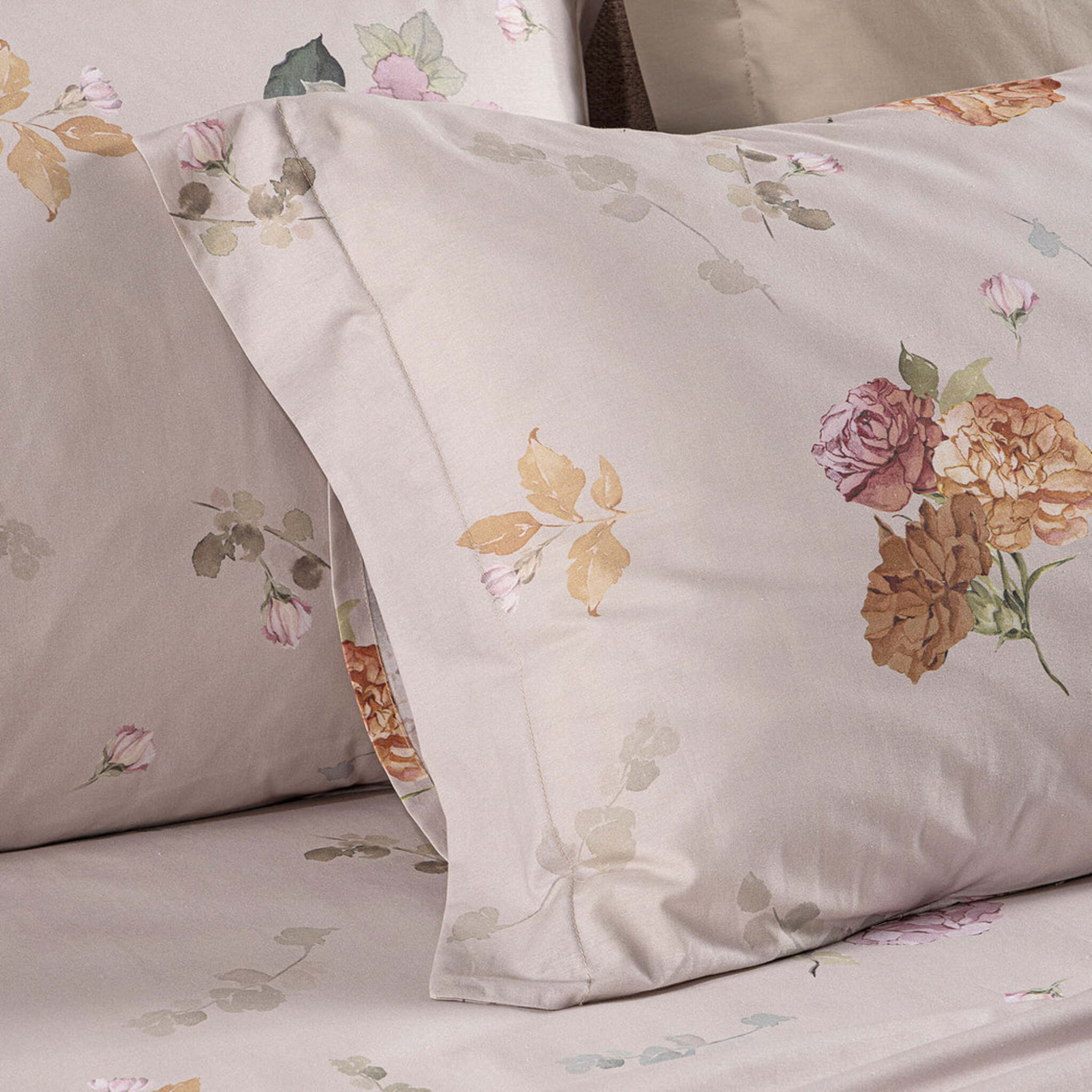 🌸 Design floreale digitale – Fiori delicati nei toni tortora per un letto raffinato