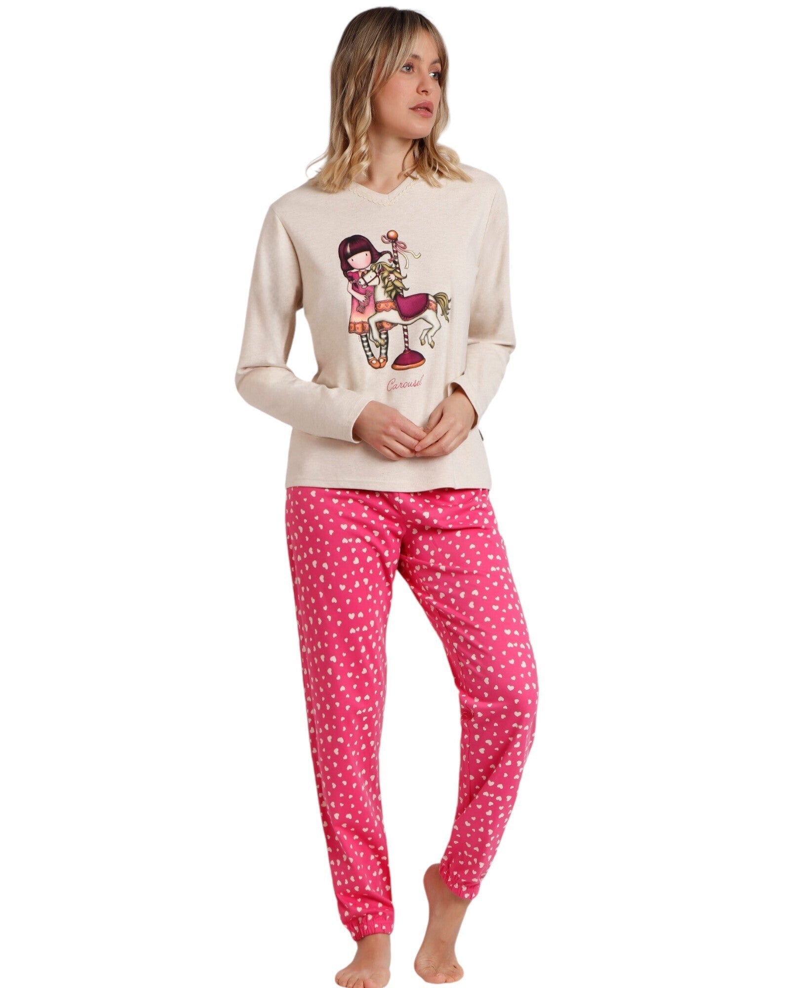 ⭐ Stile dolce e romantico – pigiama donna invernale con stampa esclusiva gorjuss carousel, che raffigura una bimba con cavalluccio: tenero e raffinato, ideale per chi ama i dettagli femminili