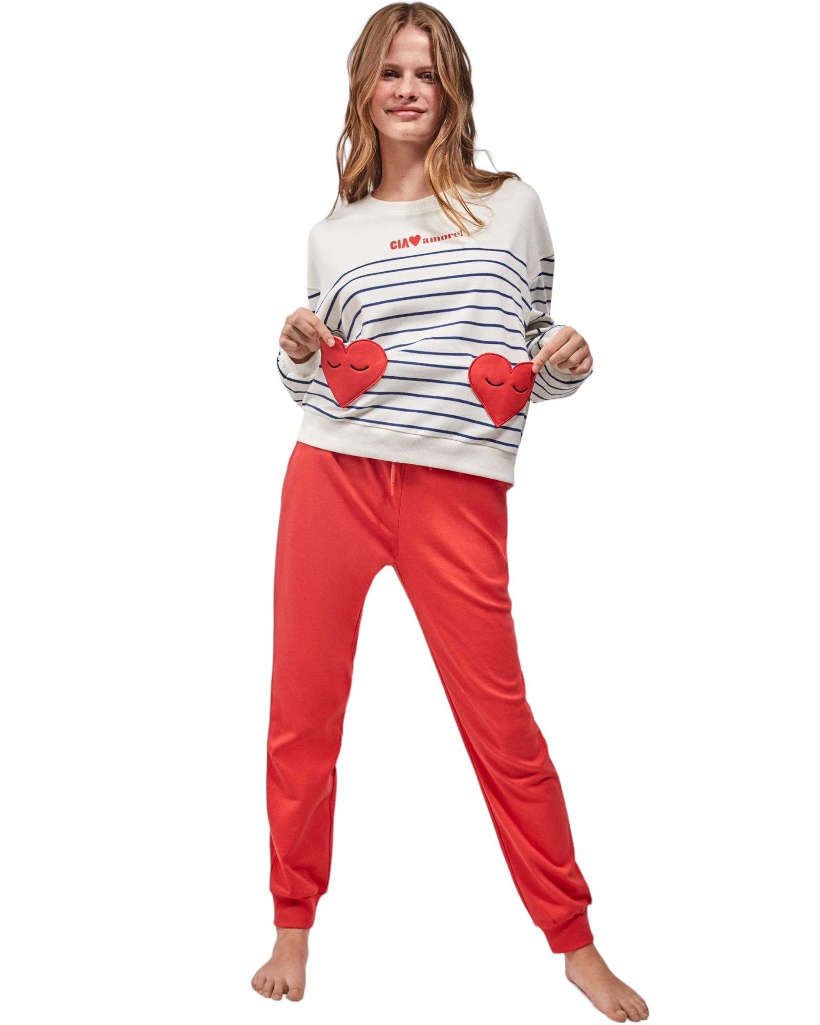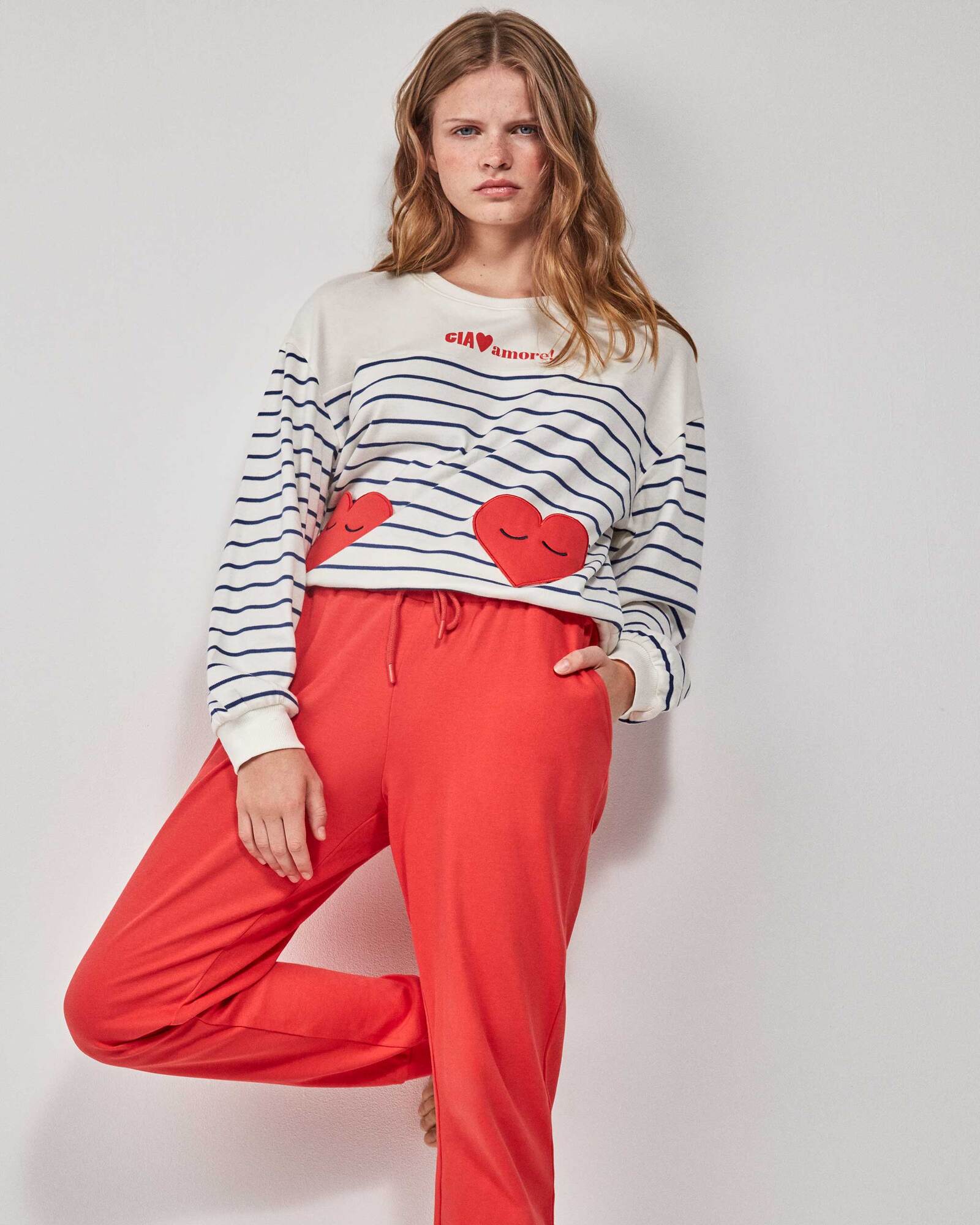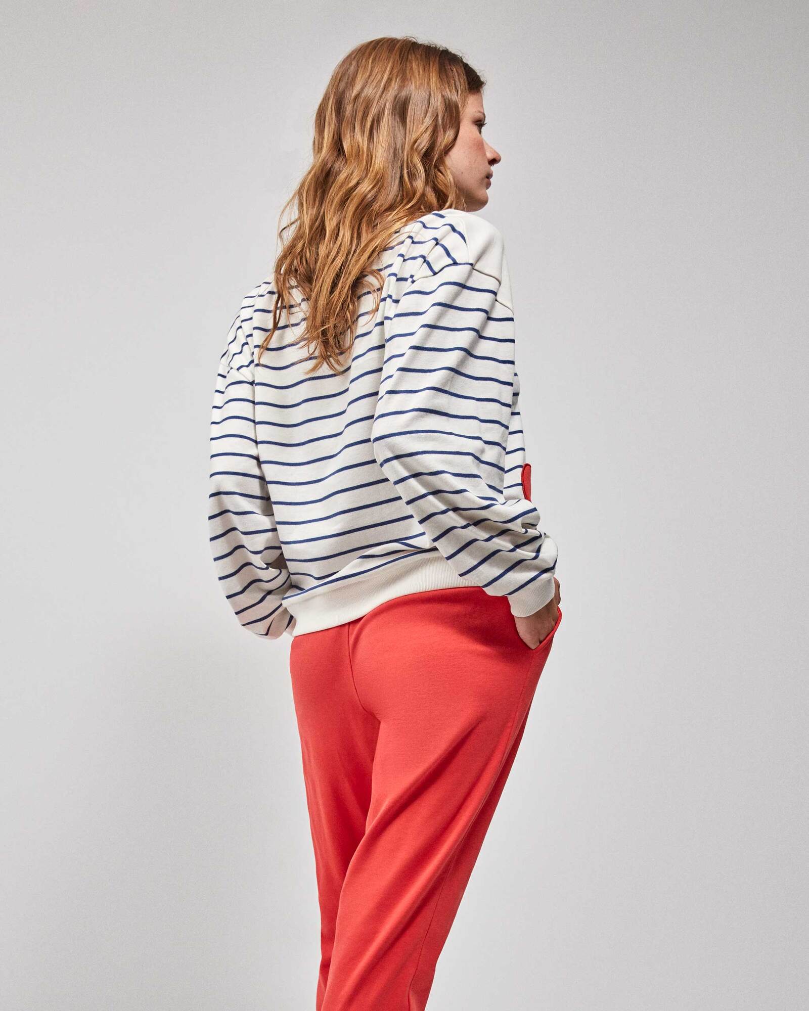 Maglia: Girocollo a maniche lunghe. Fantasia a righe marinière ed applicazioni