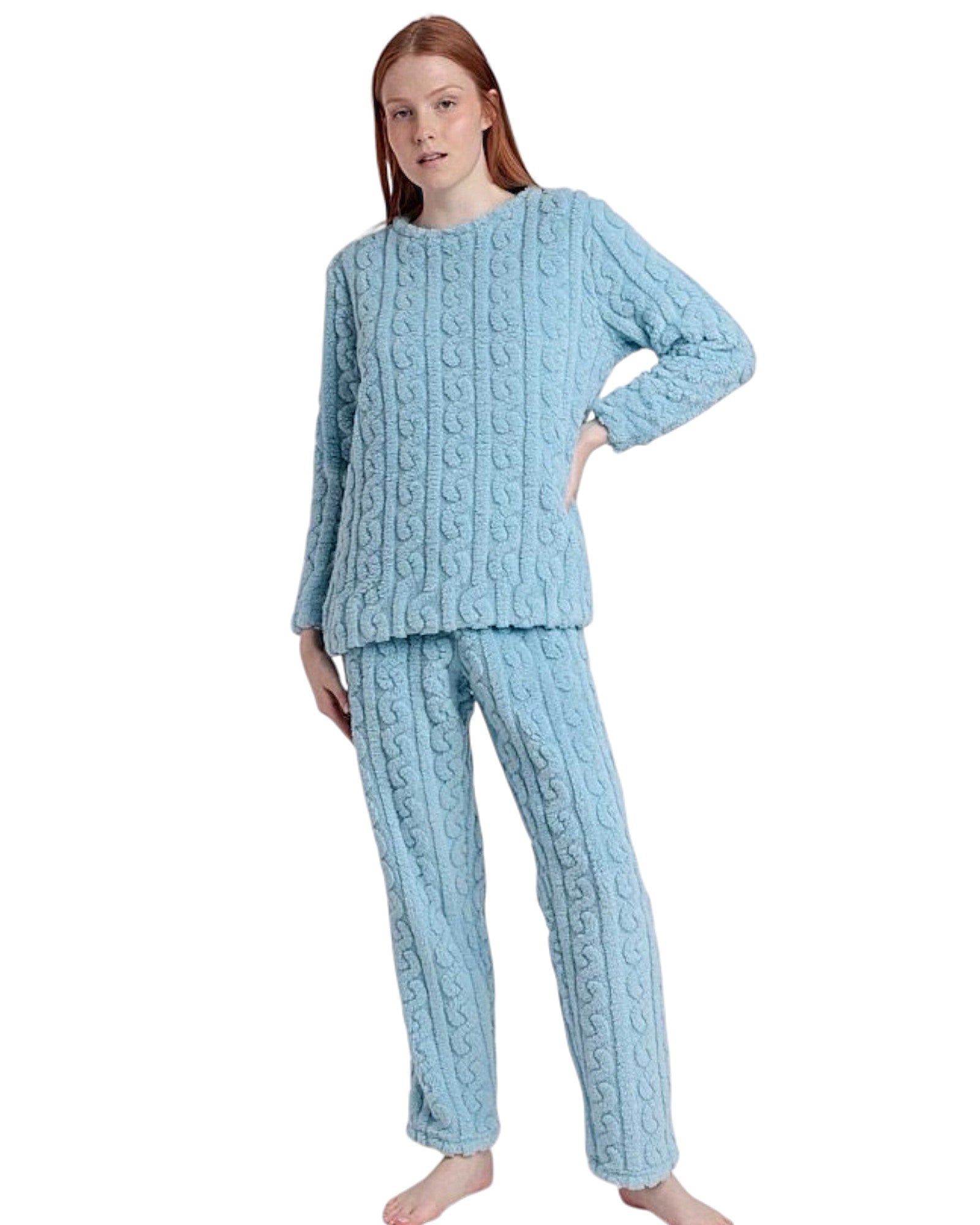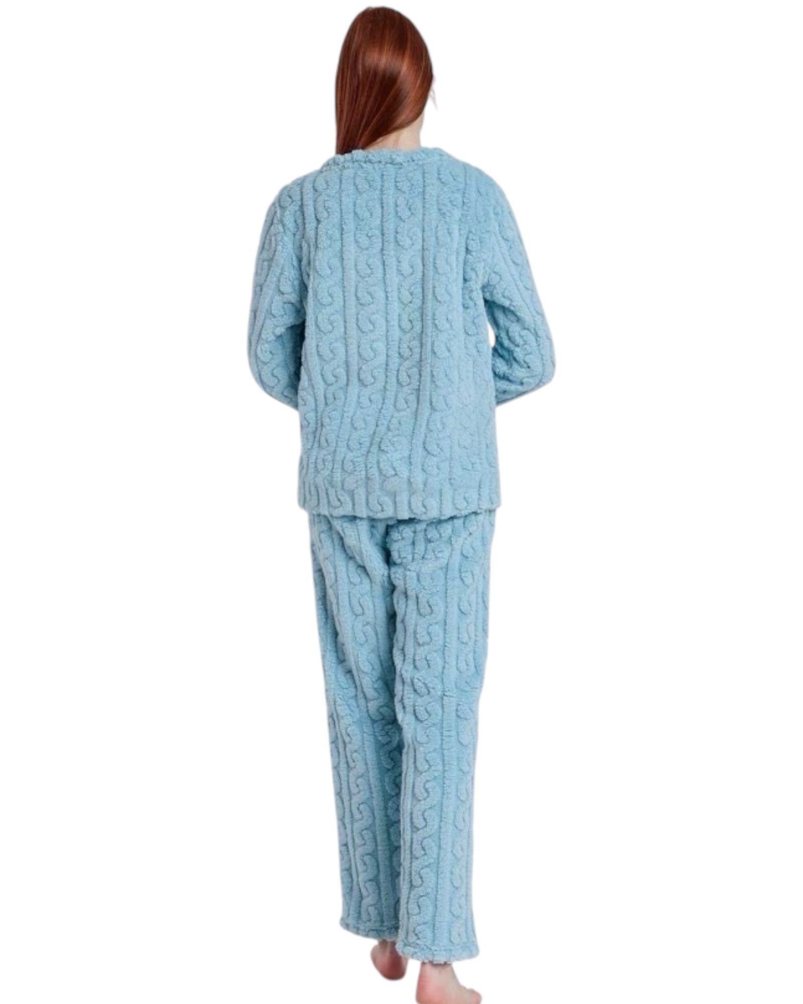 ❄️ Calore e morbidezza – Pigiama invernale donna realizzato in coral fleece jacquard ultra soffice, perfetto per le serate più fredde.