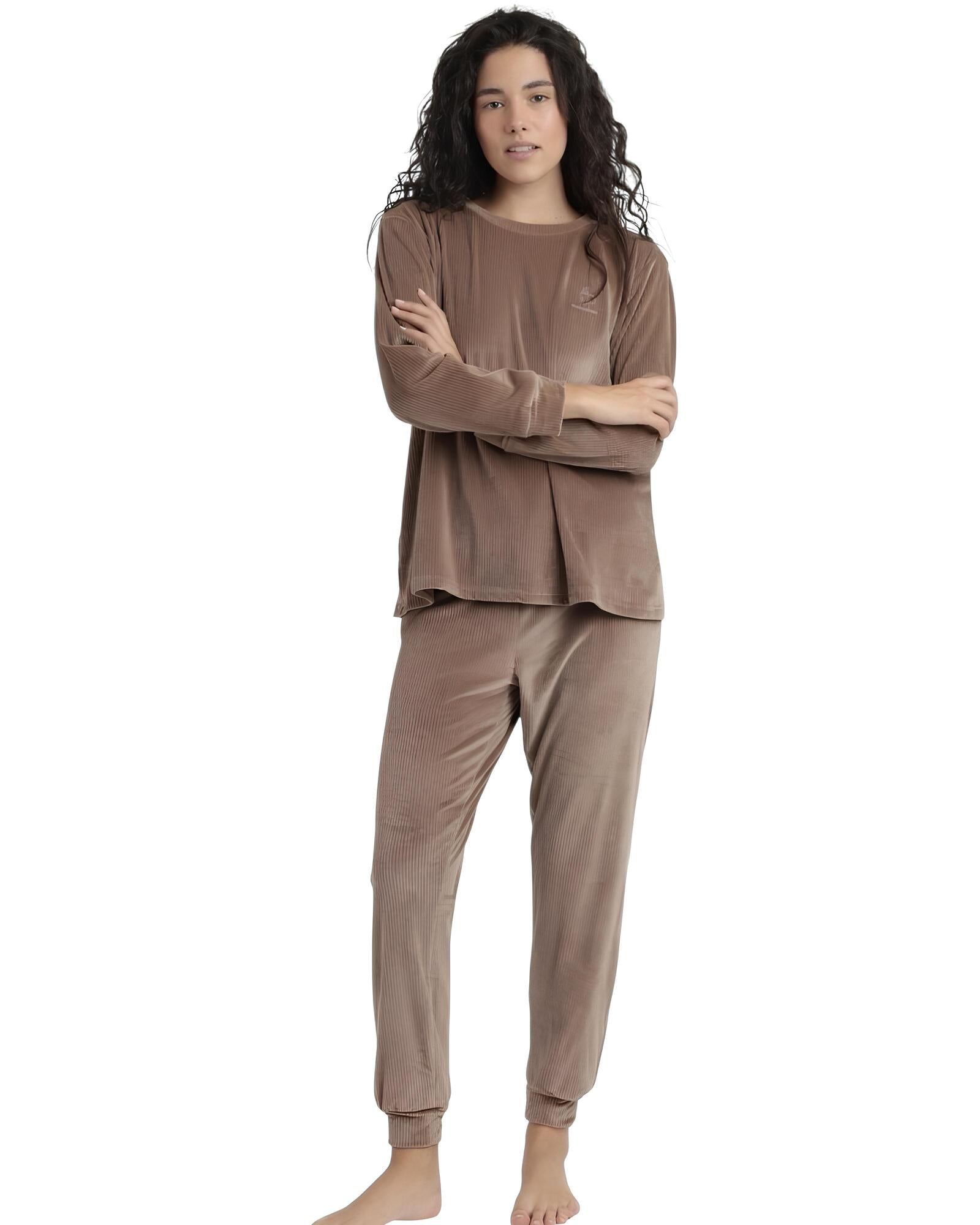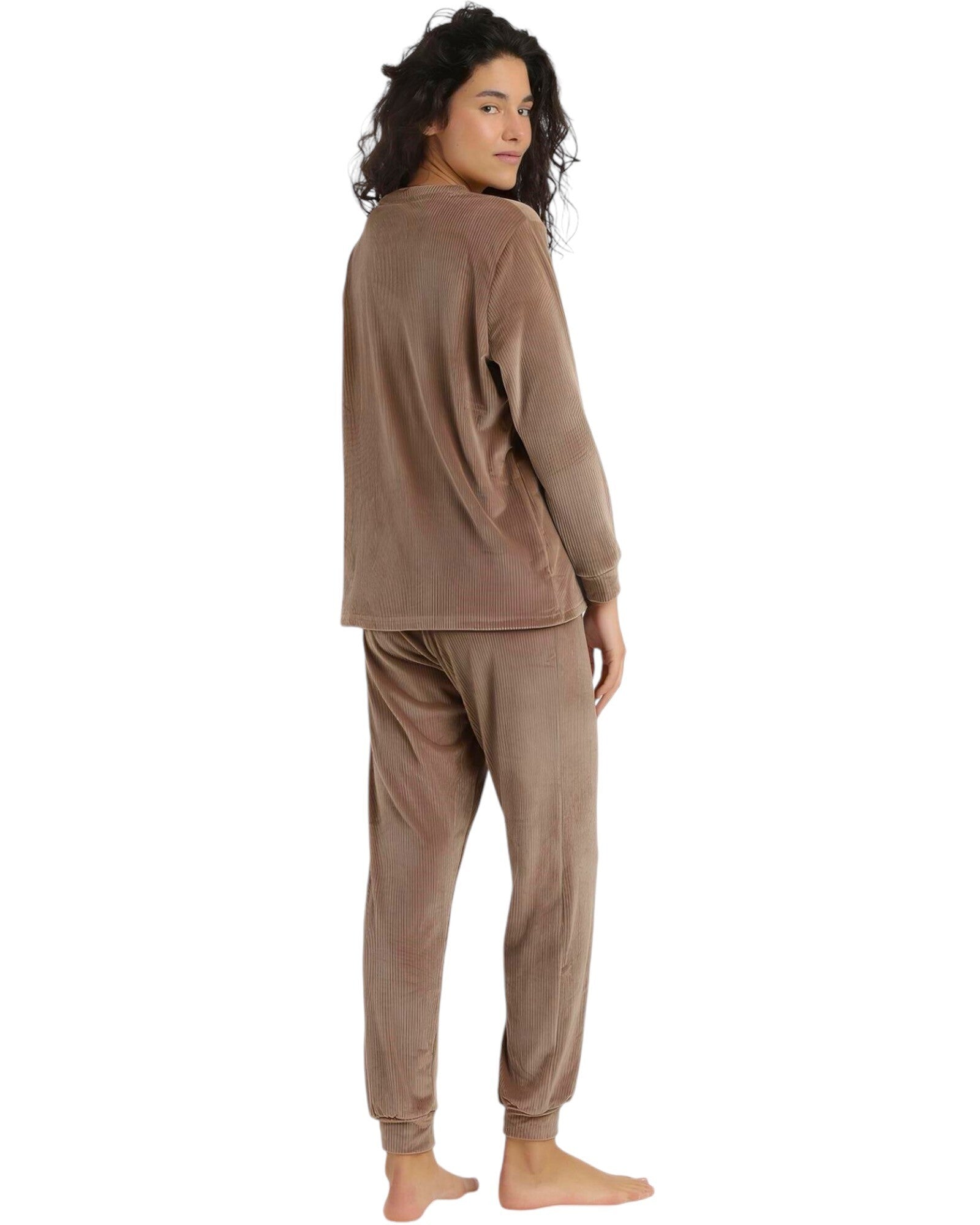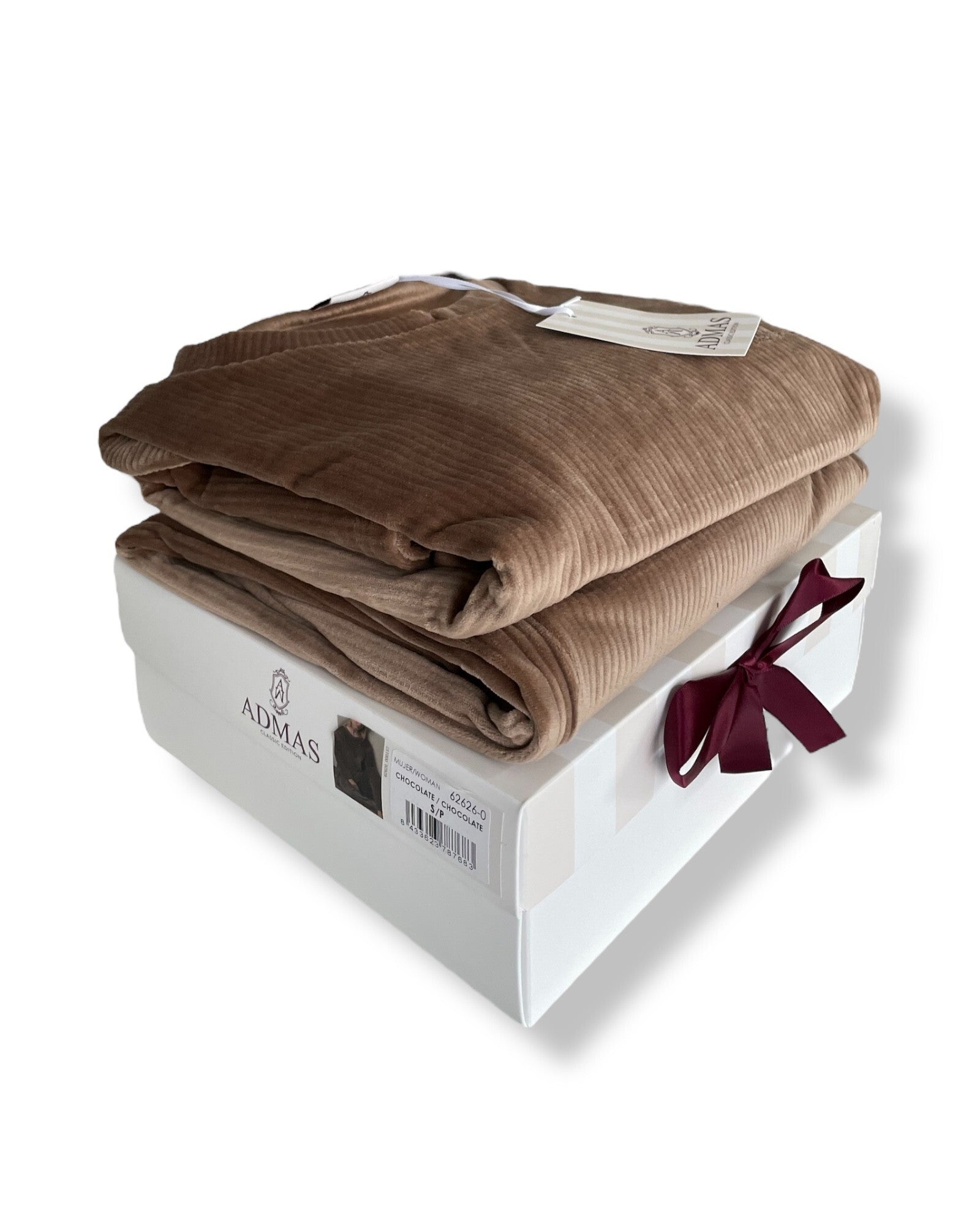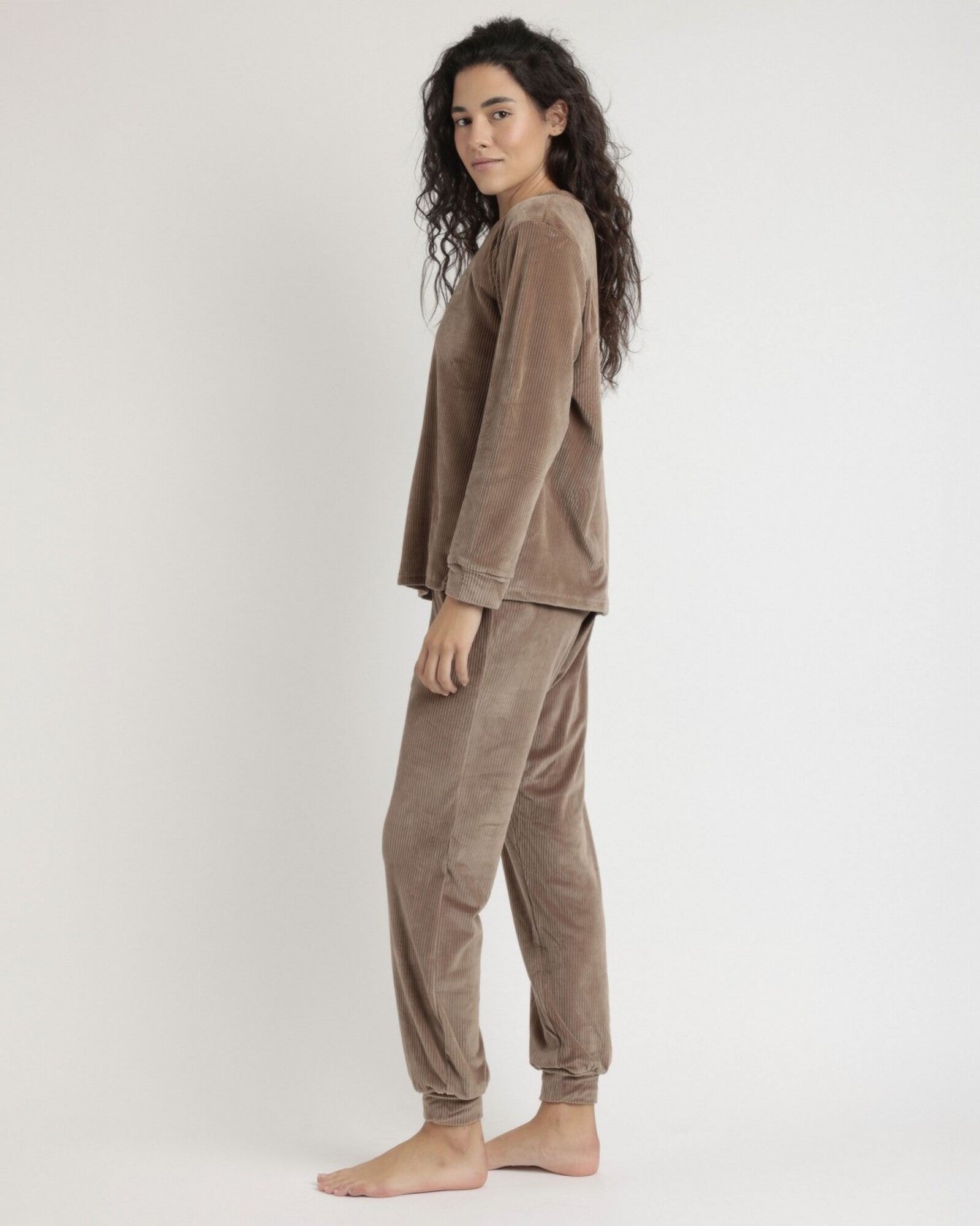 🤎 Eleganza e comfort – Pigiama donna invernale in velluto a coste strette, caldo e raffinato, perfetto per i mesi più freddi.