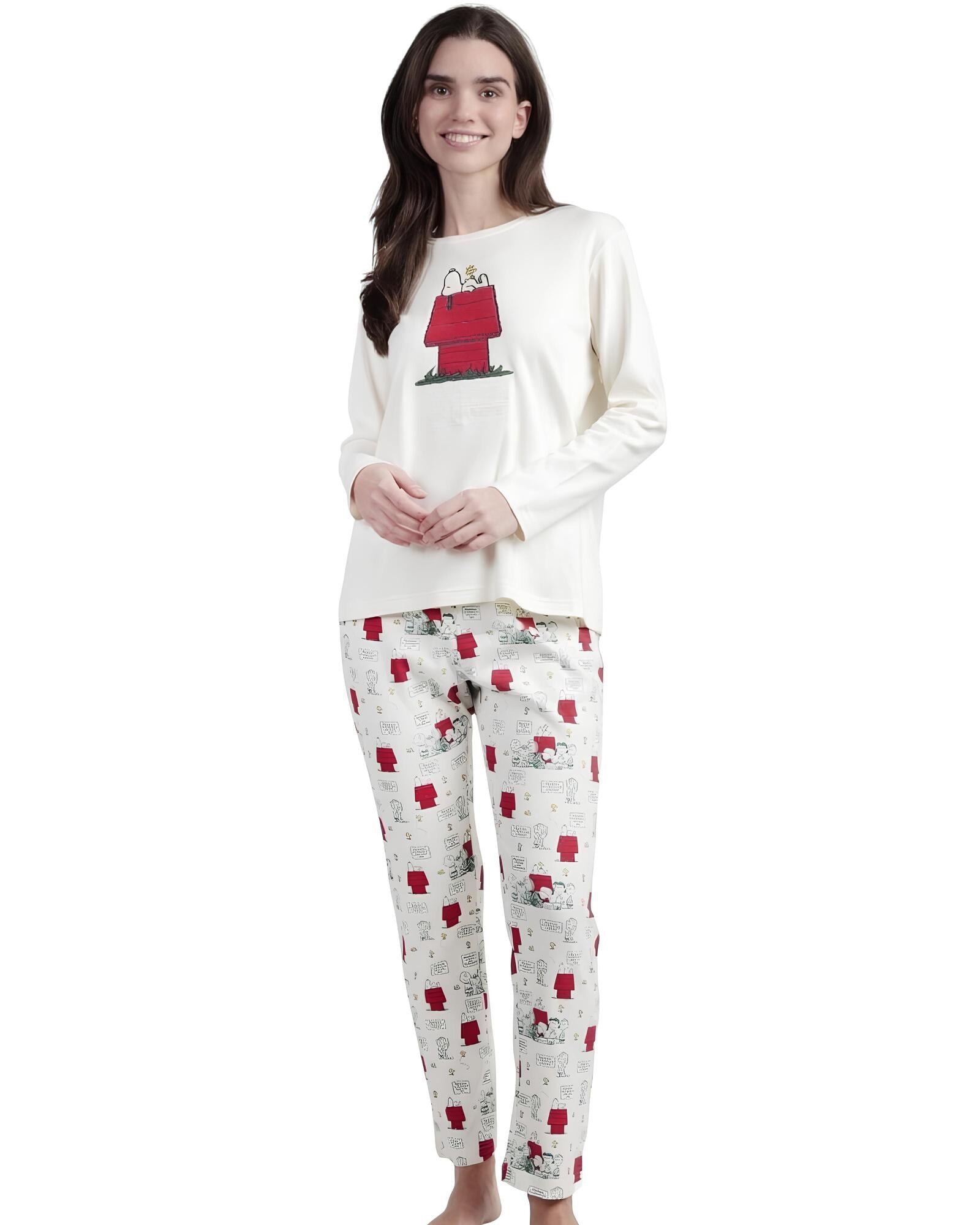 Scopri la dolcezza e il comfort del pigiama donna invernale Peanuts art. 63241, ispirato al mitico Snoopy e realizzato in caldo cotone interlock.