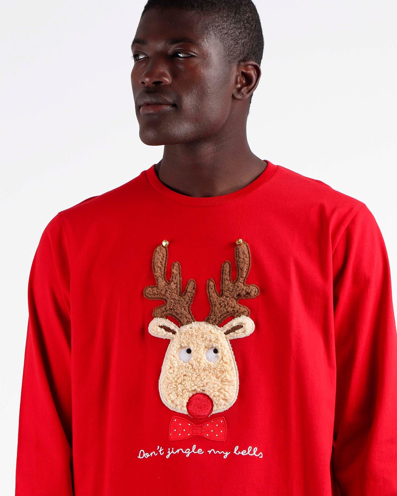 Maglia: Girocollo, a maniche lunghe con applicazione di una renna con campanellini