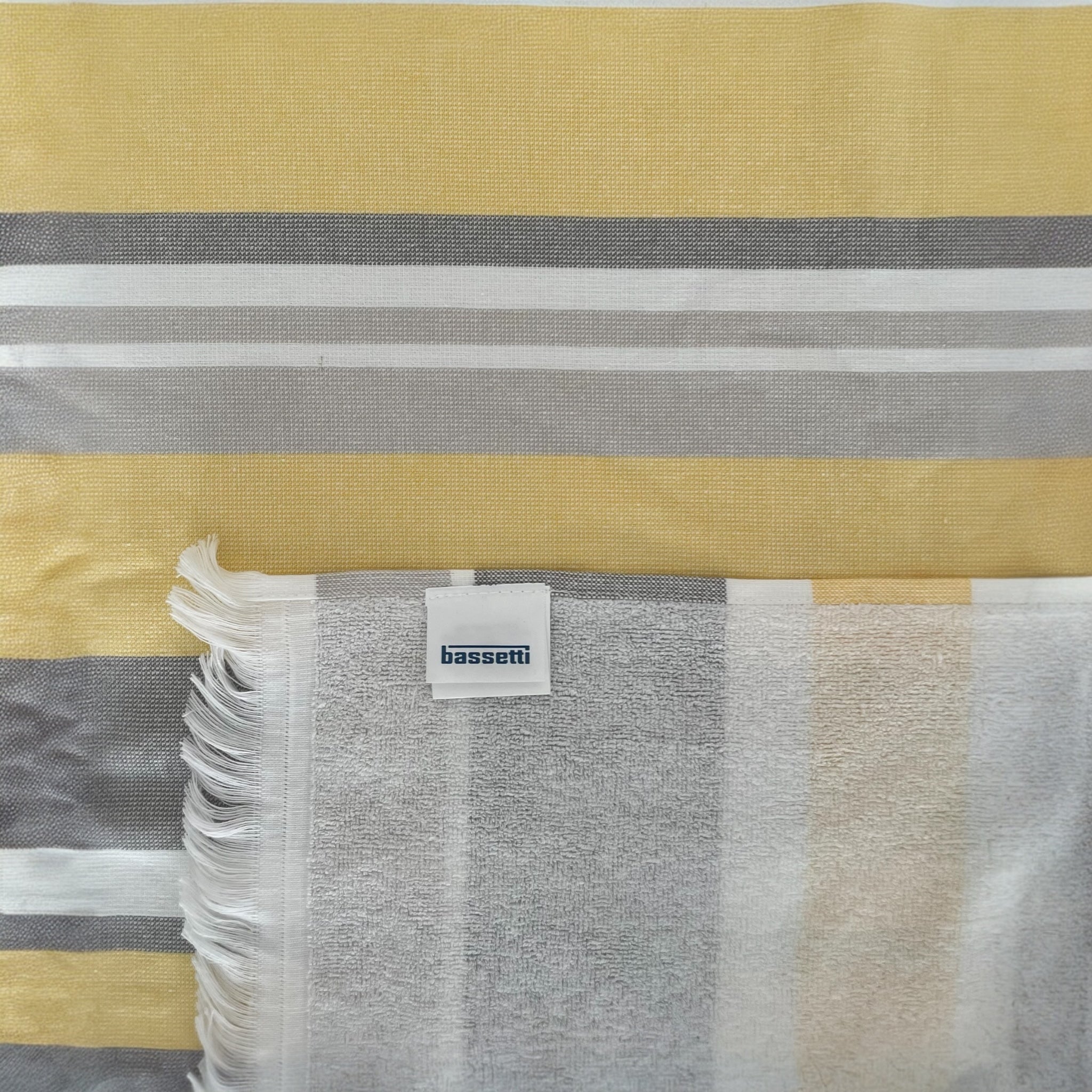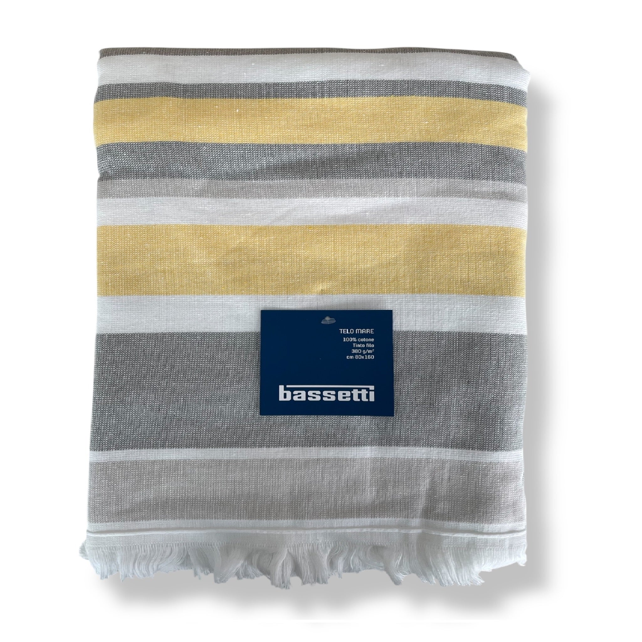 Il telo mare Bassetti della linea Samoa è la scelta perfetta per chi cerca qualità, design e funzionalità. Realizzato in 100% cotone tinto filo, unisce un’estetica elegante a una lavorazione resistente e duratura. La superficie superiore presenta una raffinata fantasia rigata in stile mediterraneo, mentre il retro in morbida spugna assorbente da 380 g/m² garantisce comfort e asciugatura rapida. Le frange decorative aggiungono un tocco di stile senza tempo. Prodotto certificato STANDARD 100 by OEKO-TEX, privo di sostanze nocive e sicuro per la pelle. Ideale per il mare, la piscina o il tempo libero.