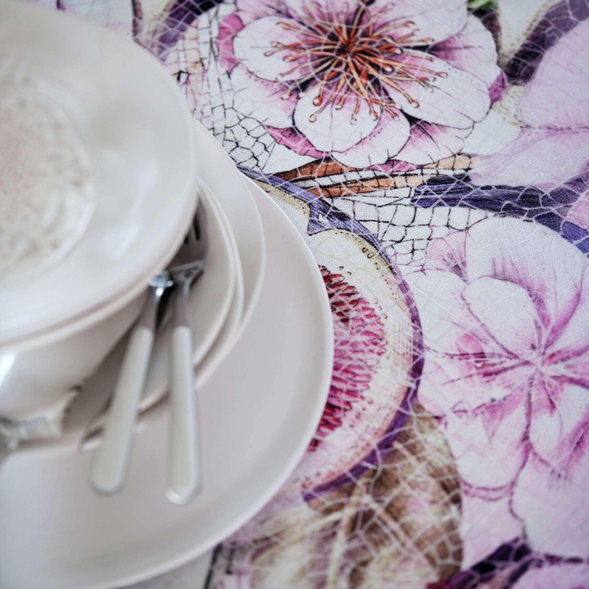 Tovaglia Antimacchia Maison Sucrée Articolo Caneva in tessuto Korin a stampe digitali, dal design fresco e raffinato.