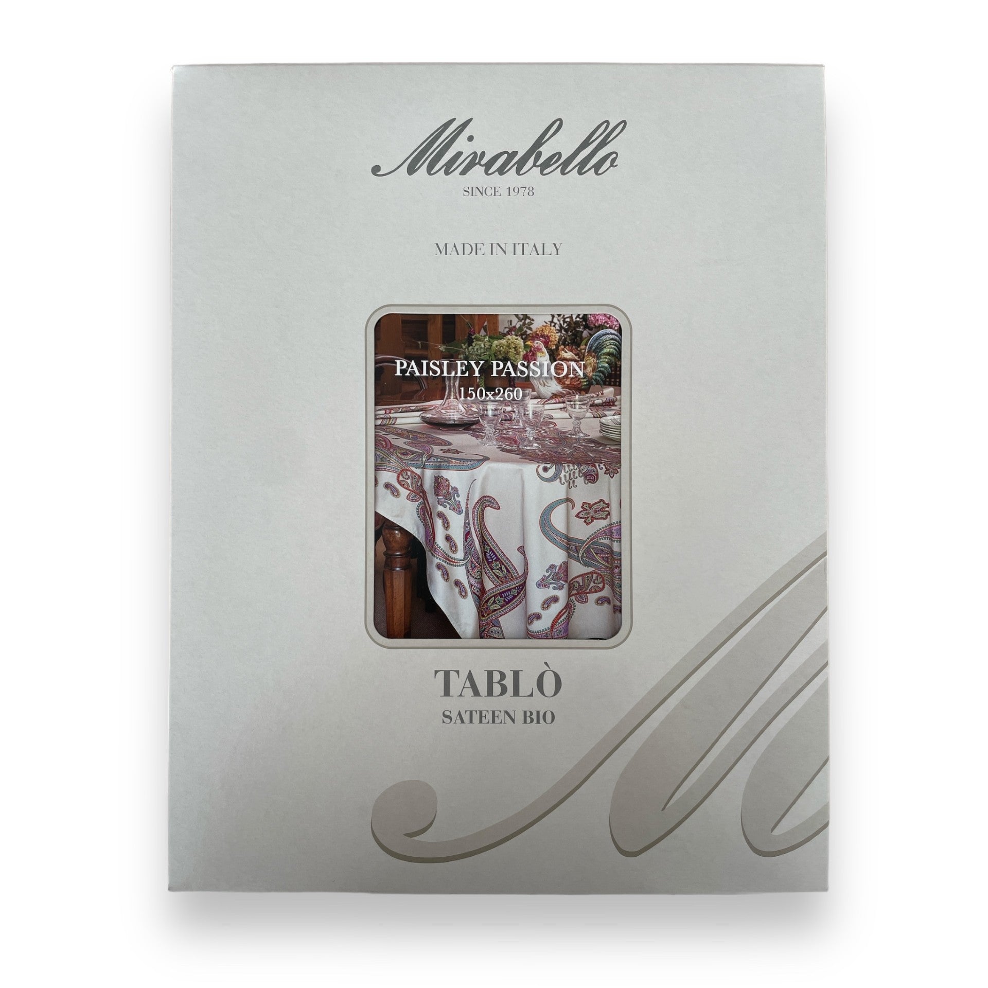 La tovaglia multiuso Paisley Passion prodotta dal brand Mirabello è dedicata al classico ed intramontabile motivo Paisley. E' un oggetto d'arredo per vivere la casa con eleganza ed è realizzata con fibra tessile proveniente da agricoltura biologica. Può essere utilizzata anche come copridivano o telo arredo copritutto