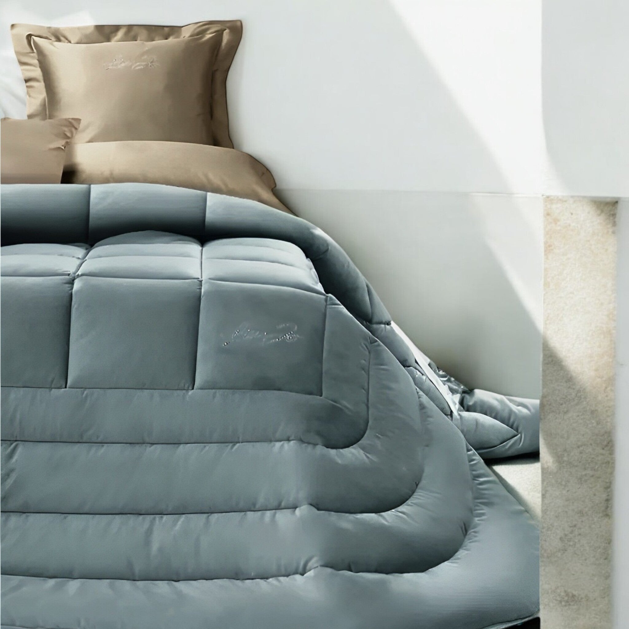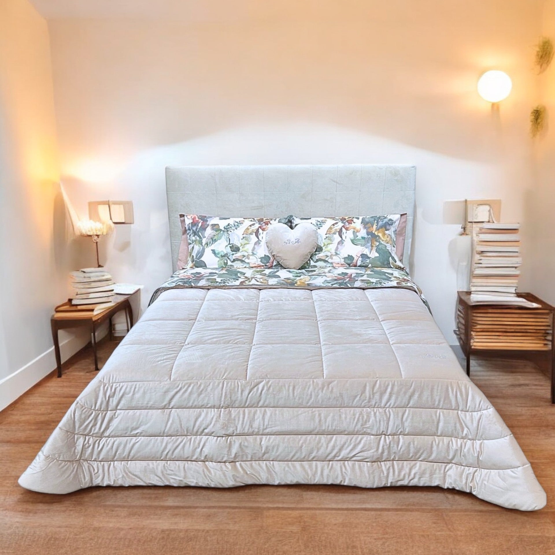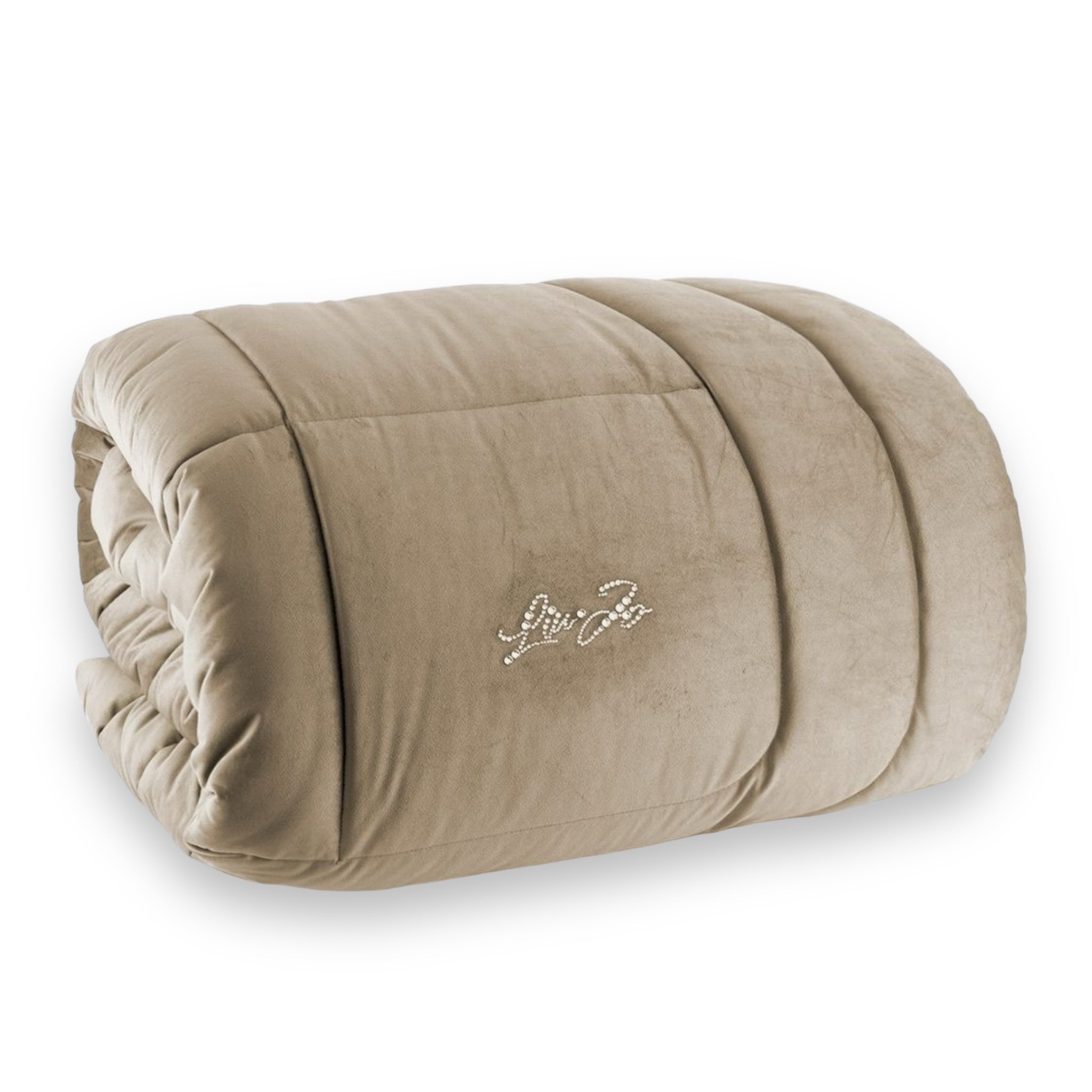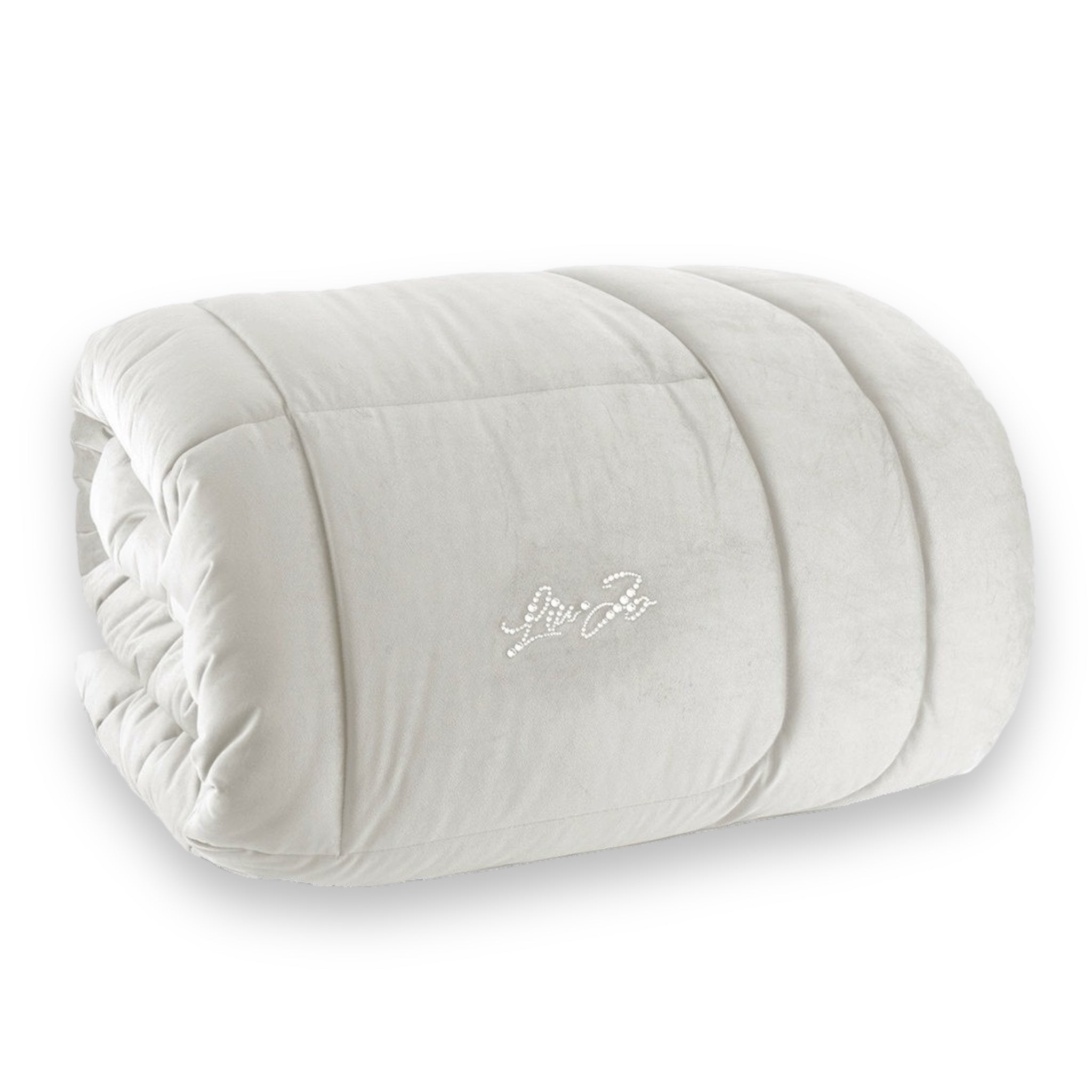 Materiali: Tessuto esterno velluto 100% poliestere, Tessuto inferiore 100% cotone, Imbottitura in fibra anallergica di poliestere da 350 gr/mq