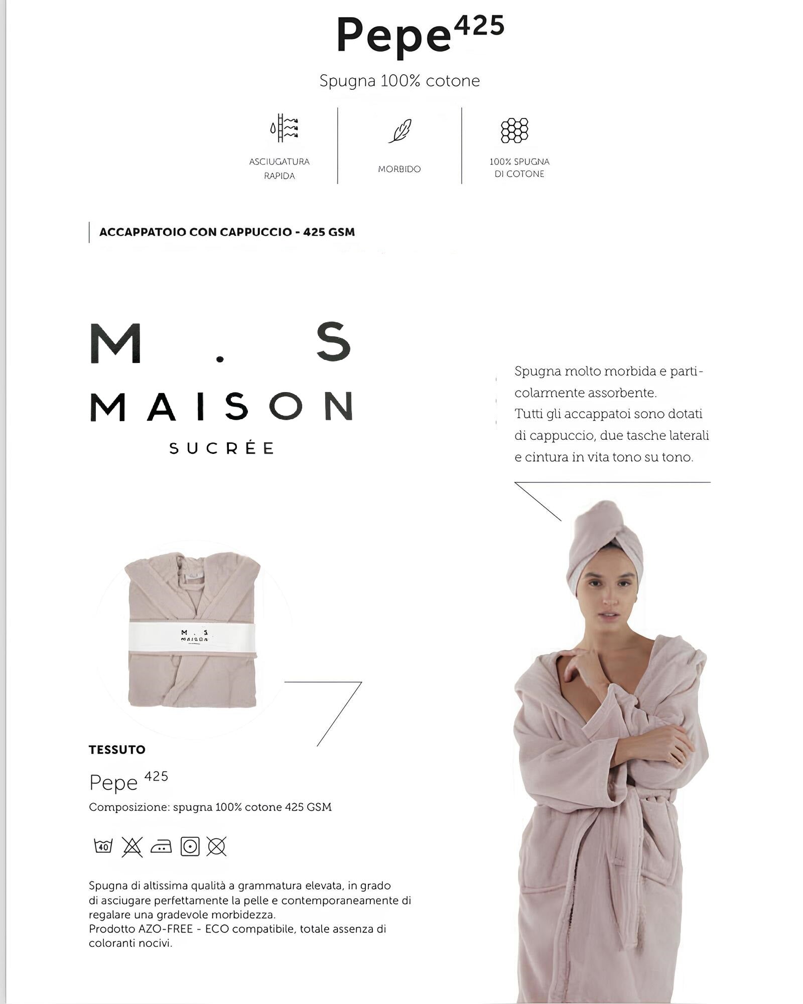 Accappatoio Unisex Pepe 425 gr di Maison Sucrée in spugna 100% Cotone Col. Glicine