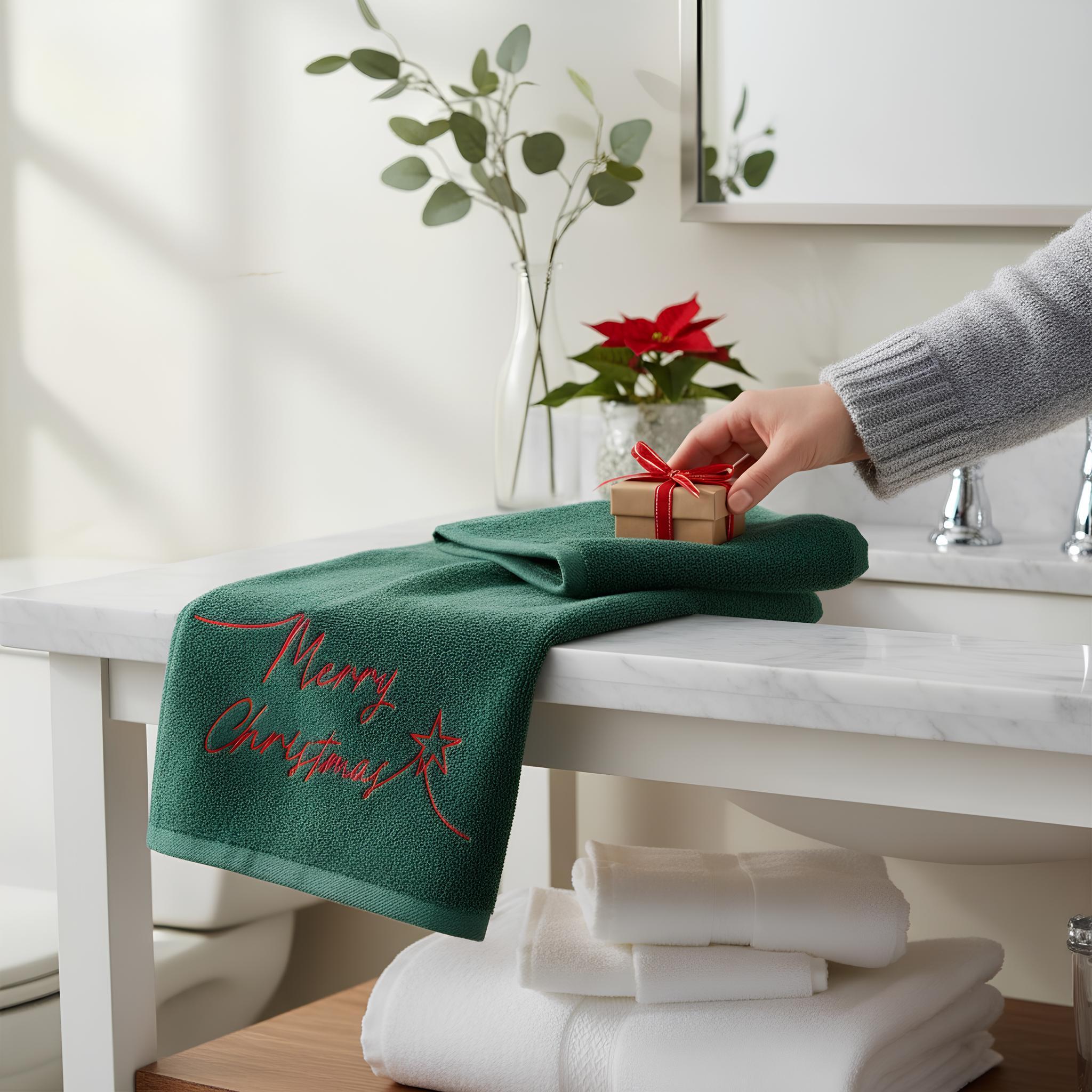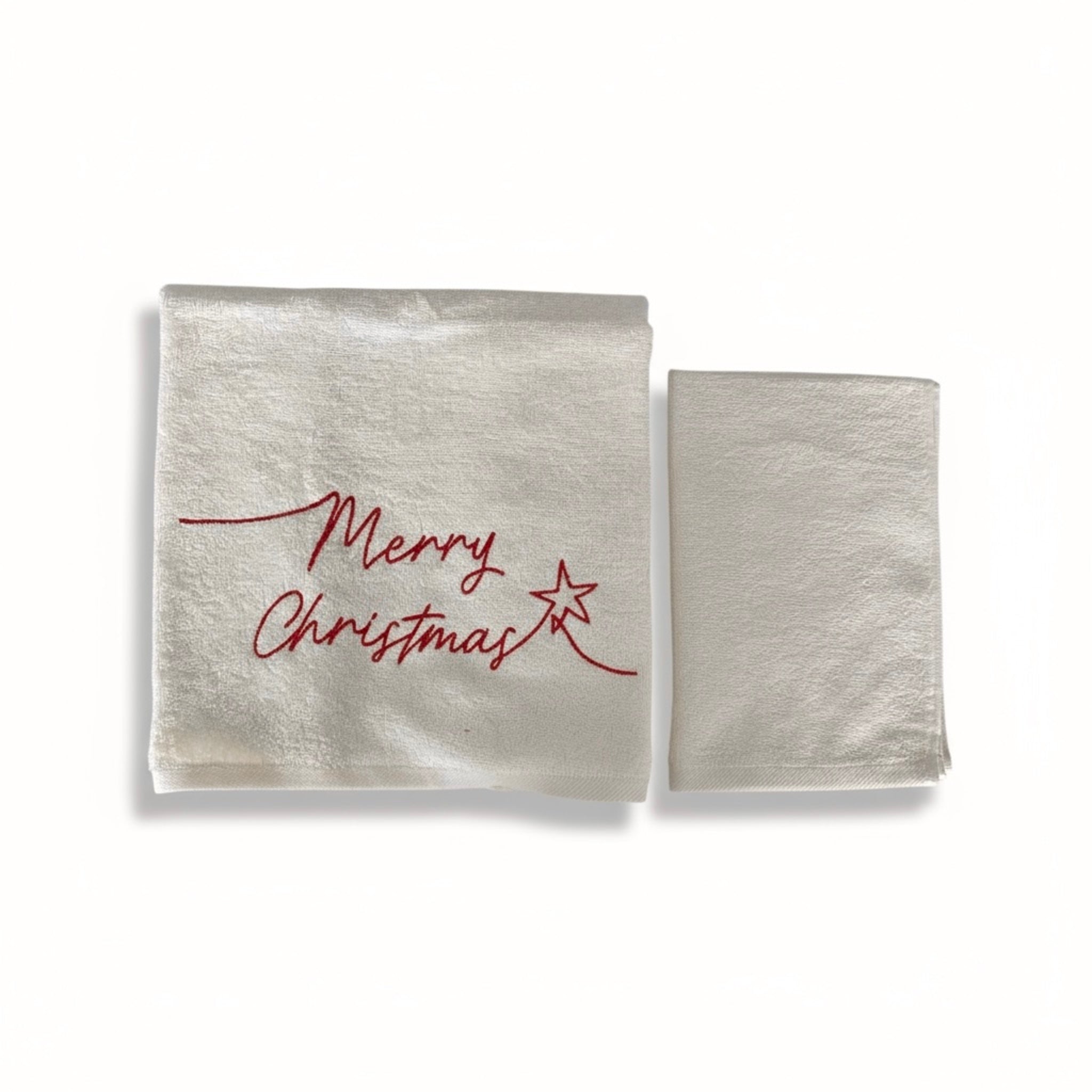 1 asciugamano viso (60x104 cm) con raffinato ricamo “Merry Christmas” e stella decorativa,