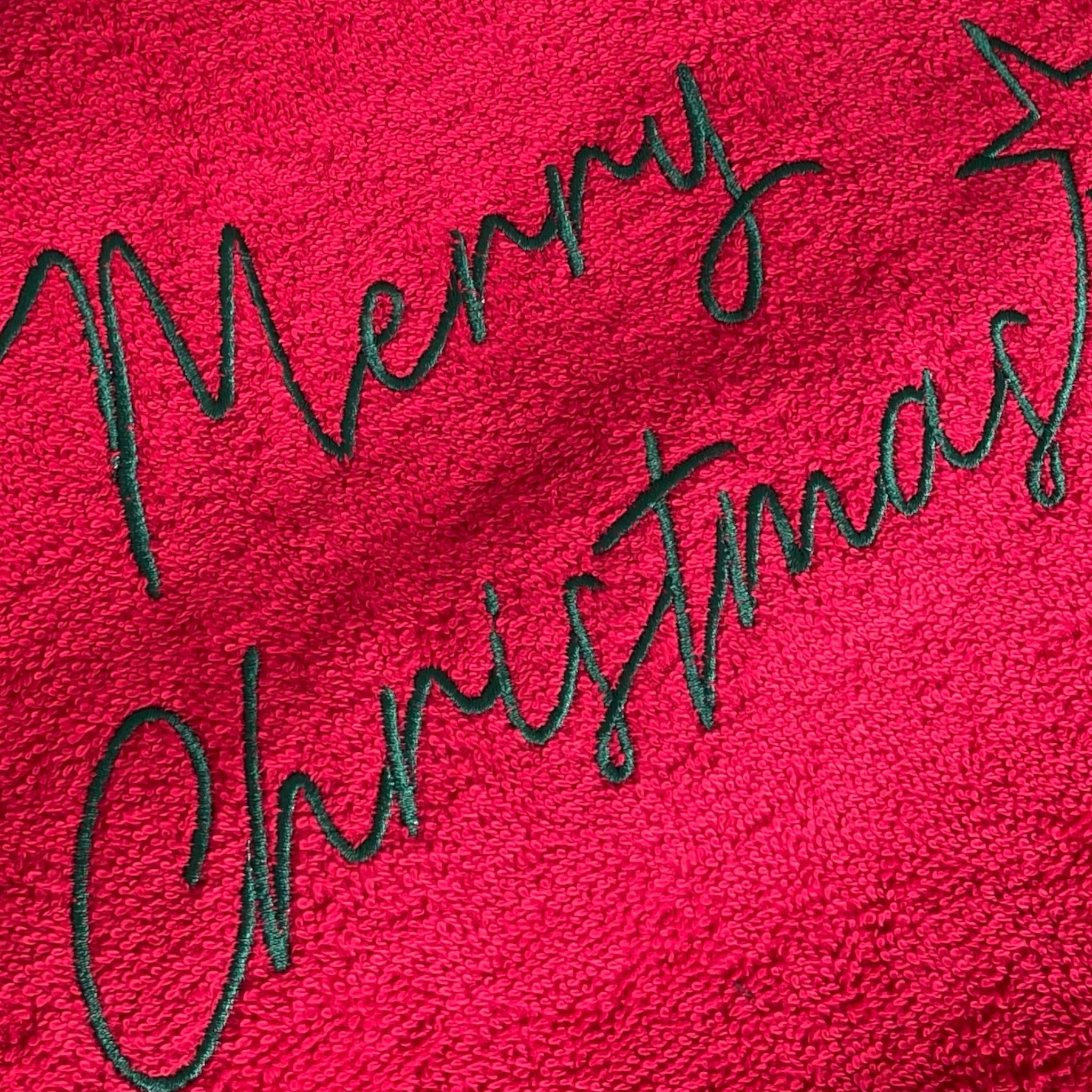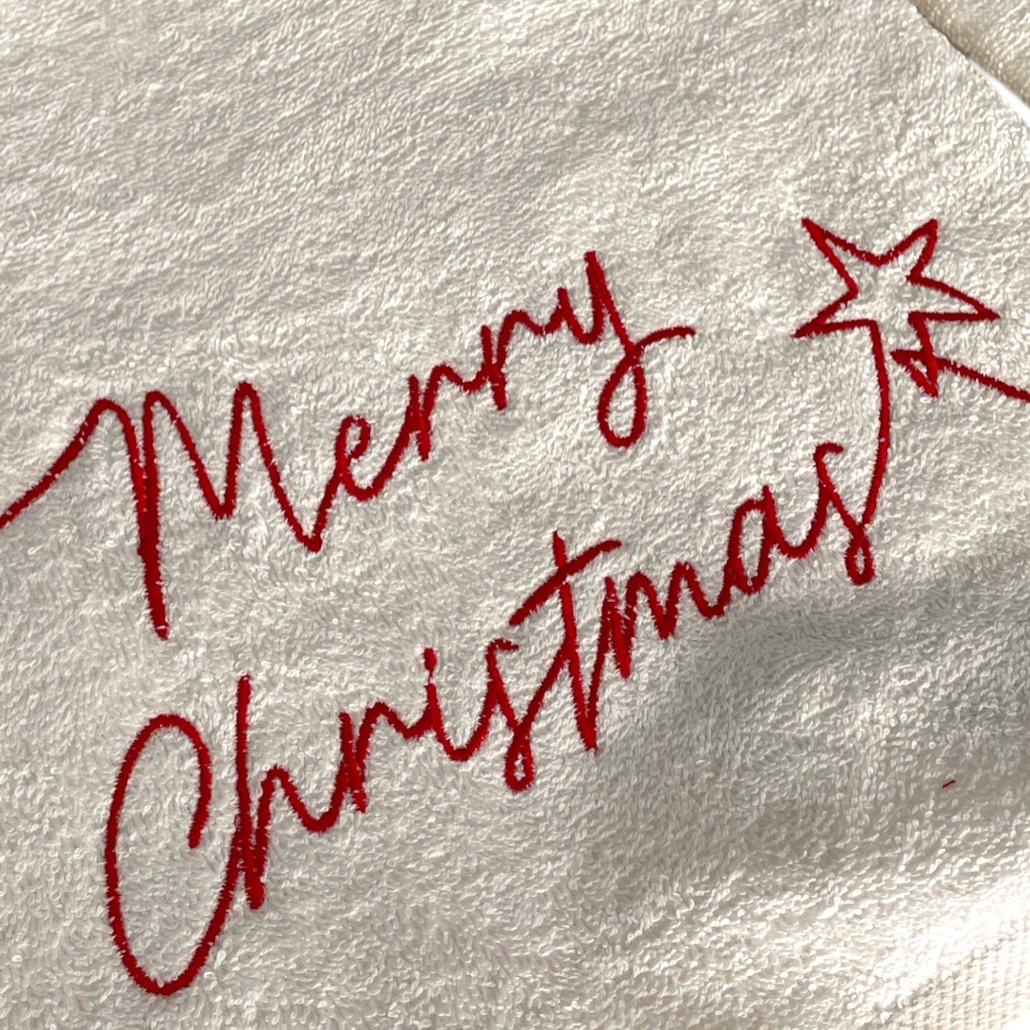 ✨ Ricamo “Merry Christmas” – Dettaglio elegante con stella decorativa, per un effetto raffinato e festivo