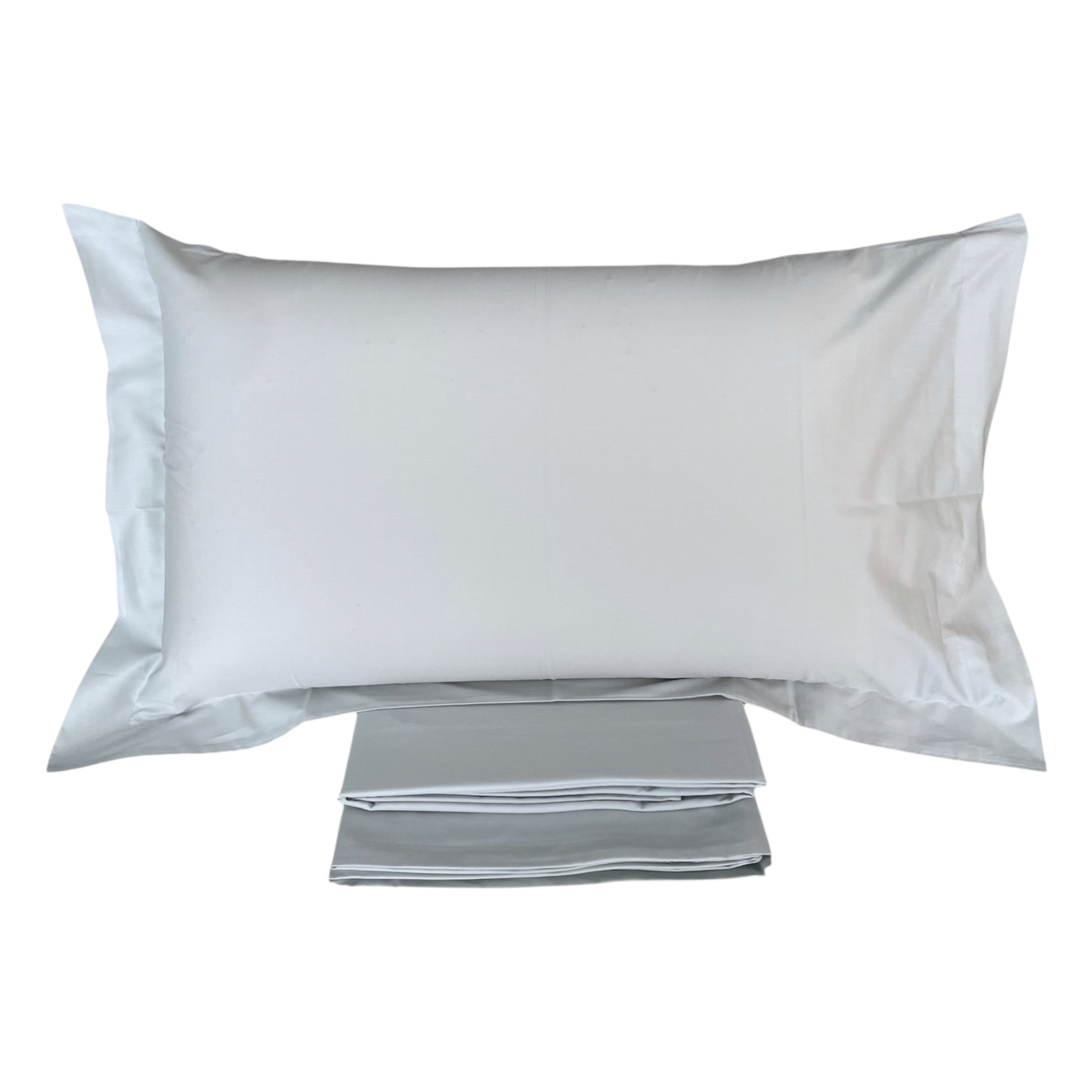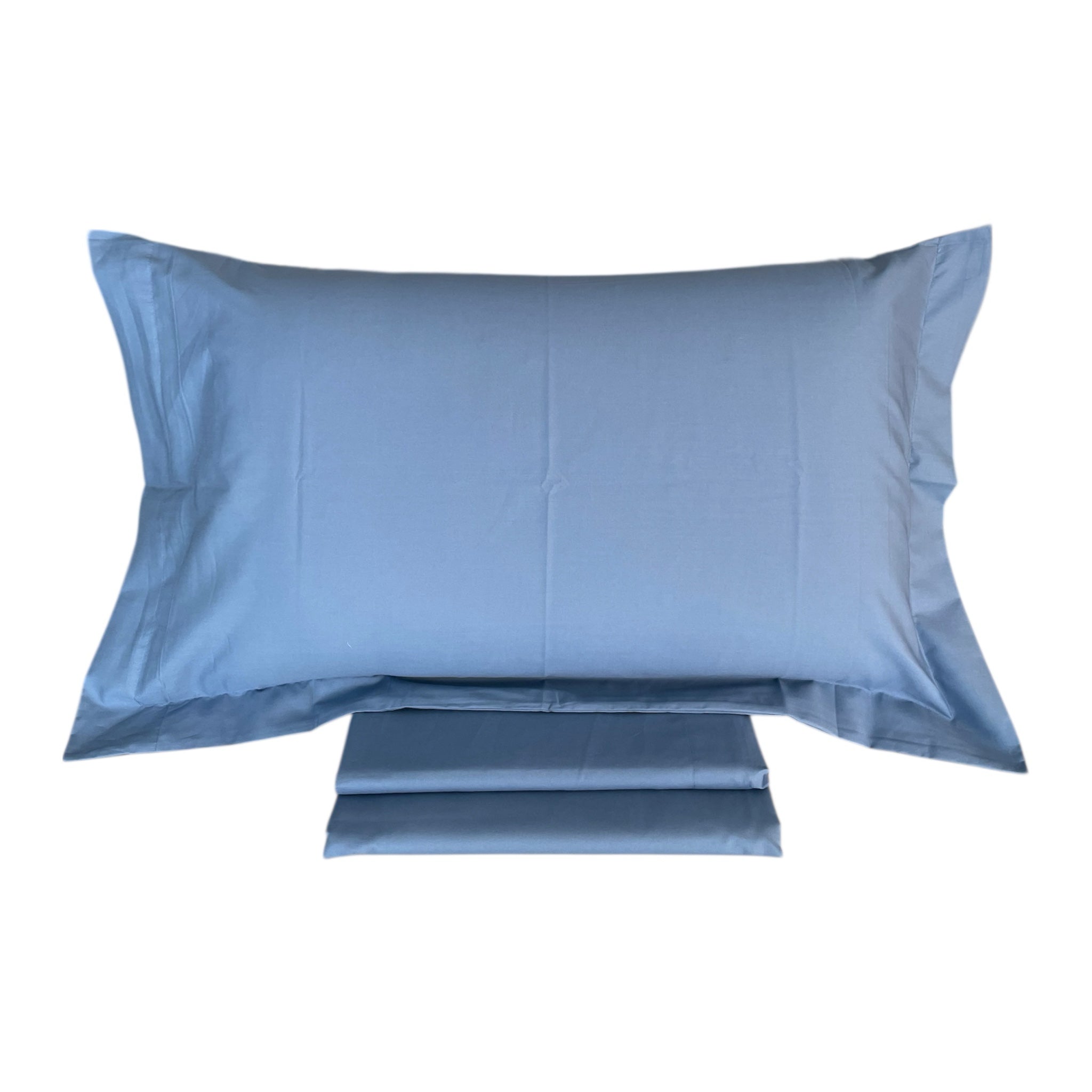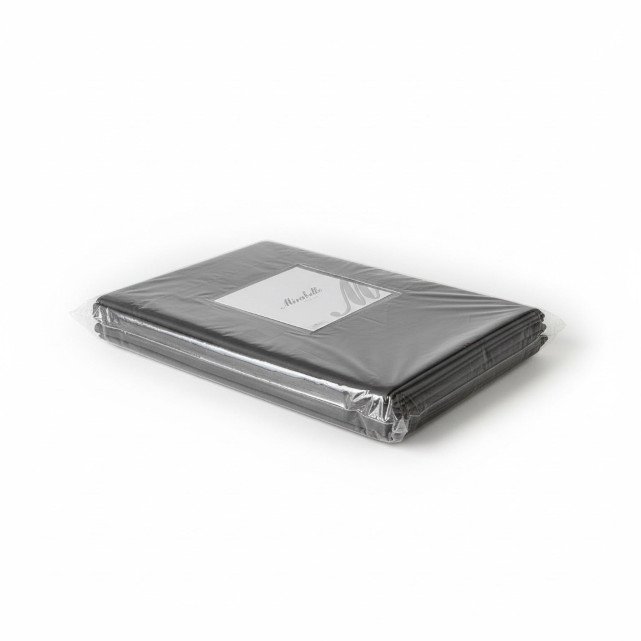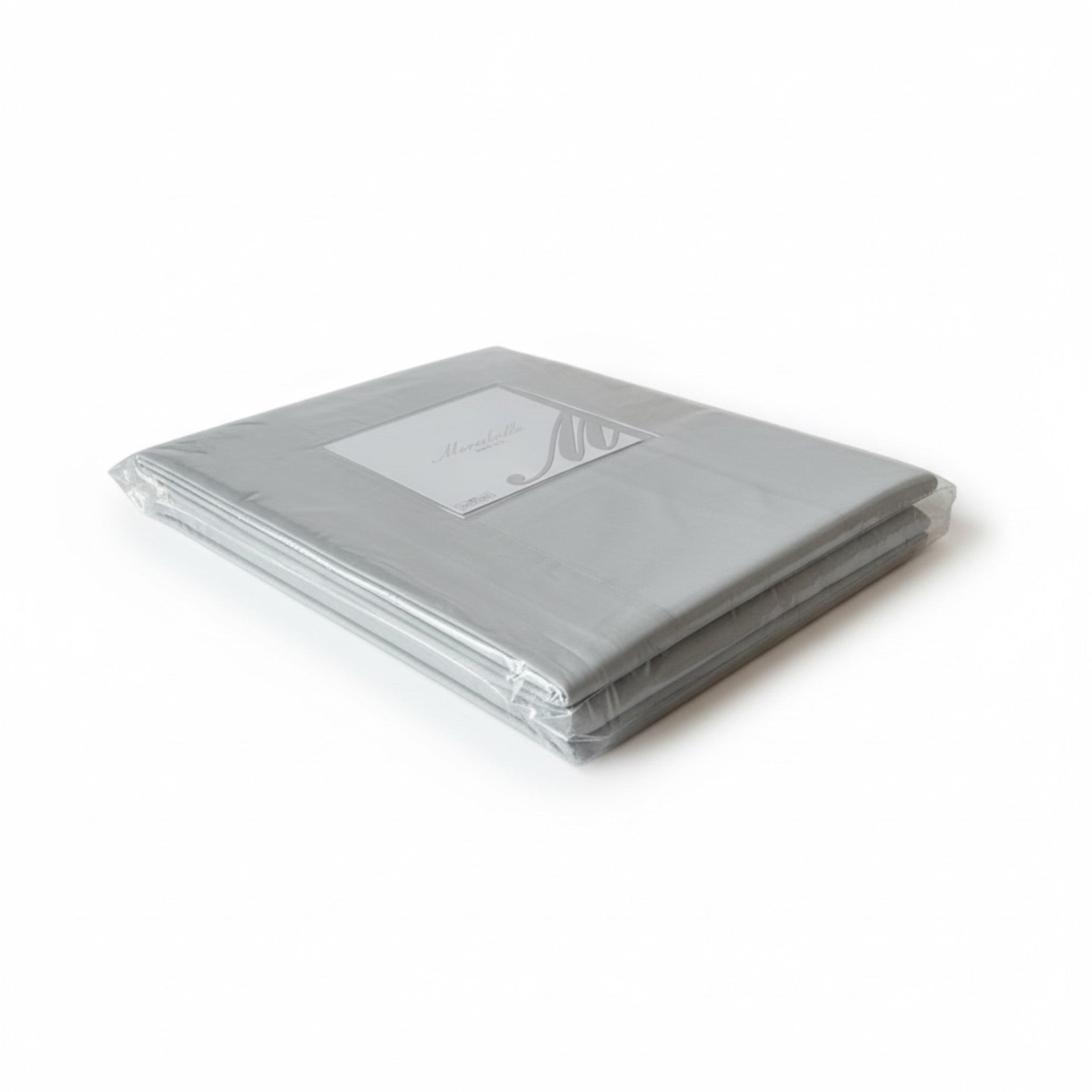 Vivi il piacere di un riposo raffinato con il completo lenzuola matrimoniale Mirabello in pregiato percalle di puro cotone.