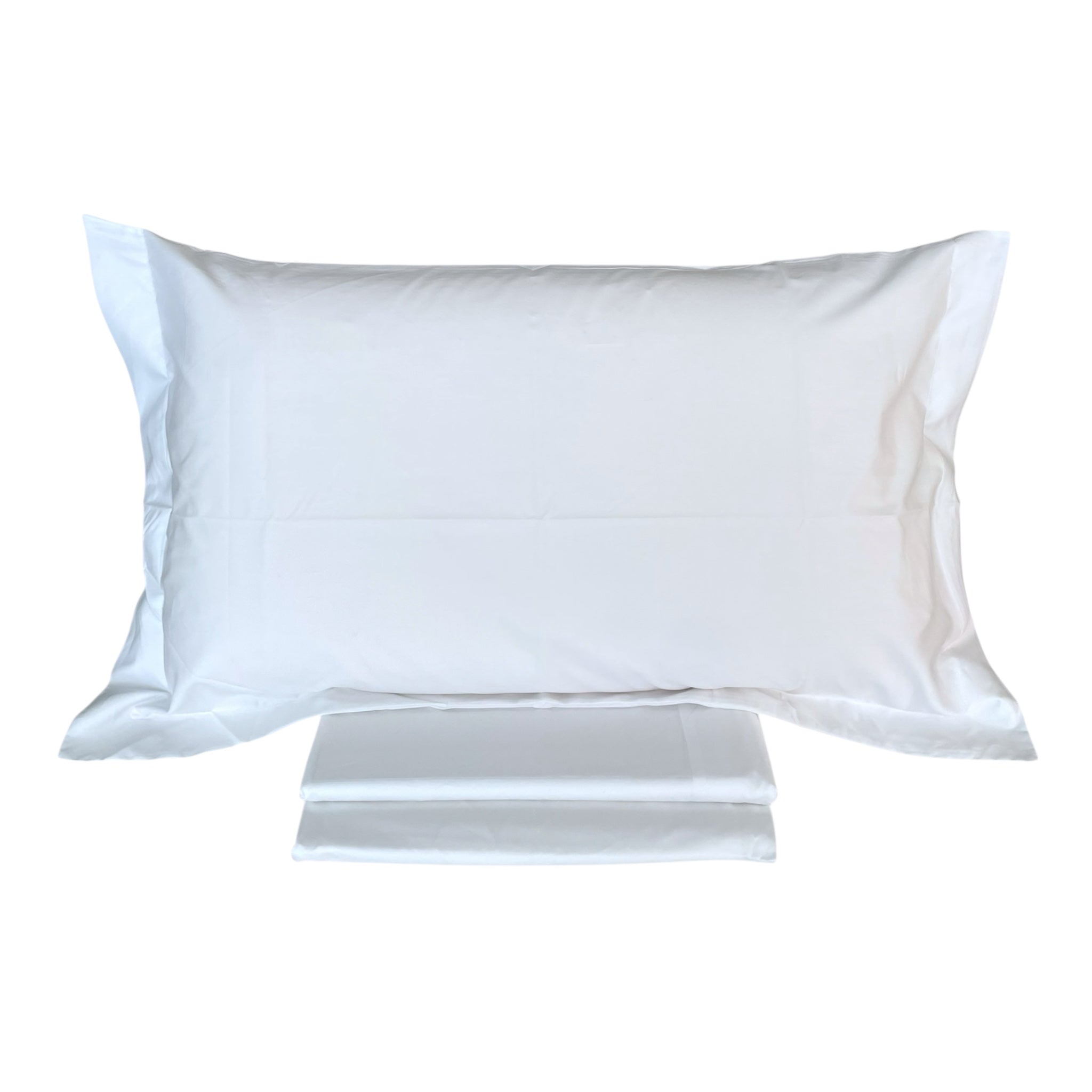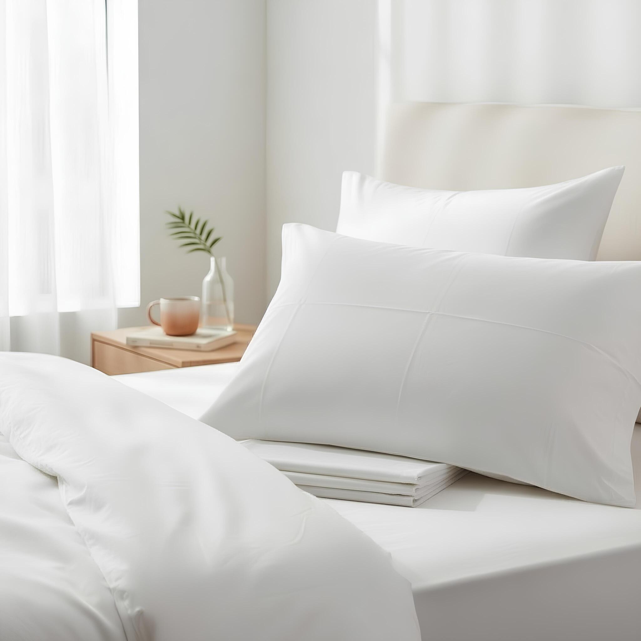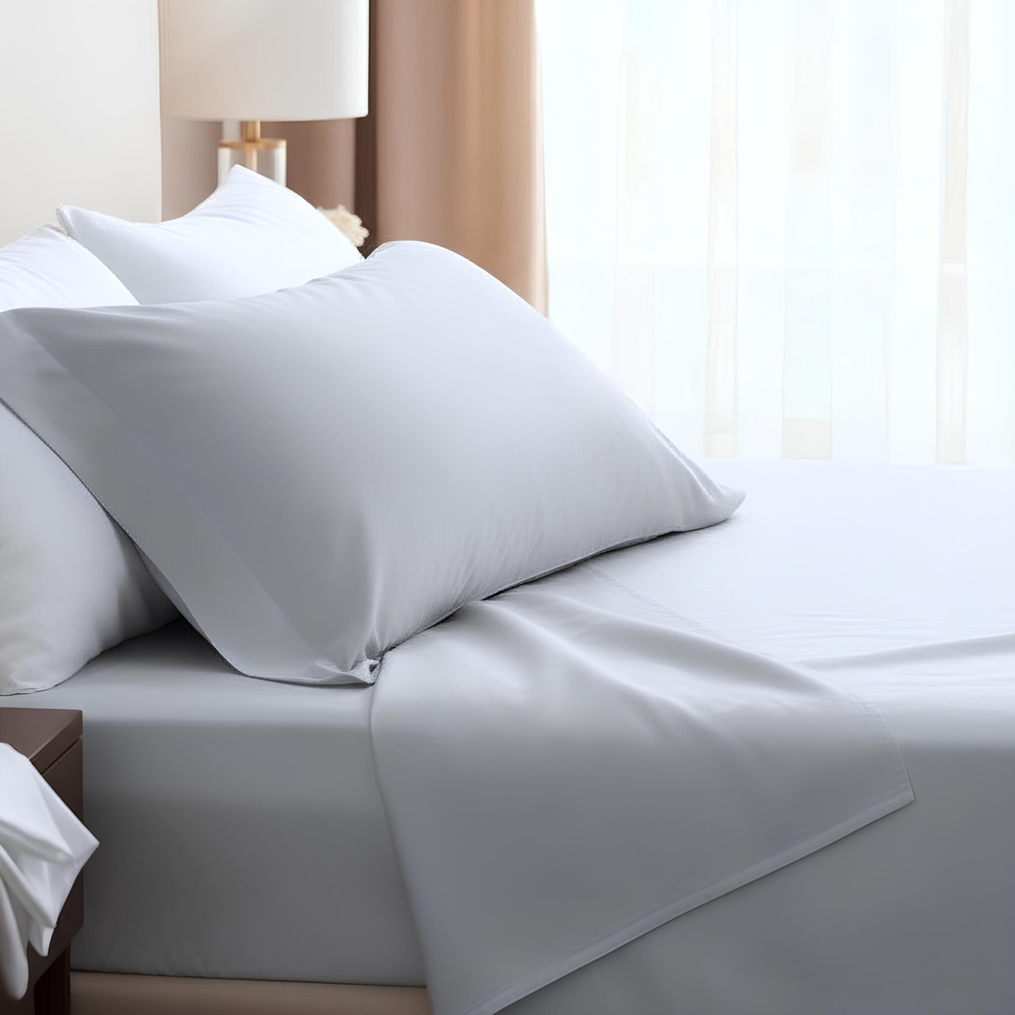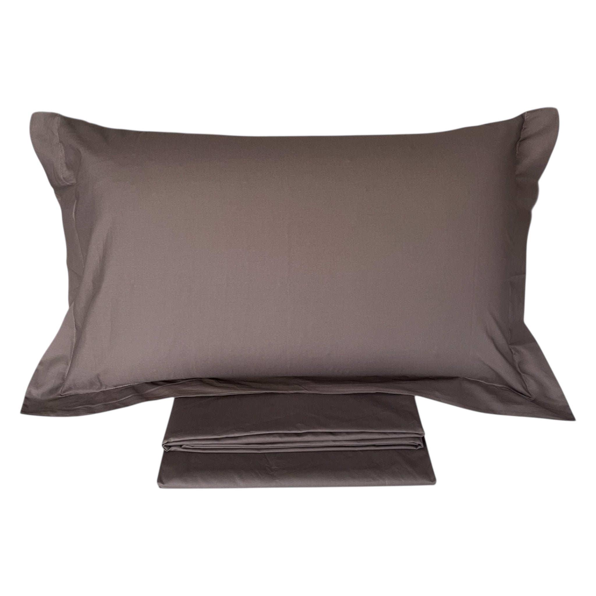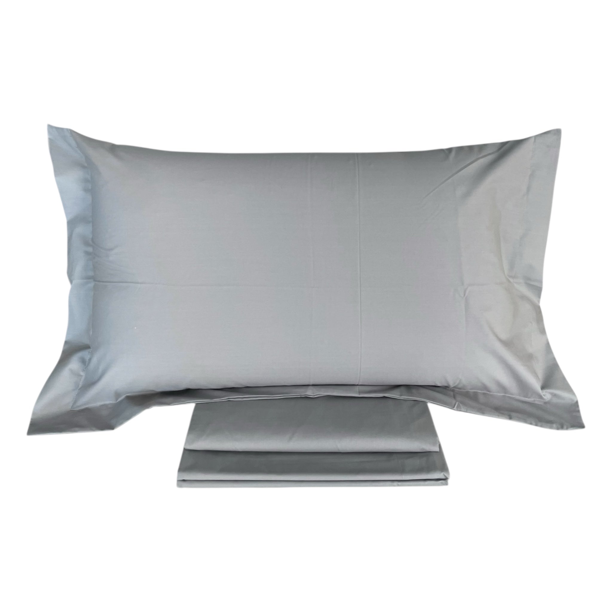 Vivi il piacere di un riposo raffinato con il completo lenzuola matrimoniale Mirabello in pregiato percalle di puro cotone.