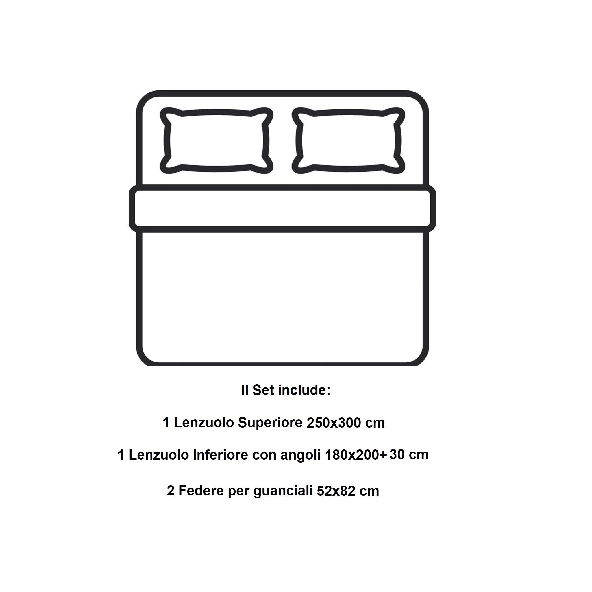 🛏️ Set completo matrimoniale 4 pezzi: 1 lenzuolo superiore 260x300 cm, 1 lenzuolo sotto con angoli 180x200 cm, 2 federe 52x82 cm