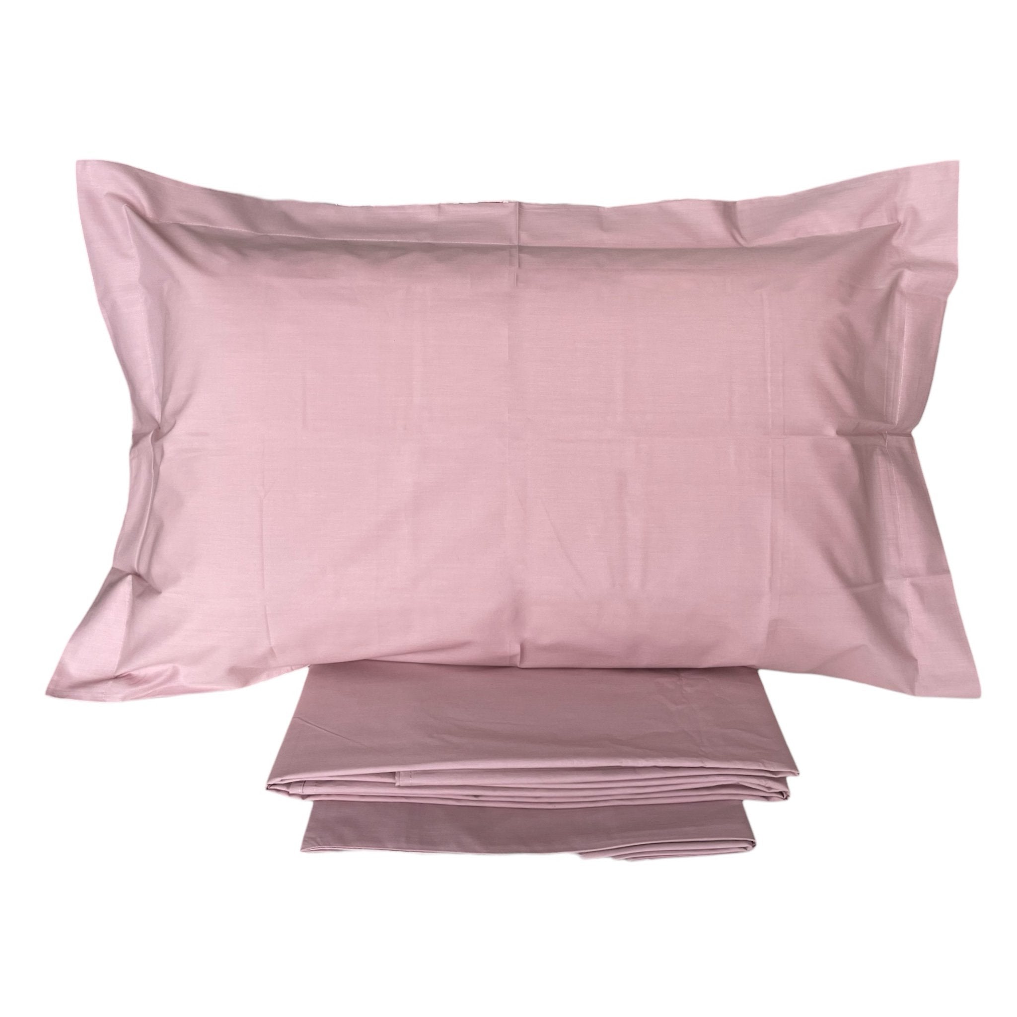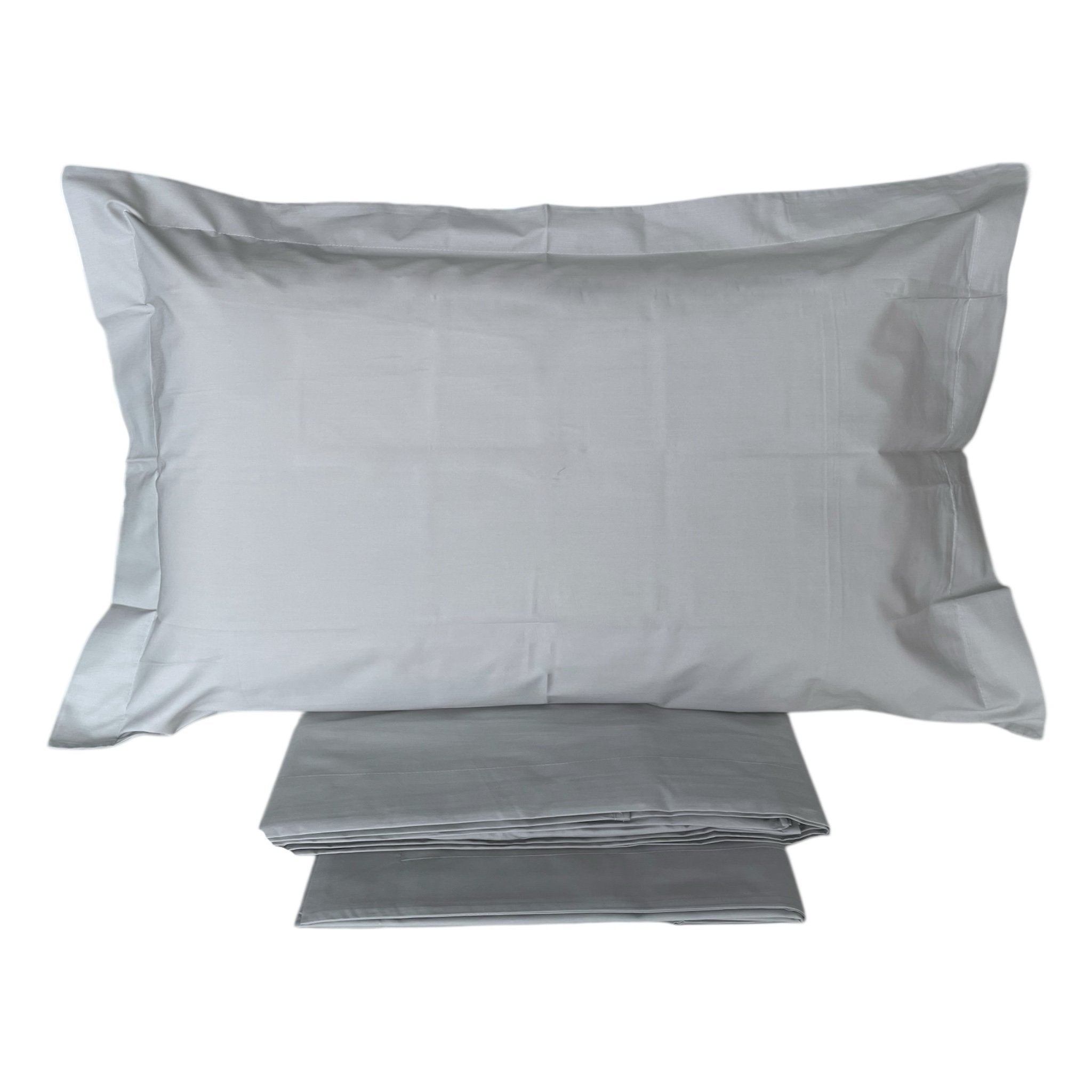 Il set include tutto il necessario per un letto matrimoniale: il lenzuolo superiore misura 250x300 cm, il lenzuolo inferiore con angoli 180x200 cm si adatta perfettamente a materassi fino a 30 cm di altezza, e le due federe con 3 volani conferiscono al letto un aspetto raffinato e ordinato.