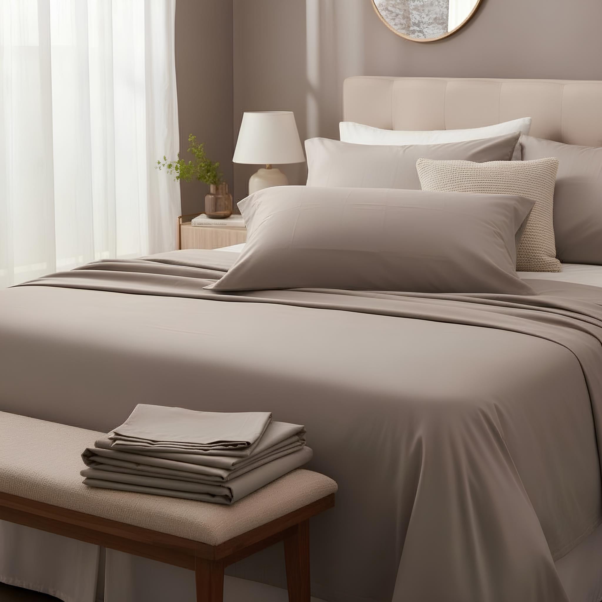 Il completo lenzuola matrimoniale Rebecca Home in puro cotone percalle è progettato per garantire alla tua camera da letto uno stile elegante e un comfort superiore. Il percalle è un tessuto pregiato, fresco e compatto, ideale per chi desidera lenzuola morbide sulla pelle ma al tempo stesso resistenti ai lavaggi, traspiranti e perfette in ogni stagione.