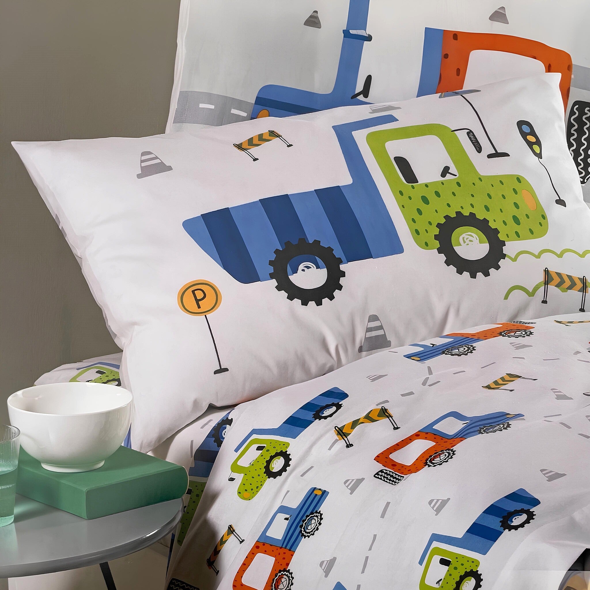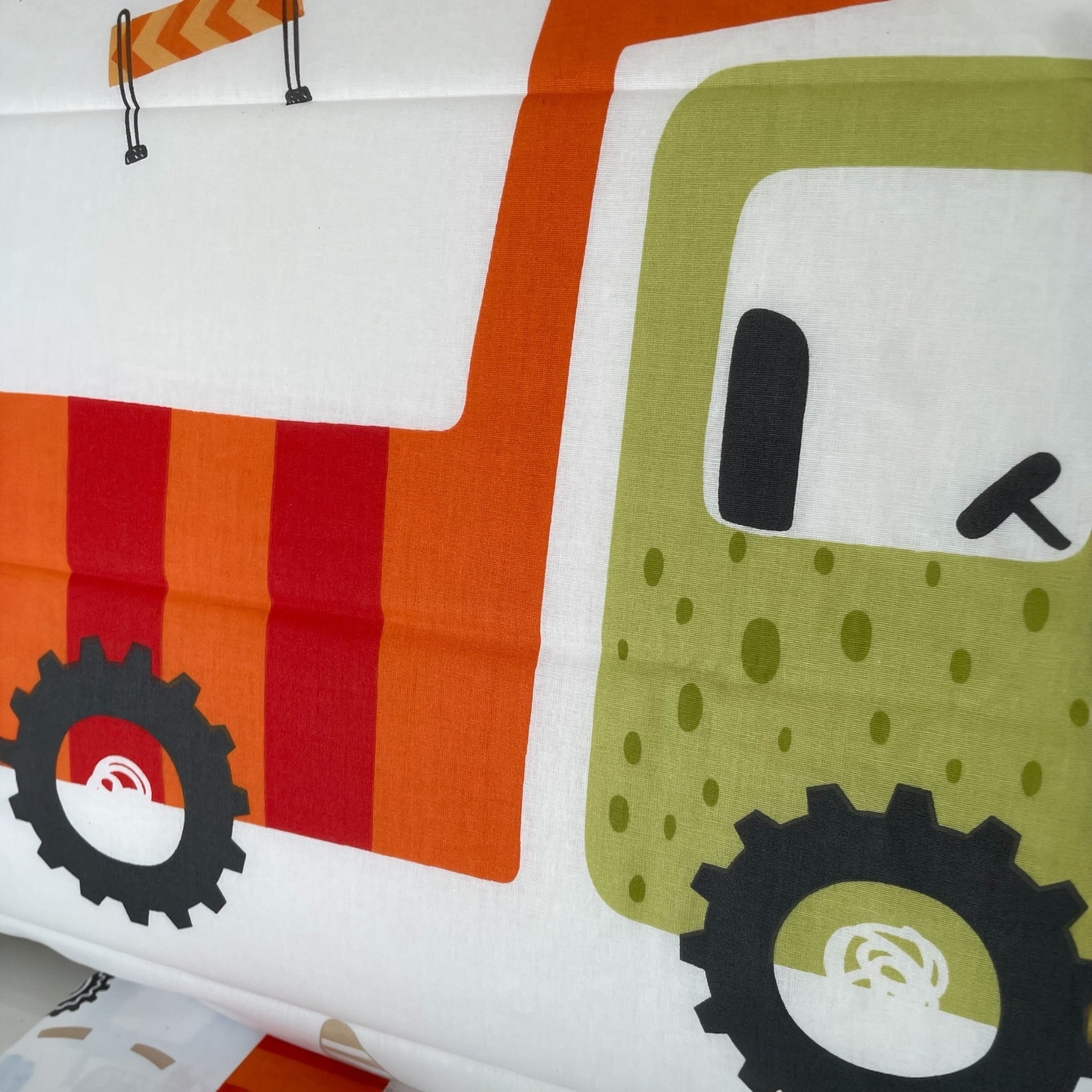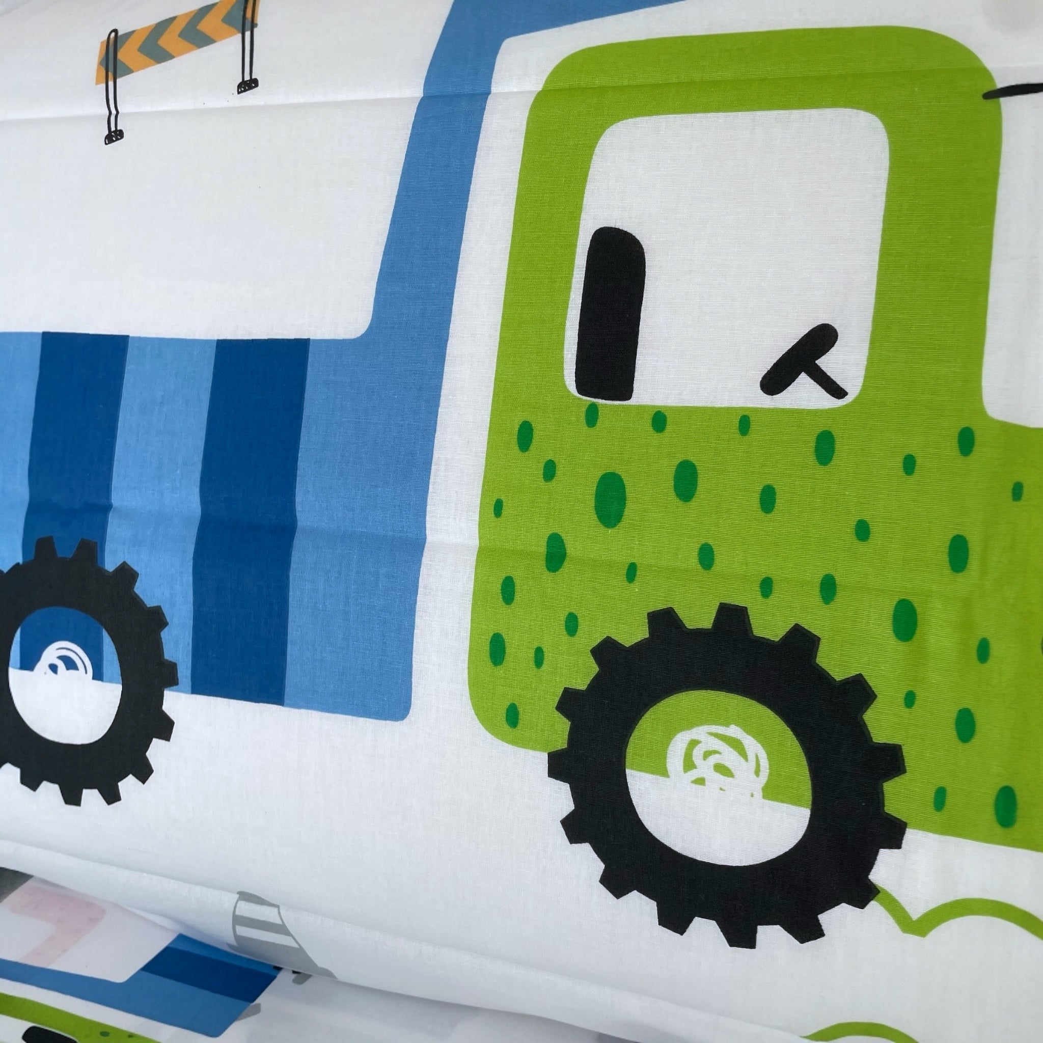 🧒 Ideale per bambini: fantasia colorata con camioncini per una cameretta allegra