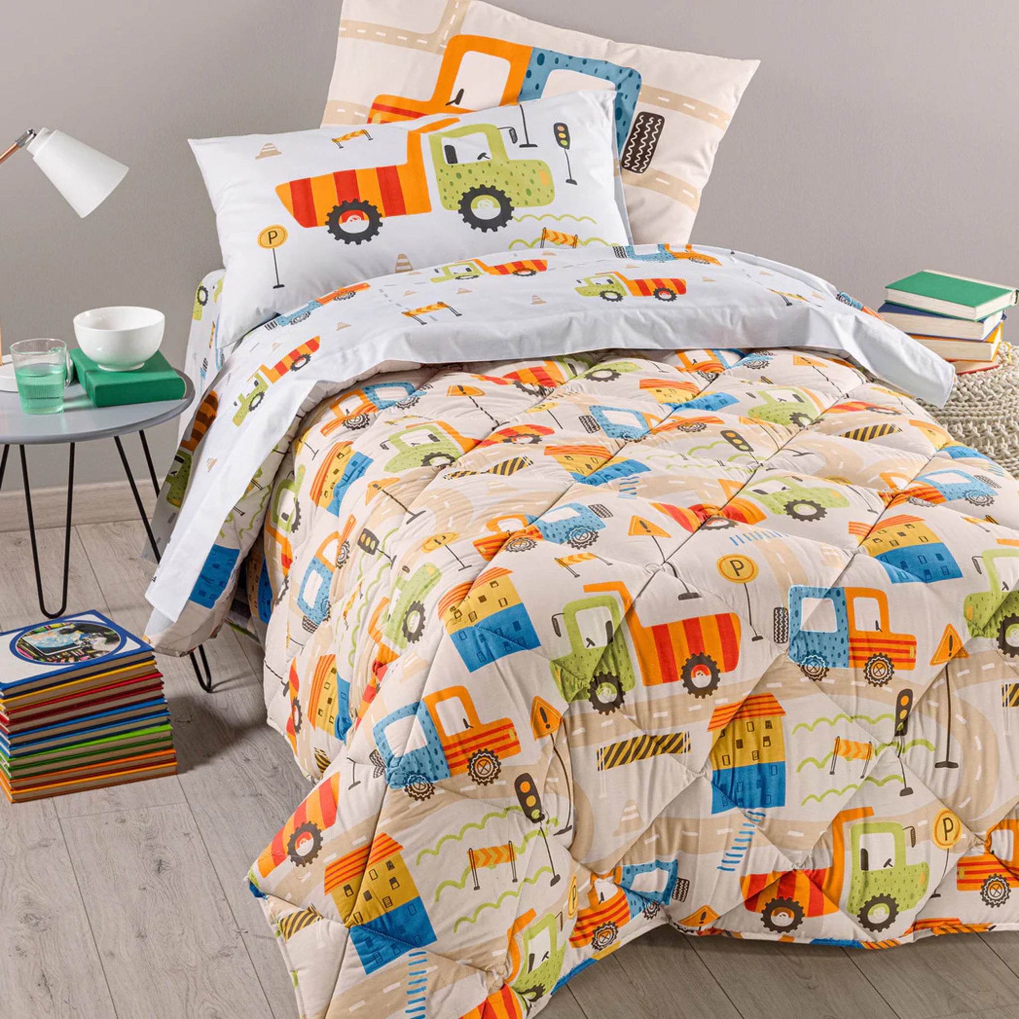 Rendi accogliente e divertente la cameretta con la trapunta invernale singola Caleffi City Car, perfetta per i più piccoli. Realizzata in 100% puro cotone con imbottitura in fibra anallergica da 300 gr/m², garantisce comfort e calore durante i mesi freddi. Il design colorato con macchinine e segnali stradali stimola la fantasia dei bambini.