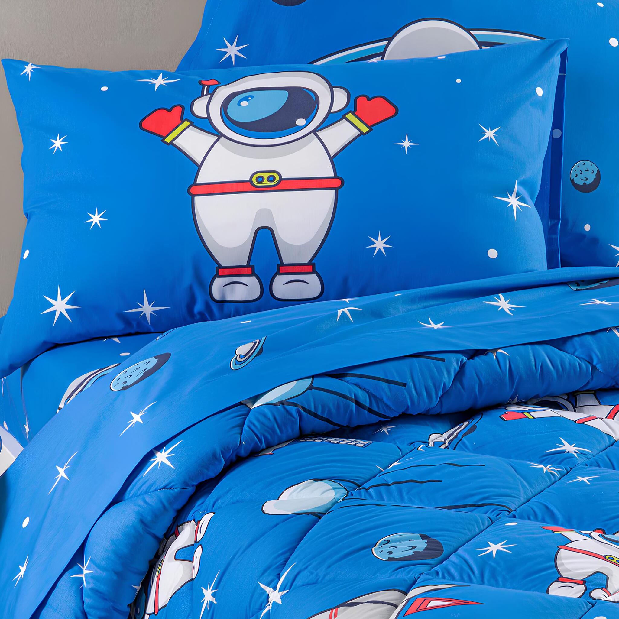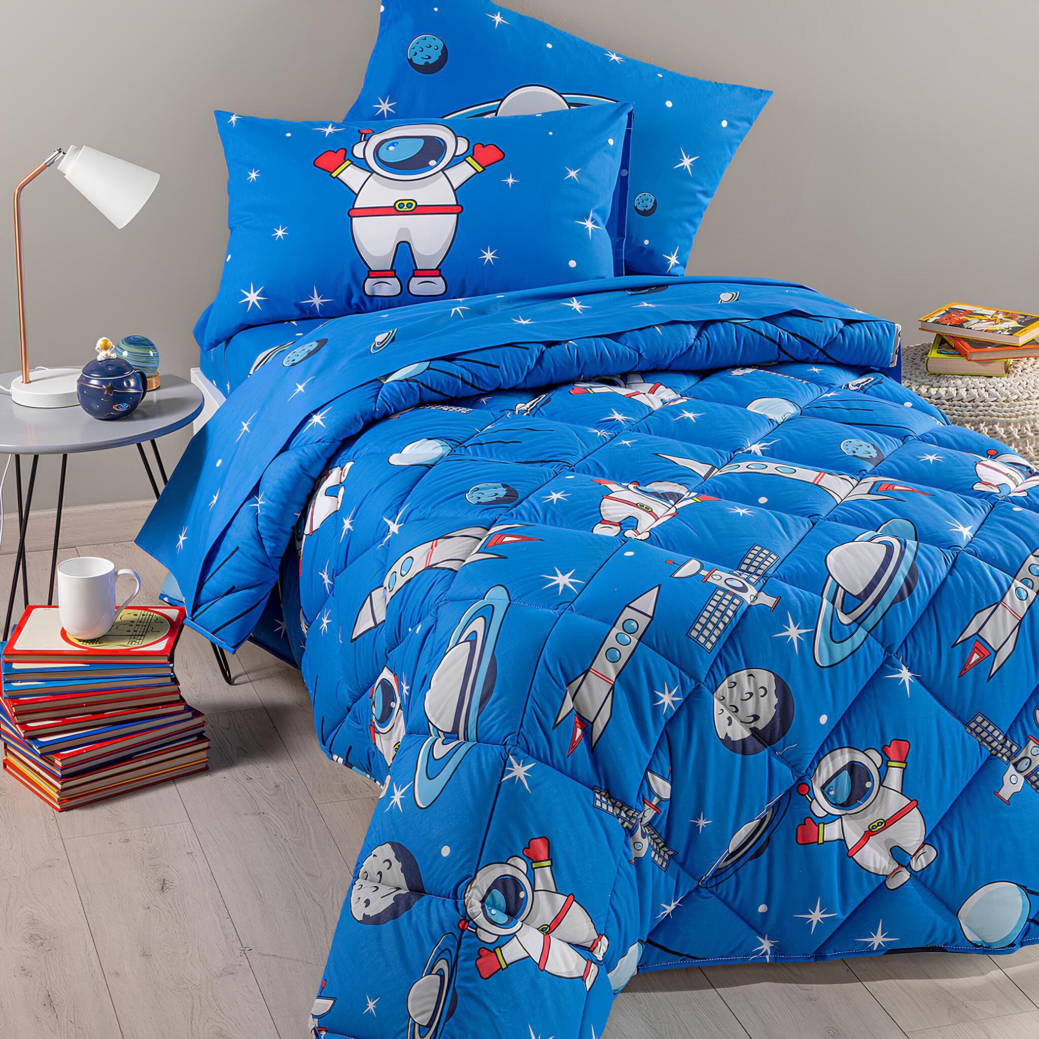 Regala ai più piccoli un viaggio tra stelle e pianeti con la trapunta invernale Spazio firmata Caleffi. Realizzata in 100% cotone e imbottita con fibra anallergica da 300 gr/m², è l’ideale per garantire comfort e calore nelle notti fredde. La trapuntatura a rombi mantiene l’imbottitura ben distribuita, evitando spostamenti. Certificata OEKO-TEX, è sicura anche per le pelli più sensibili. Disponibile nei colori blu e grigio, è perfetta per letti singoli (una piazza) grazie alle dimensioni di 165x265 cm. Un prodotto Made in Italy di qualità firmato Caleffi.