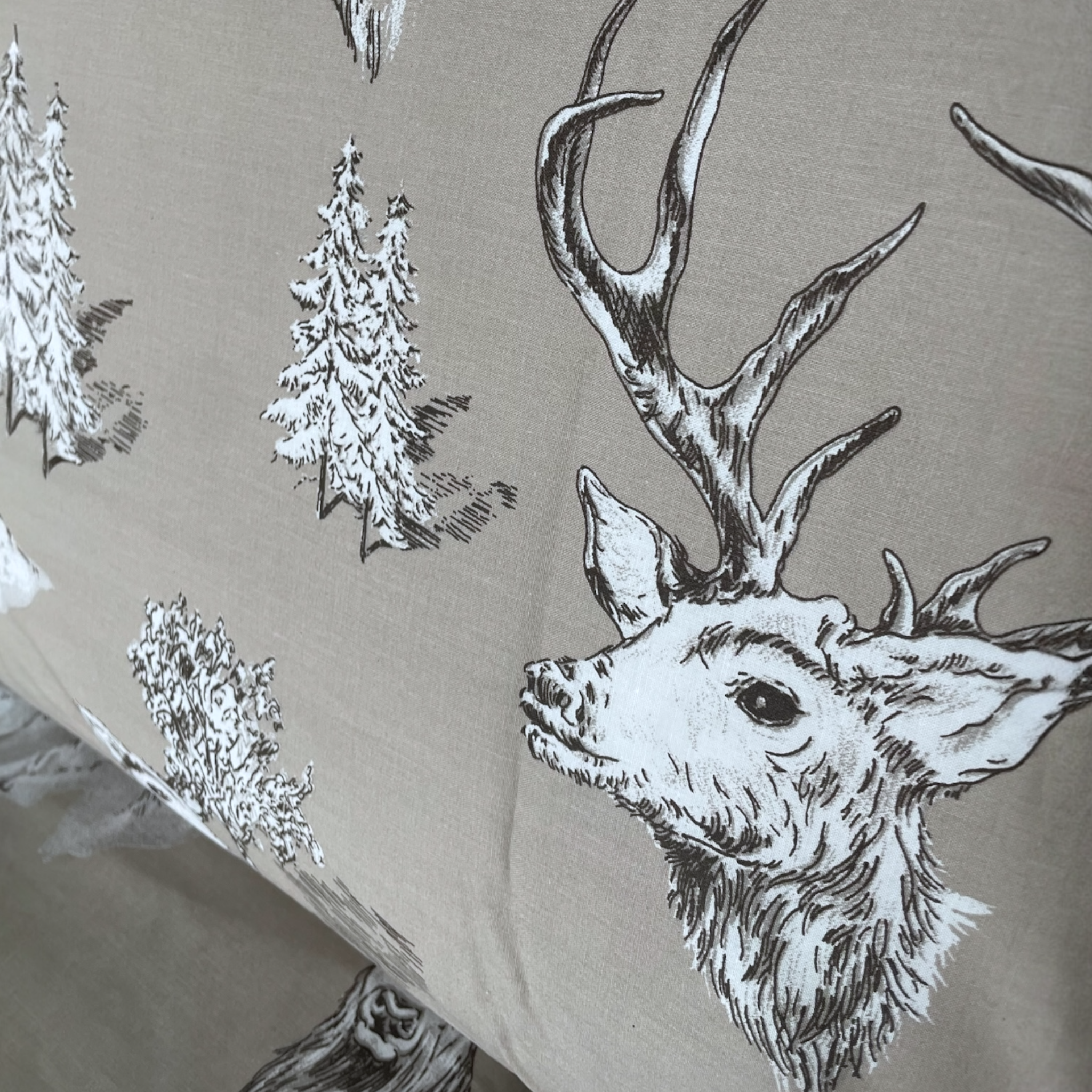 Rendi la tua camera accogliente con la Parure Copripiumino Matrimoniale Deer di Zambaiti. Realizzata in 100% cotone naturale, garantisce morbidezza, comfort e traspirabilità per un riposo perfetto. La fantasia a cervi e alberi dal gusto naturale e montano porta in camera da letto un’atmosfera calda ed elegante. Prodotto Made in Italy, sinonimo di qualità tessile e cura nei dettagli.