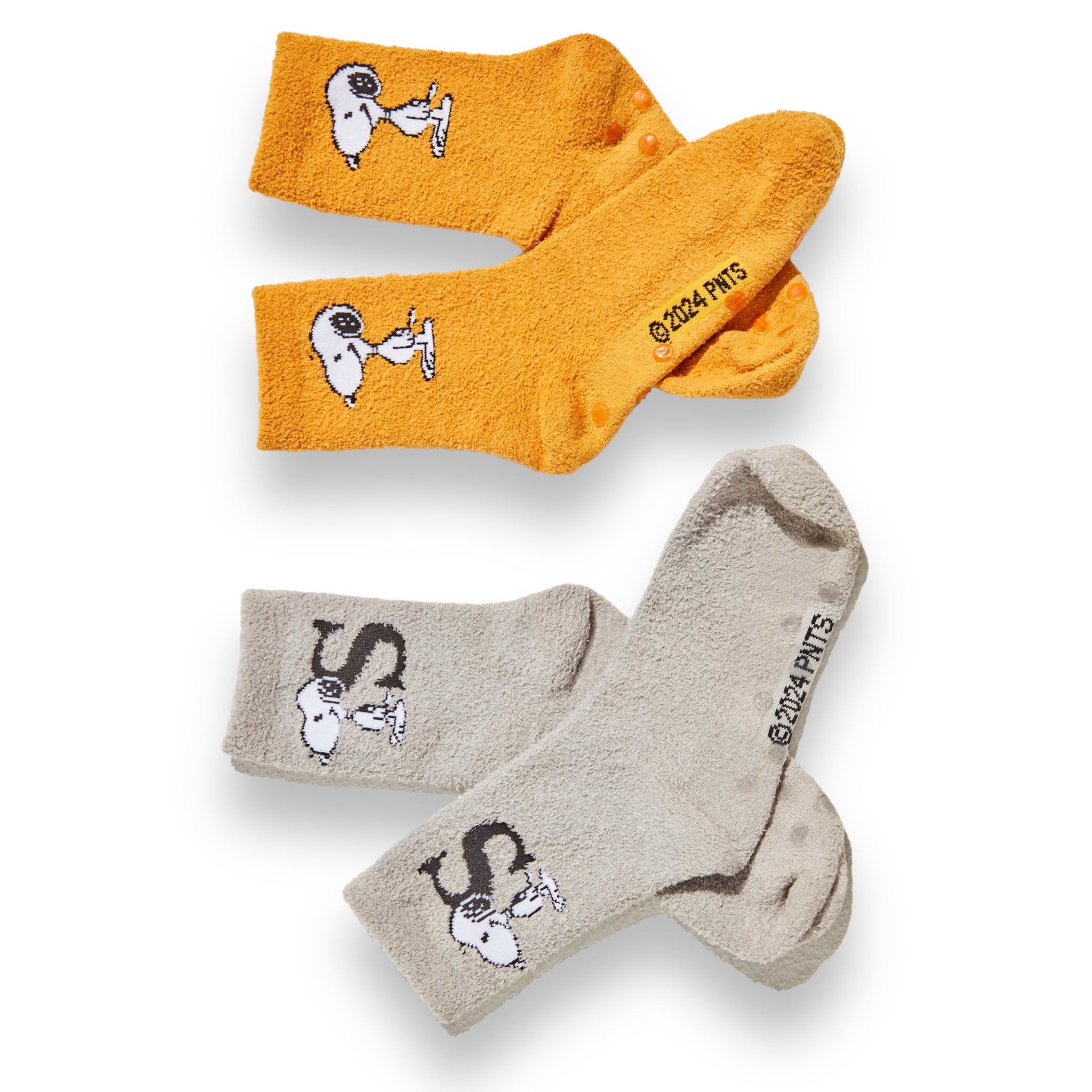 Set di 2 paia di Calzini da donna invernali con ricami e applicazioni di Snoopy assortiti in due modelli e due colori. Questi calzini da donna in pile sono caldi e soffici, ideali per stare in casa con stile e soprattutto per tenere i piedi sempre al caldo. Presentano dei gommini antiscivolo per una stabilità ottimale.