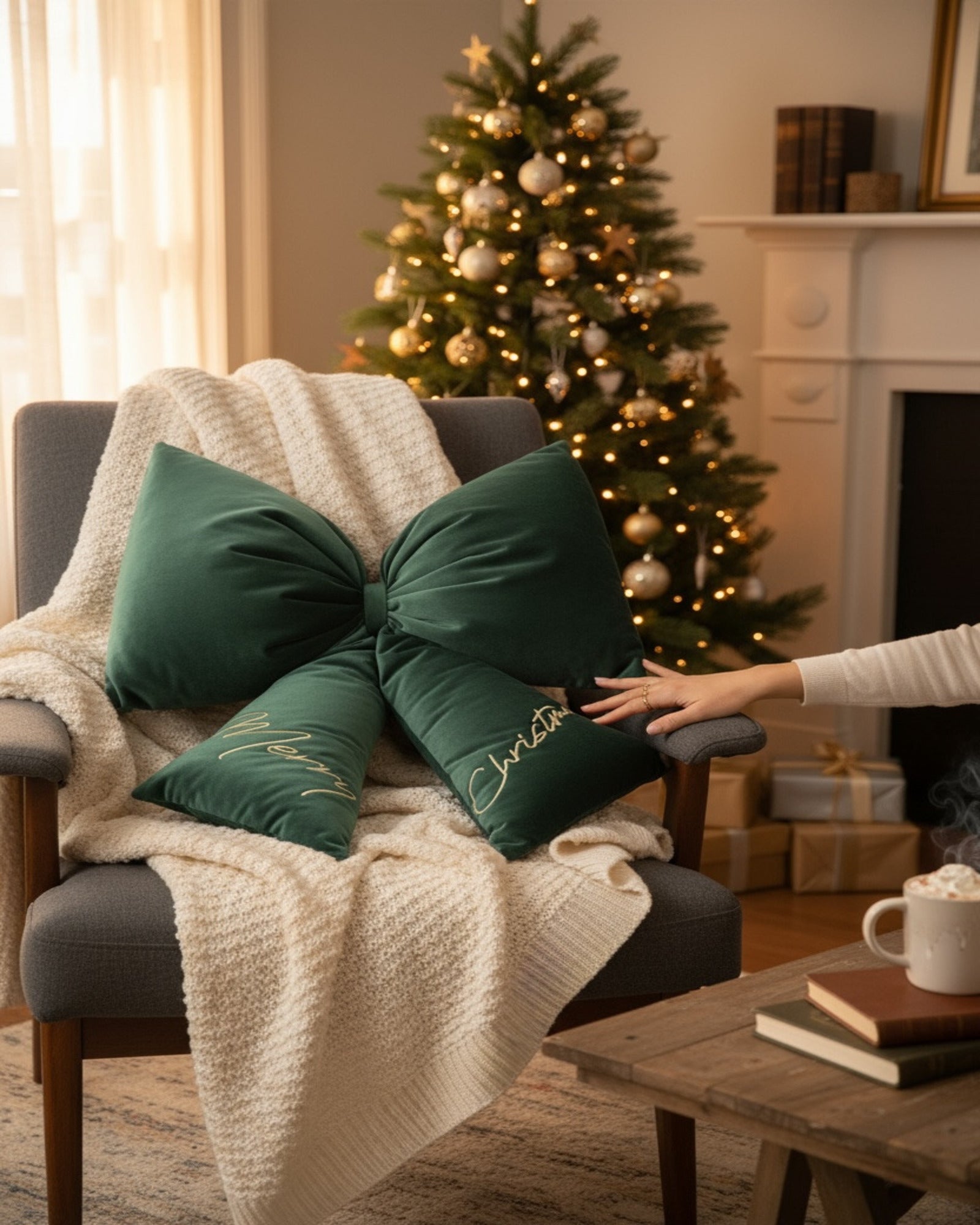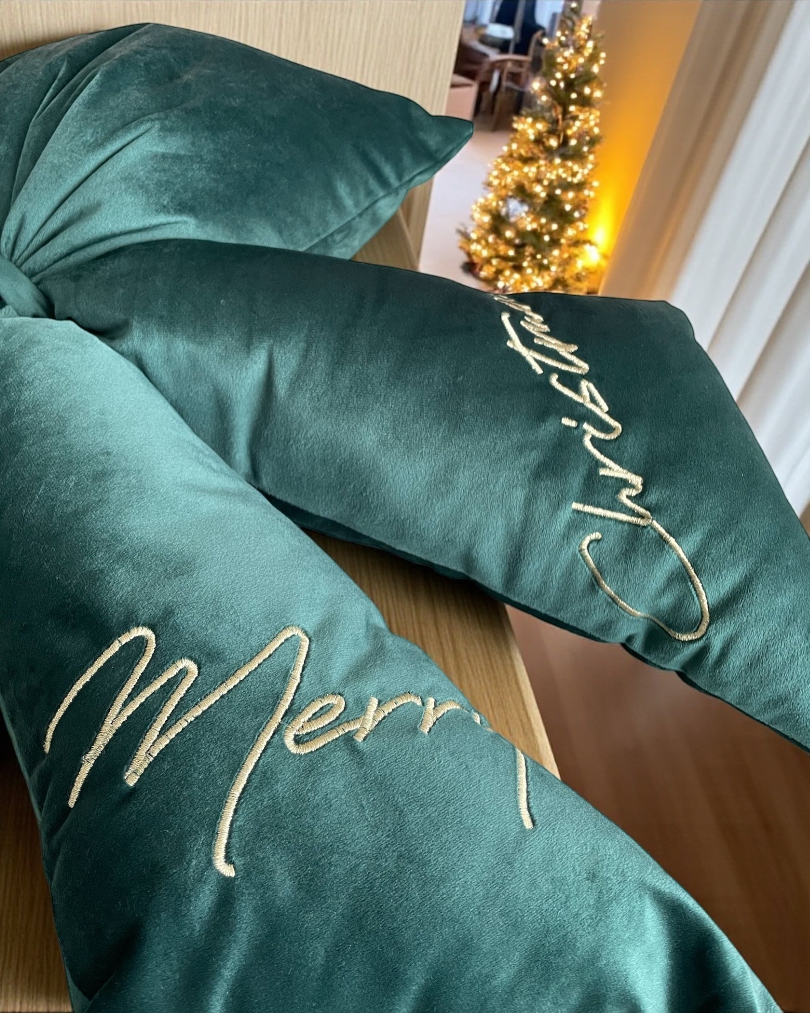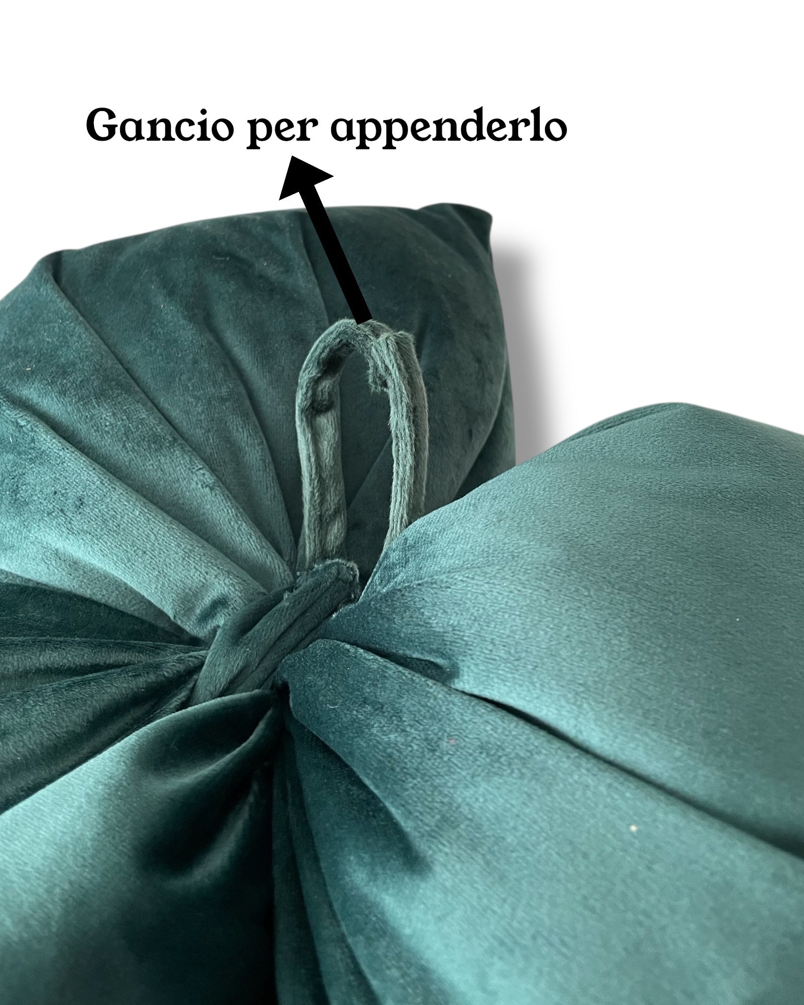 Fiocco decorativo natalizio in velluto con ricamo “Merry Christmas” Verde
