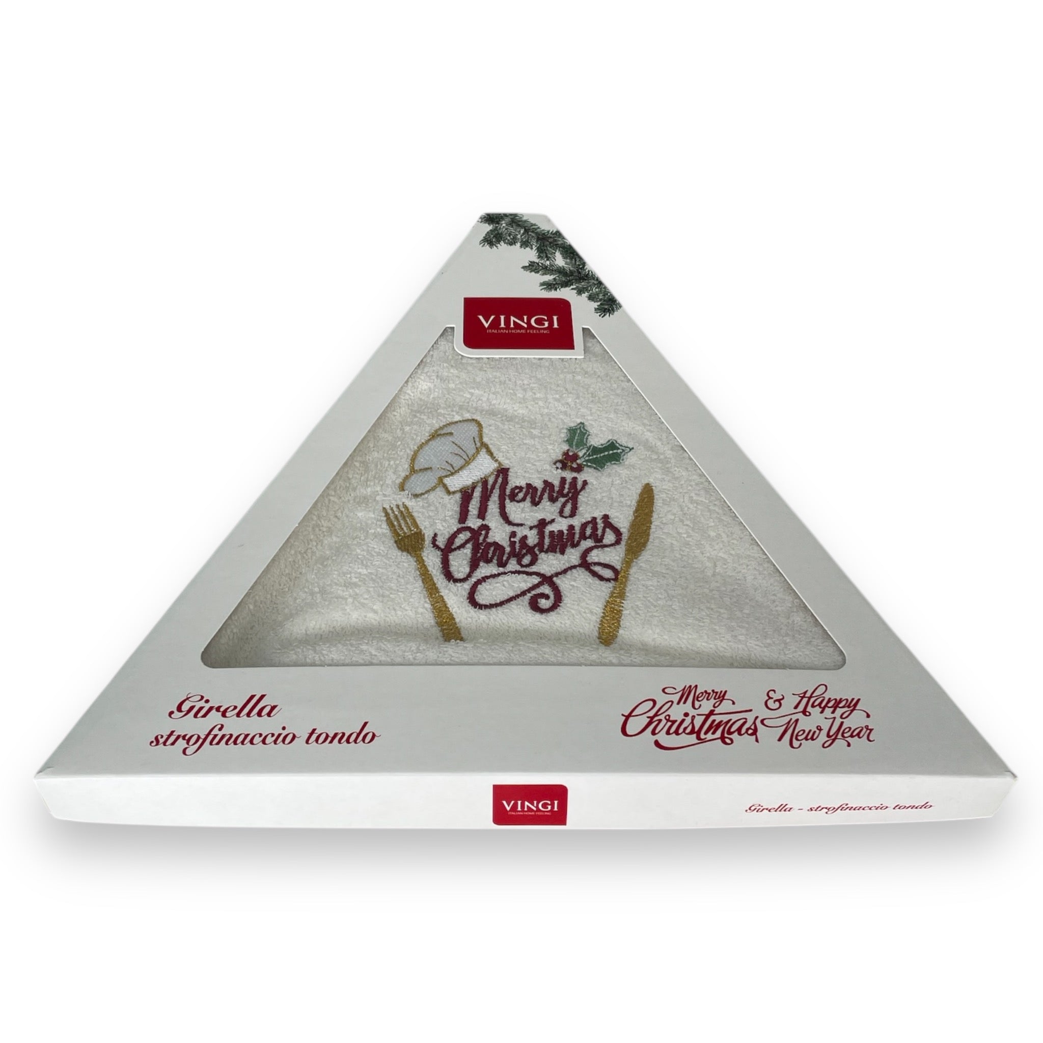 Strofinaccio Natalizio rotondo di Vingi in Spugna di Cotone Art. Xmas