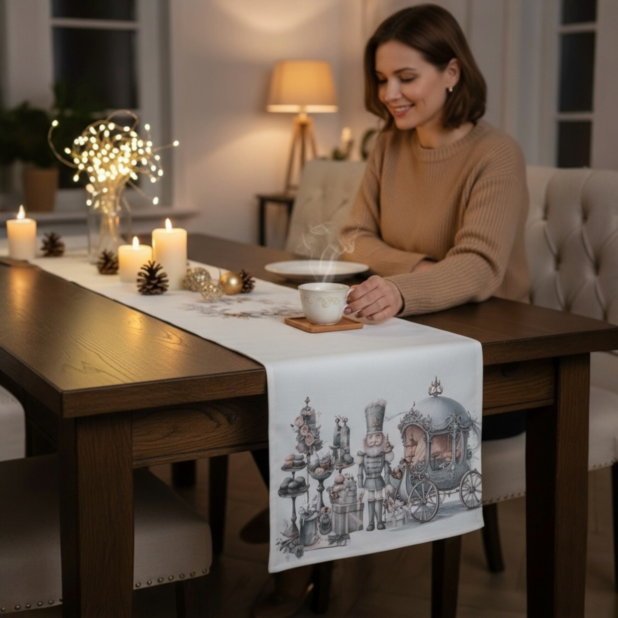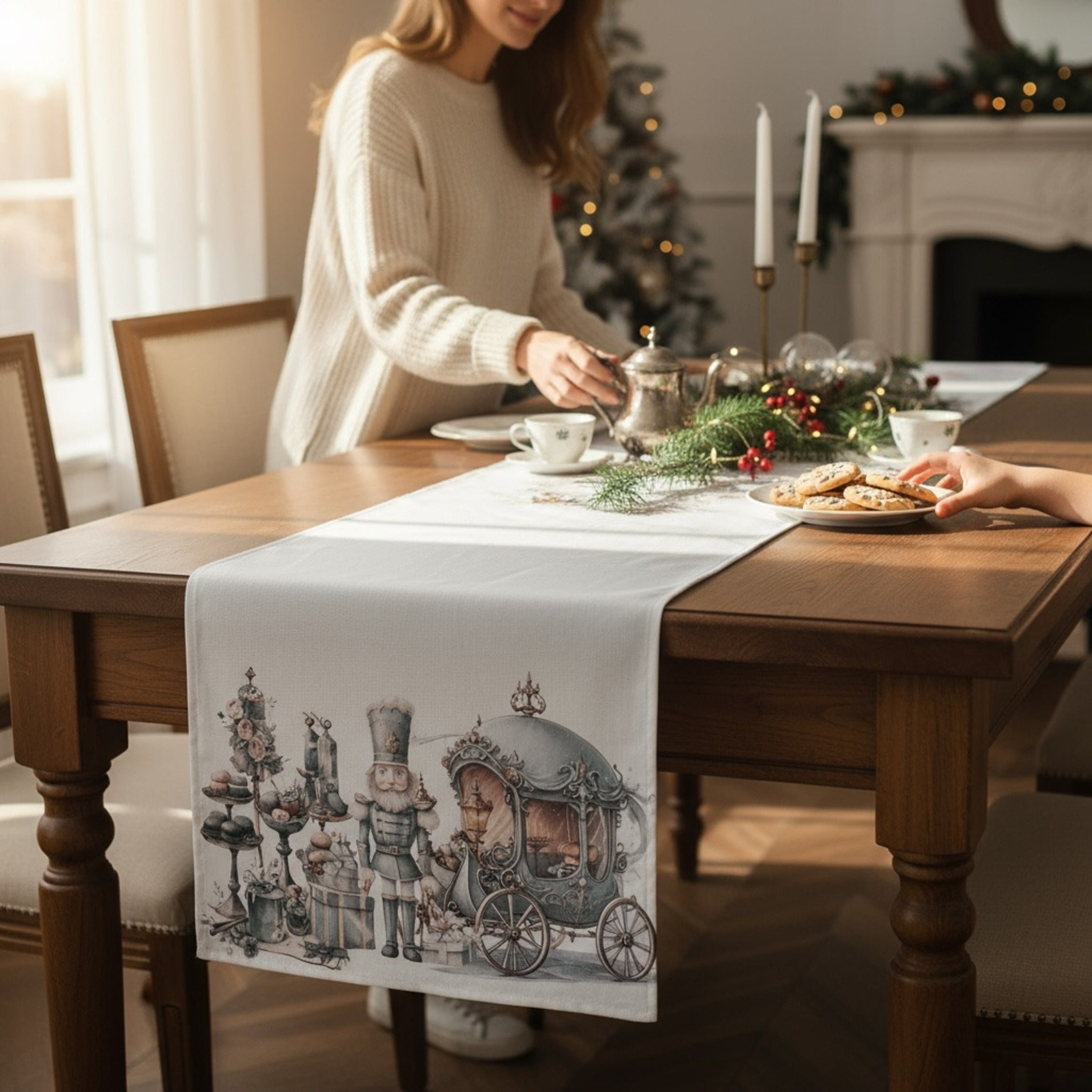 Runner centrotavola Natalizio in cotone panama 44x150 cm Art. Polar Express