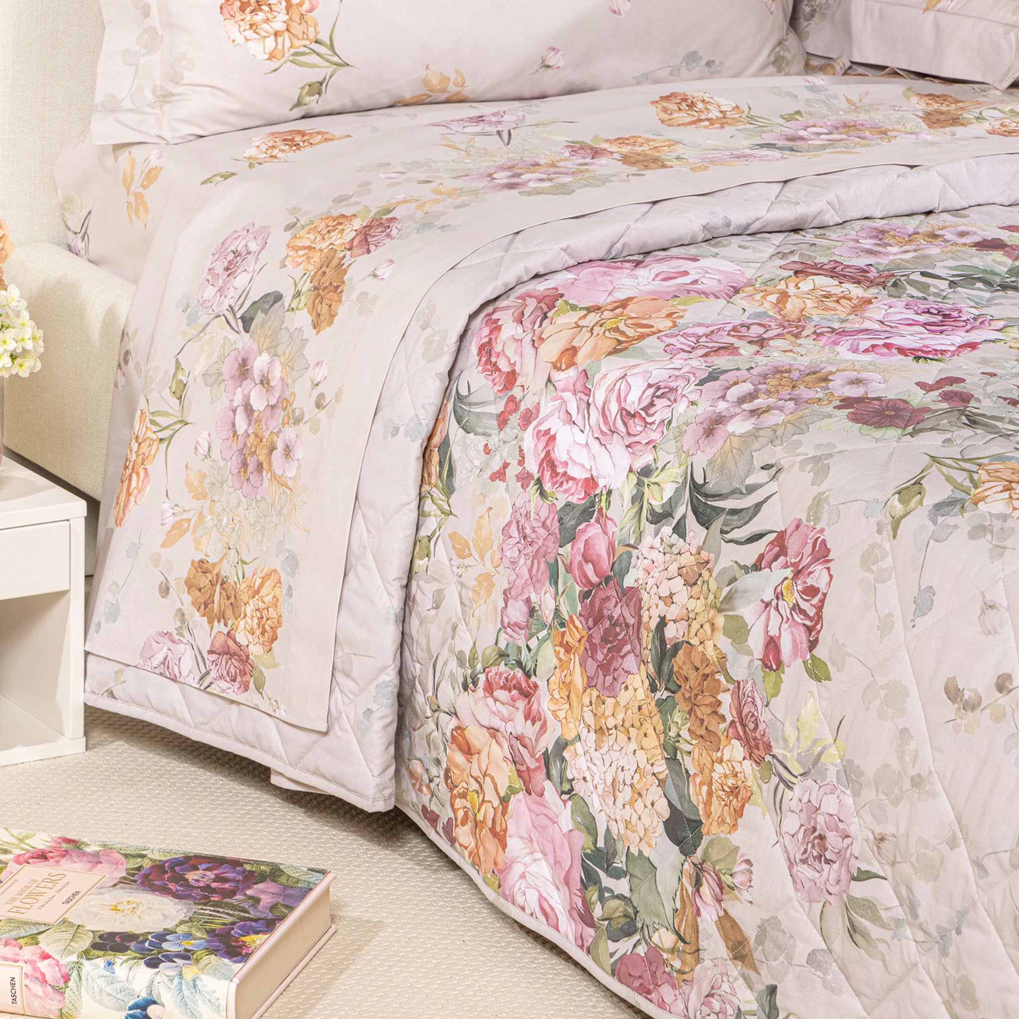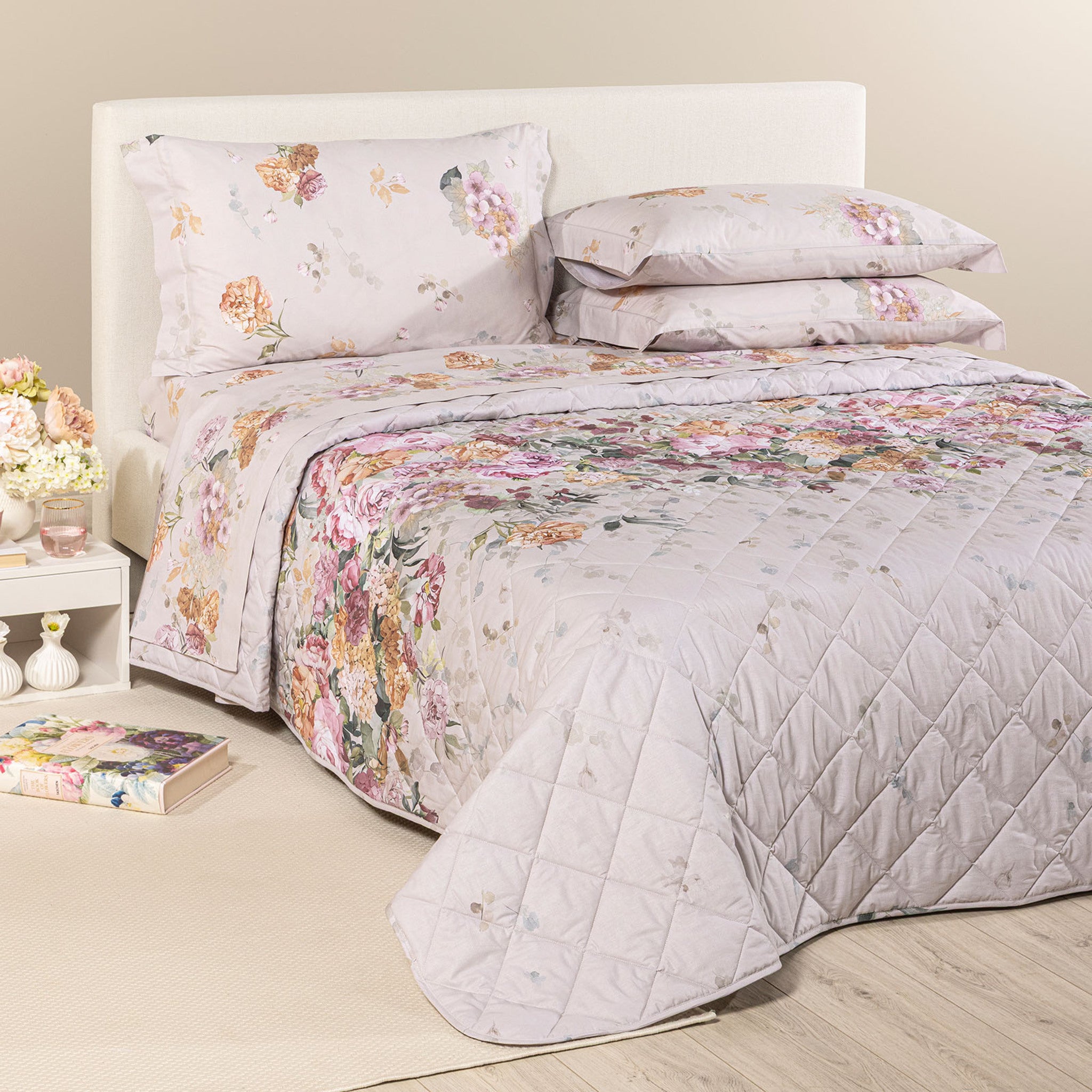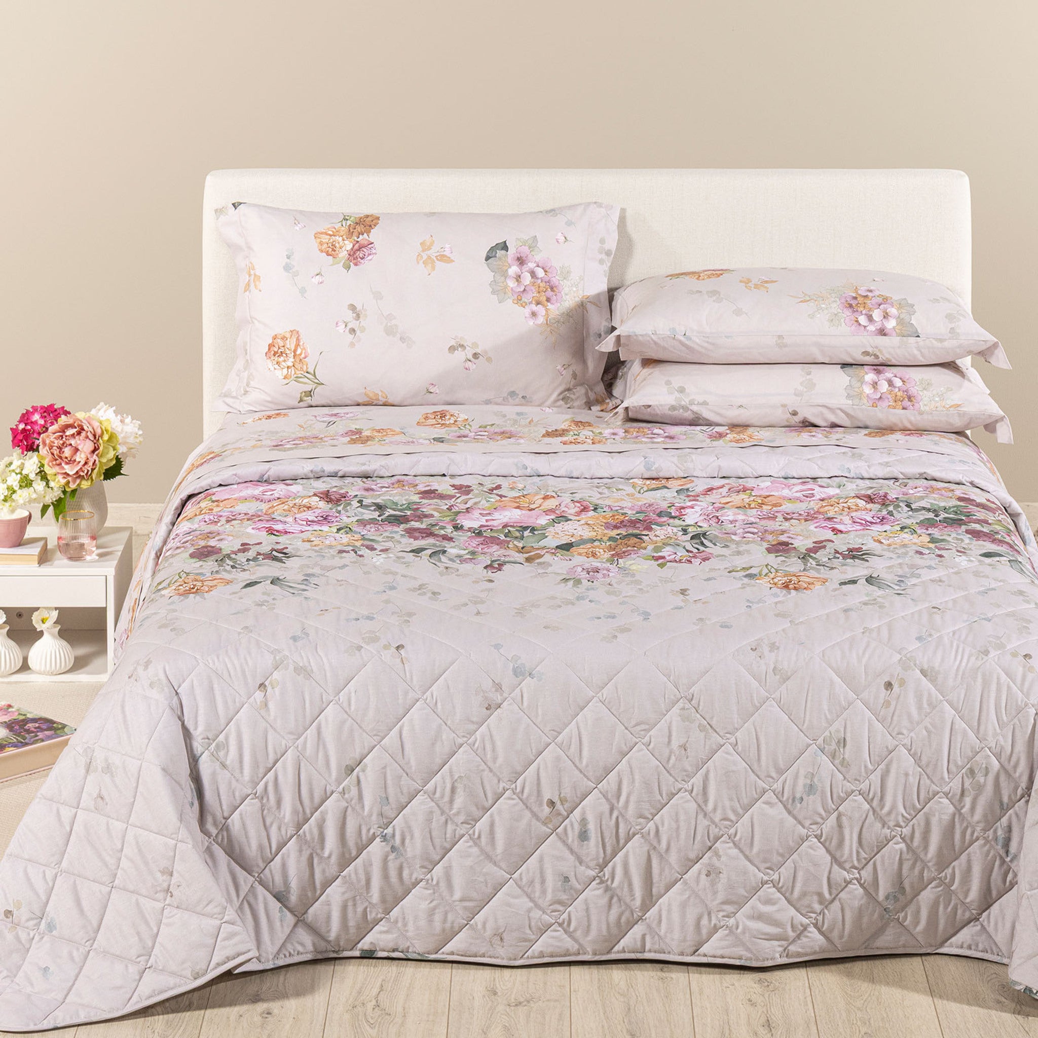 Il copriletto trapuntato matrimoniale Caleffi Ikebana porta nella tua camera da letto la freschezza dei fiori e l’eleganza dello stile italiano.