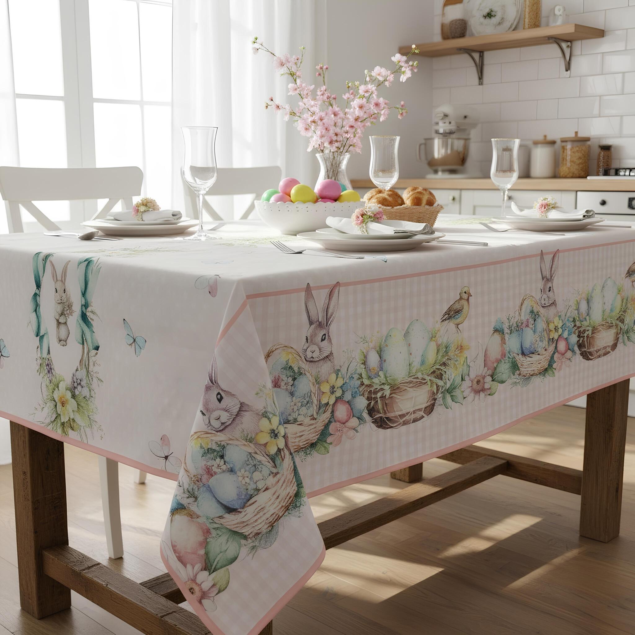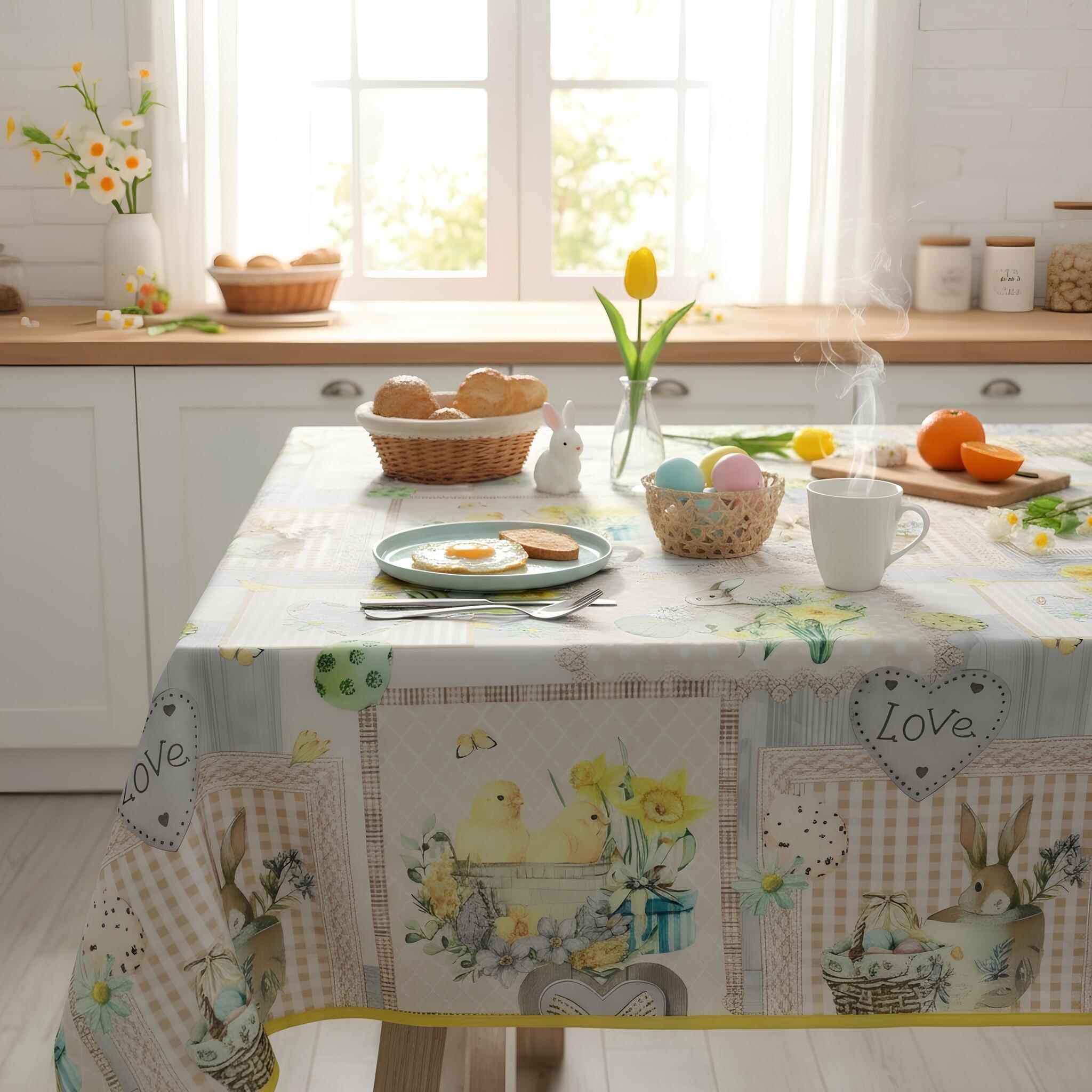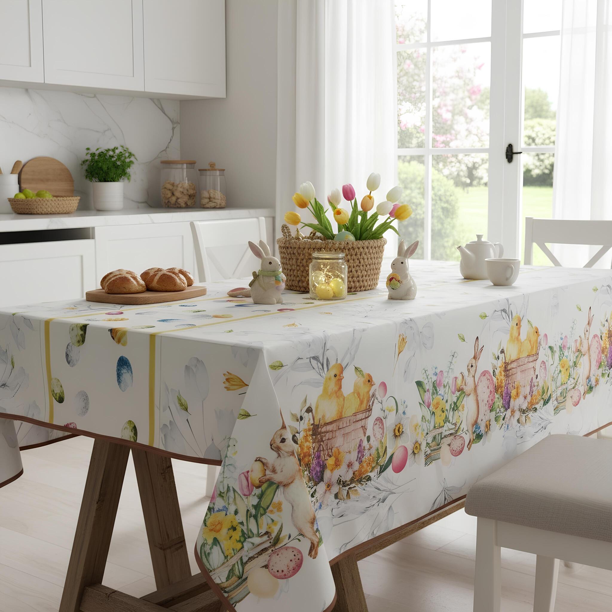 Porta in tavola l’atmosfera dolce e luminosa della Pasqua con la tovaglia antimacchia Fancy Home, disponibile in due misure ideali per ogni esigenza: