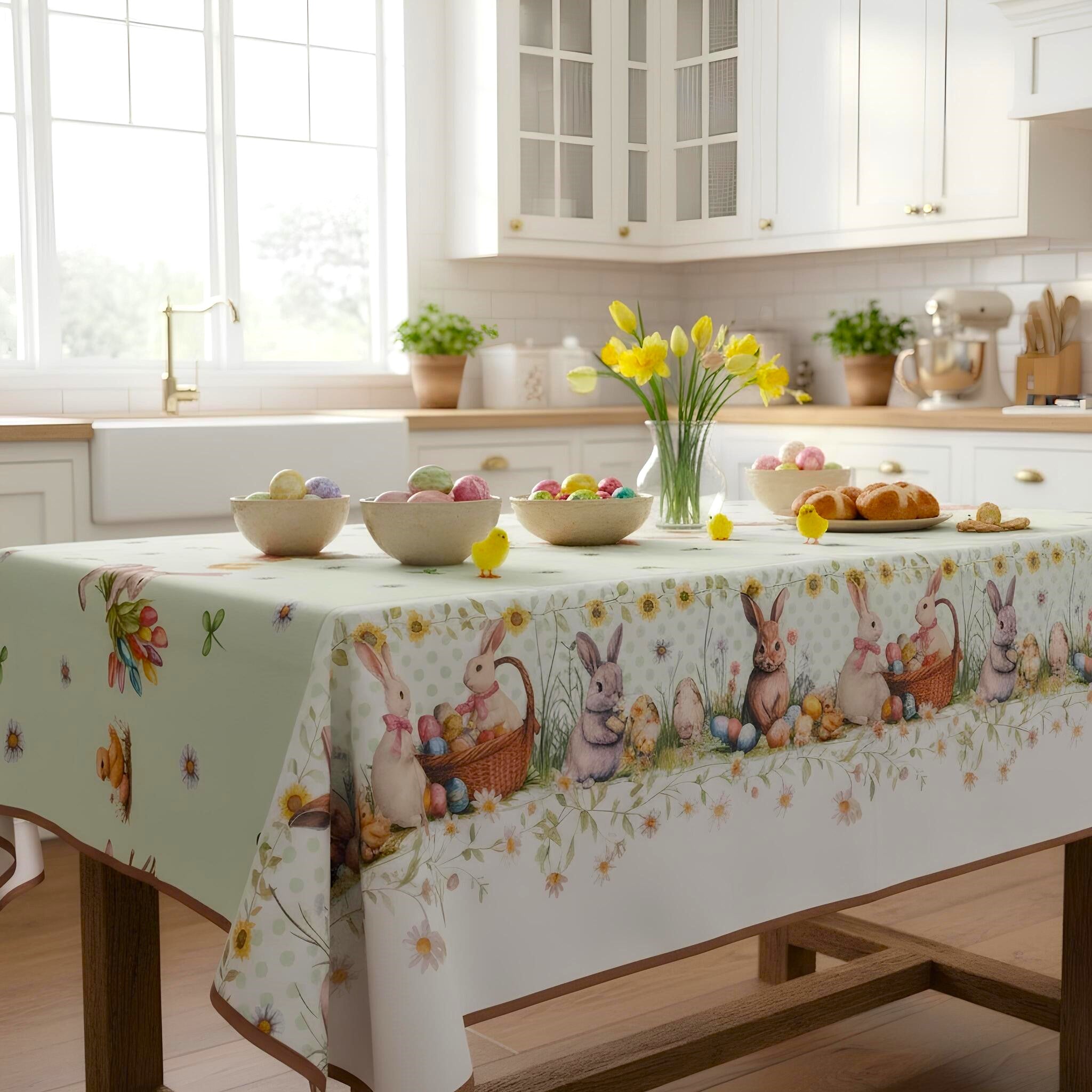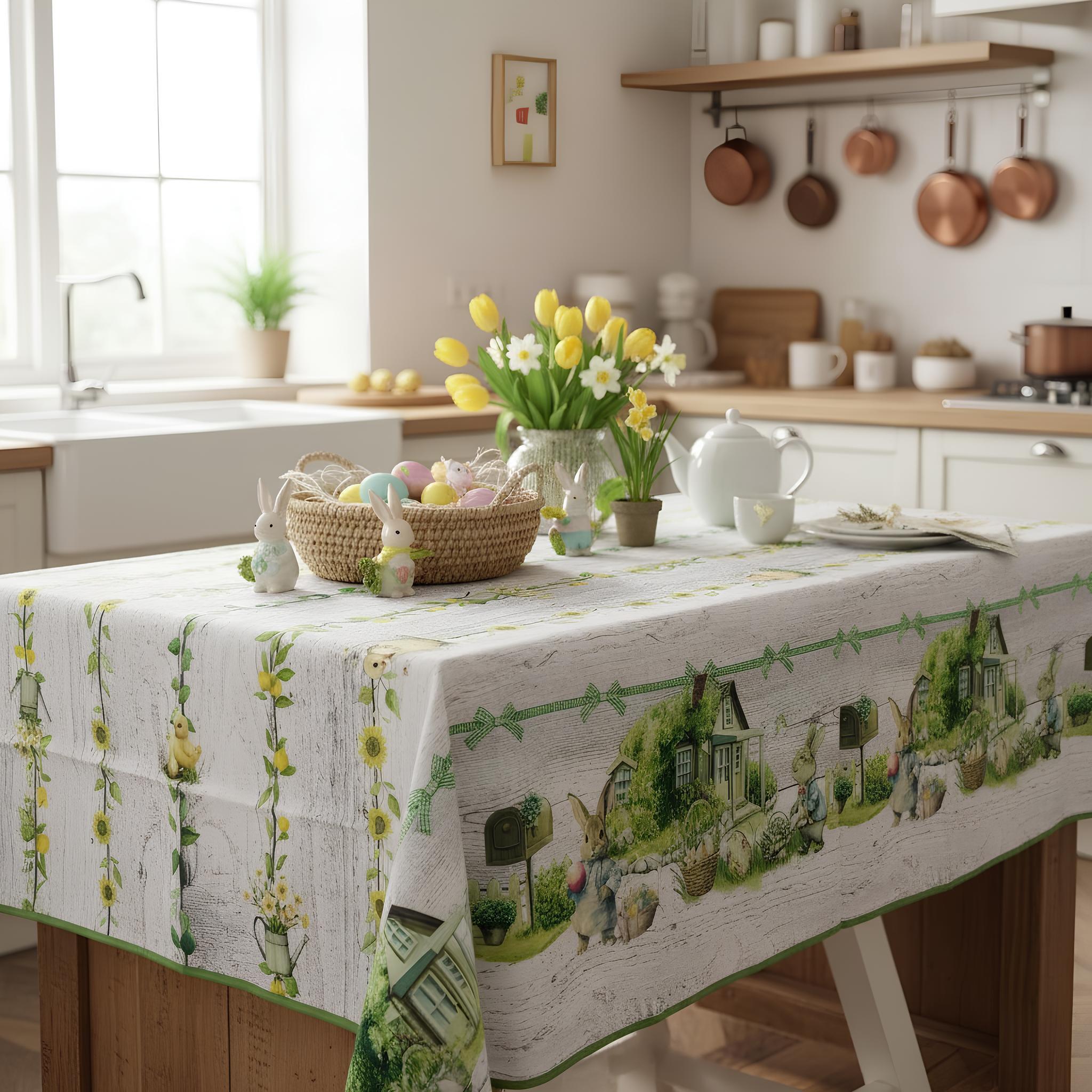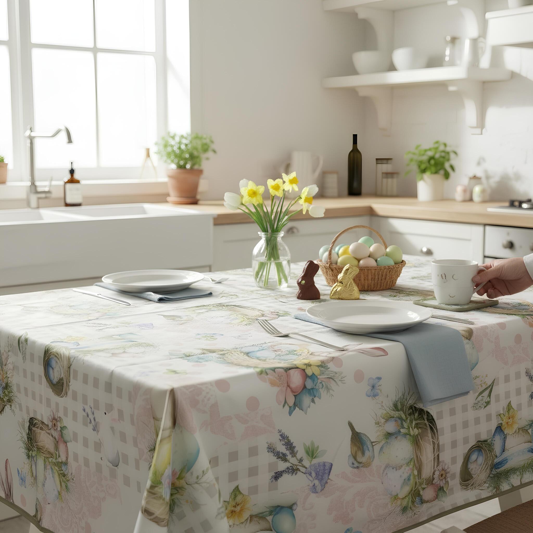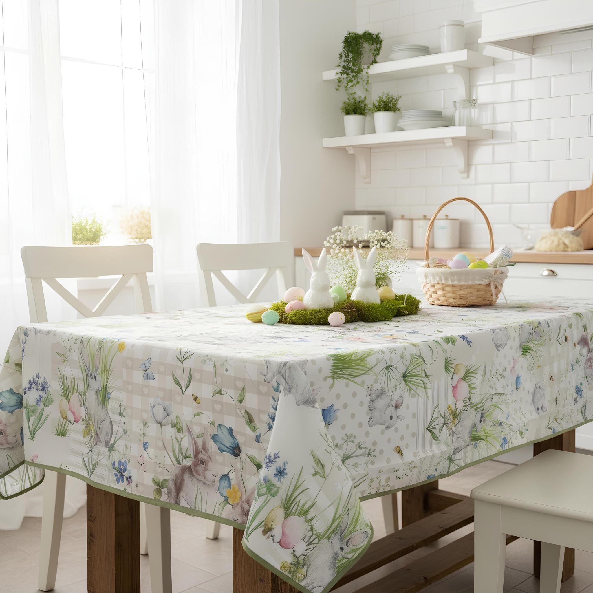 Porta in tavola l’atmosfera dolce e luminosa della Pasqua con la tovaglia antimacchia Fancy Home, disponibile in due misure ideali per ogni esigenza: