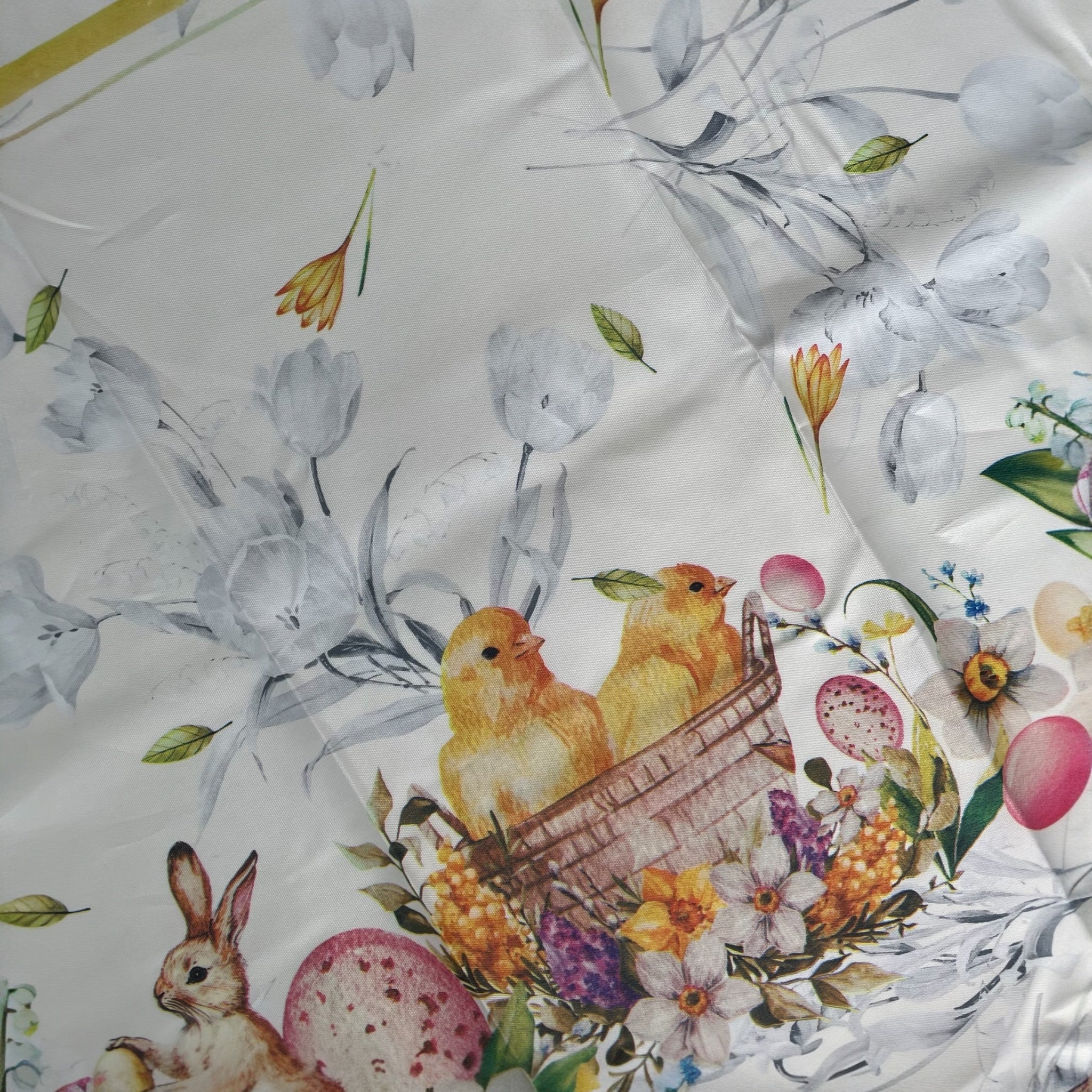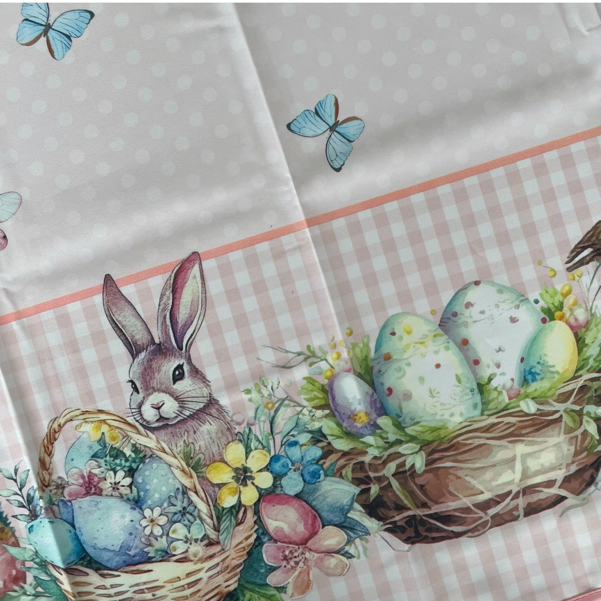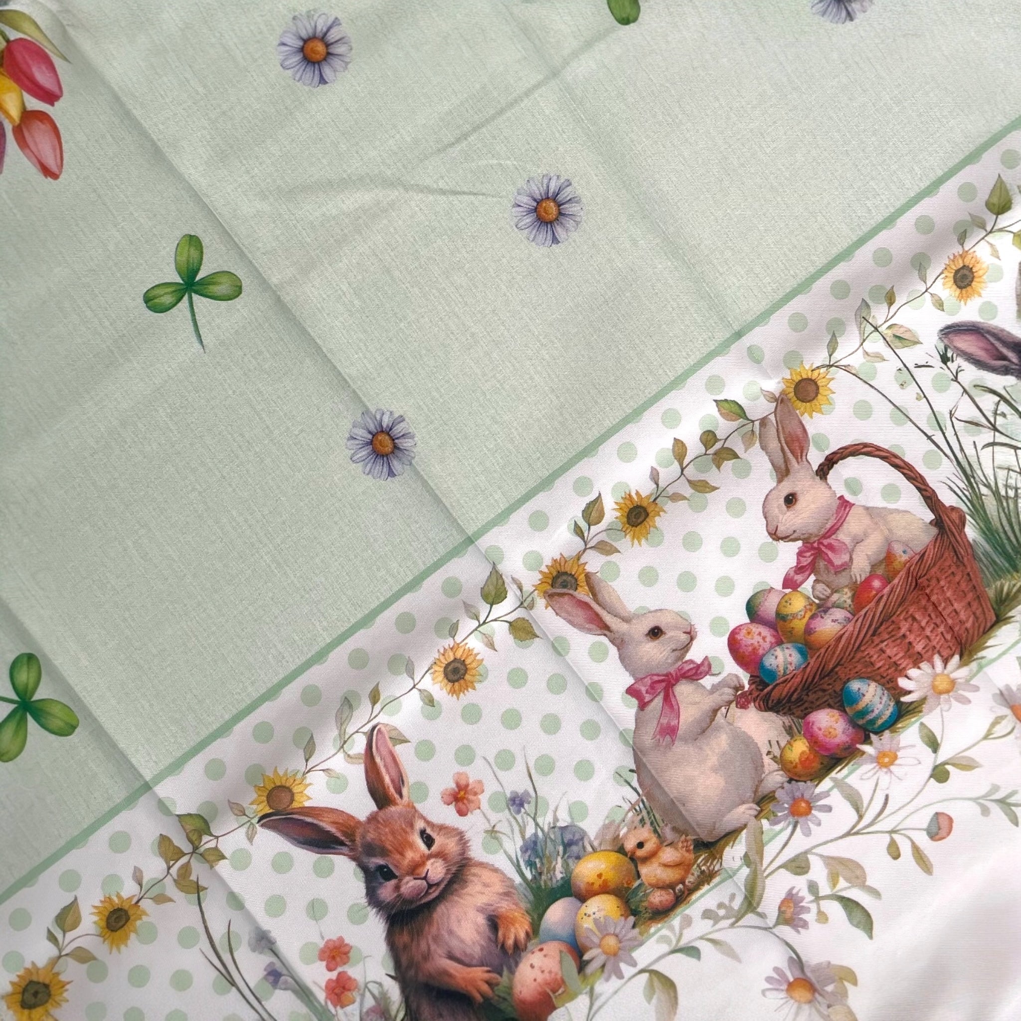 La stampa digitale ad alta definizione valorizza ogni dettaglio delle fantasie pasquali: coniglietti, uova decorate, fiori primaverili e motivi delicati che rendono la tavola accogliente e raffinata. I colori risultano brillanti e resistenti nel tempo.