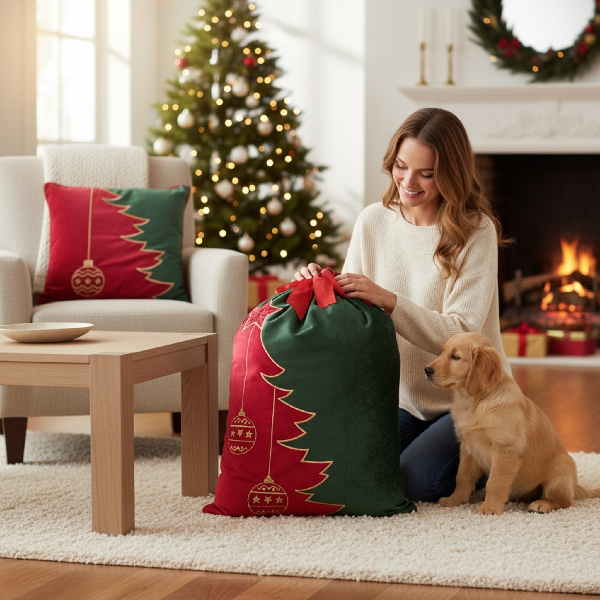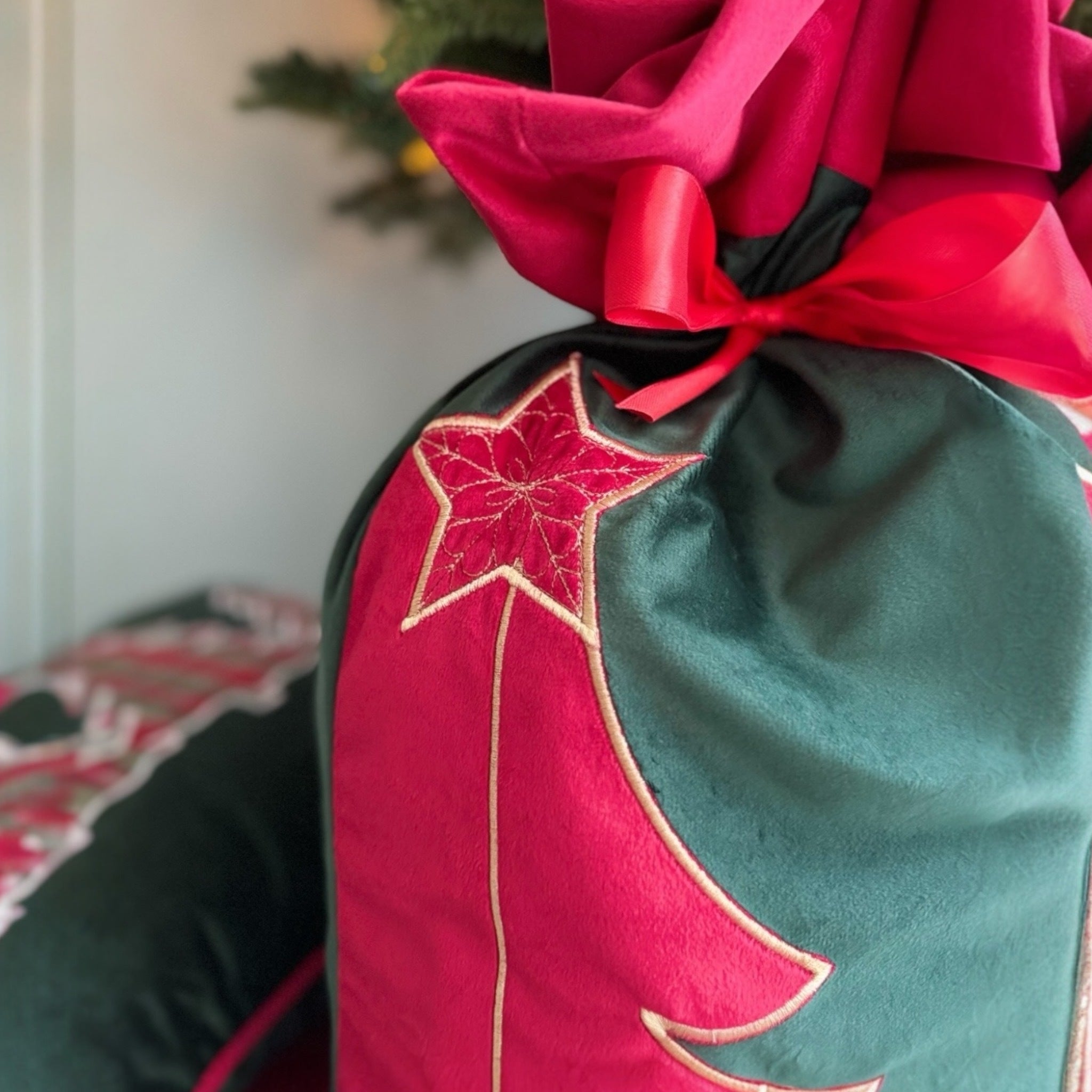 Sacco di Babbo Natale in velluto con applicazioni ricamate Art. Angela