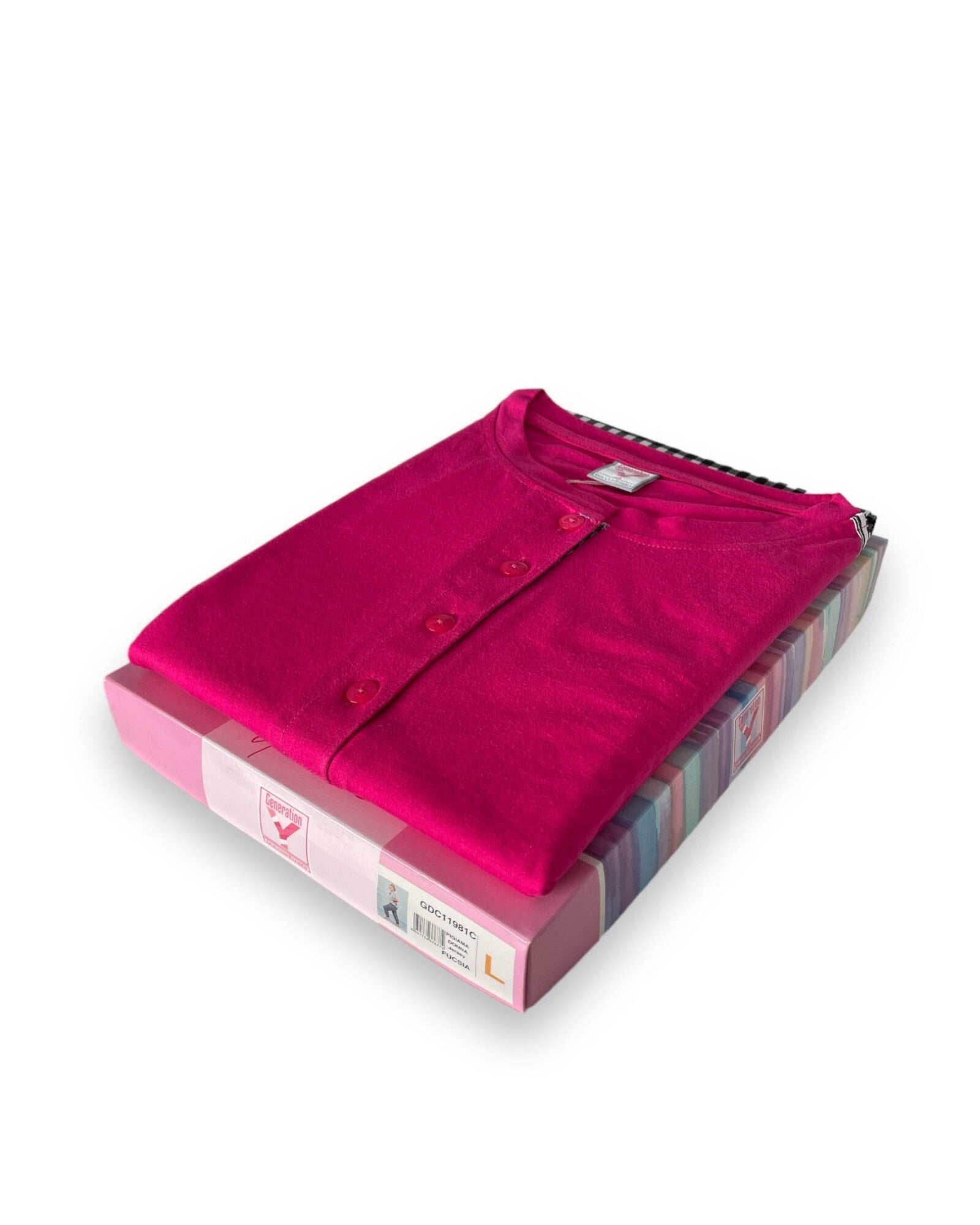 Pigiama Donna in puro cotone con maglia a mezze maniche e pantalone lungo della collezione primavera/estate Buccia di Mela. Composizione 100% cotone, confezionato in scatola. Cotone fresco e leggero, adatto per tutto l'anno