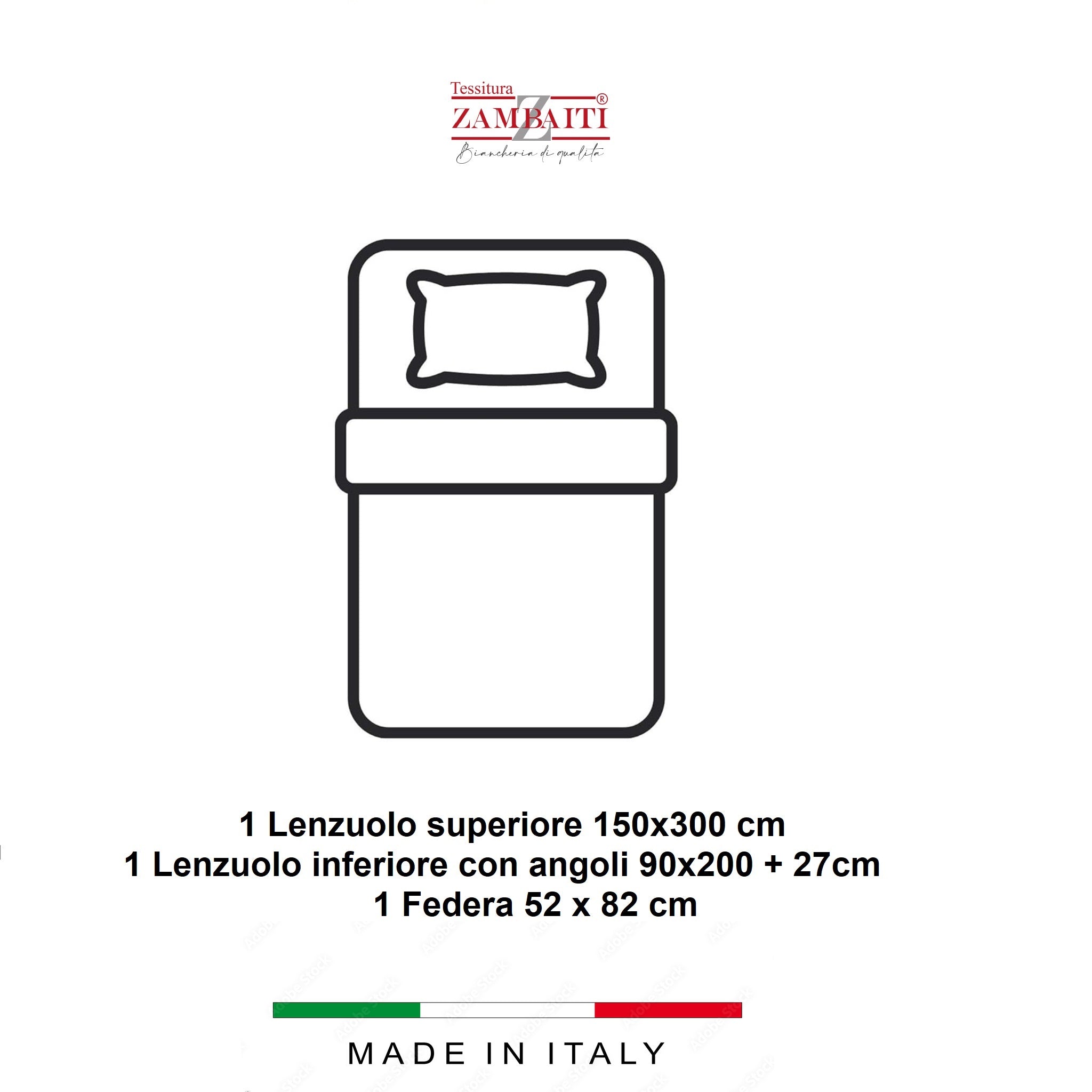 🛏️ Set completo 3 pezzi – Lenzuolo sopra 150x300 cm, sotto con angoli 90x200 + 27 cm e 1 federa 52×82 cm