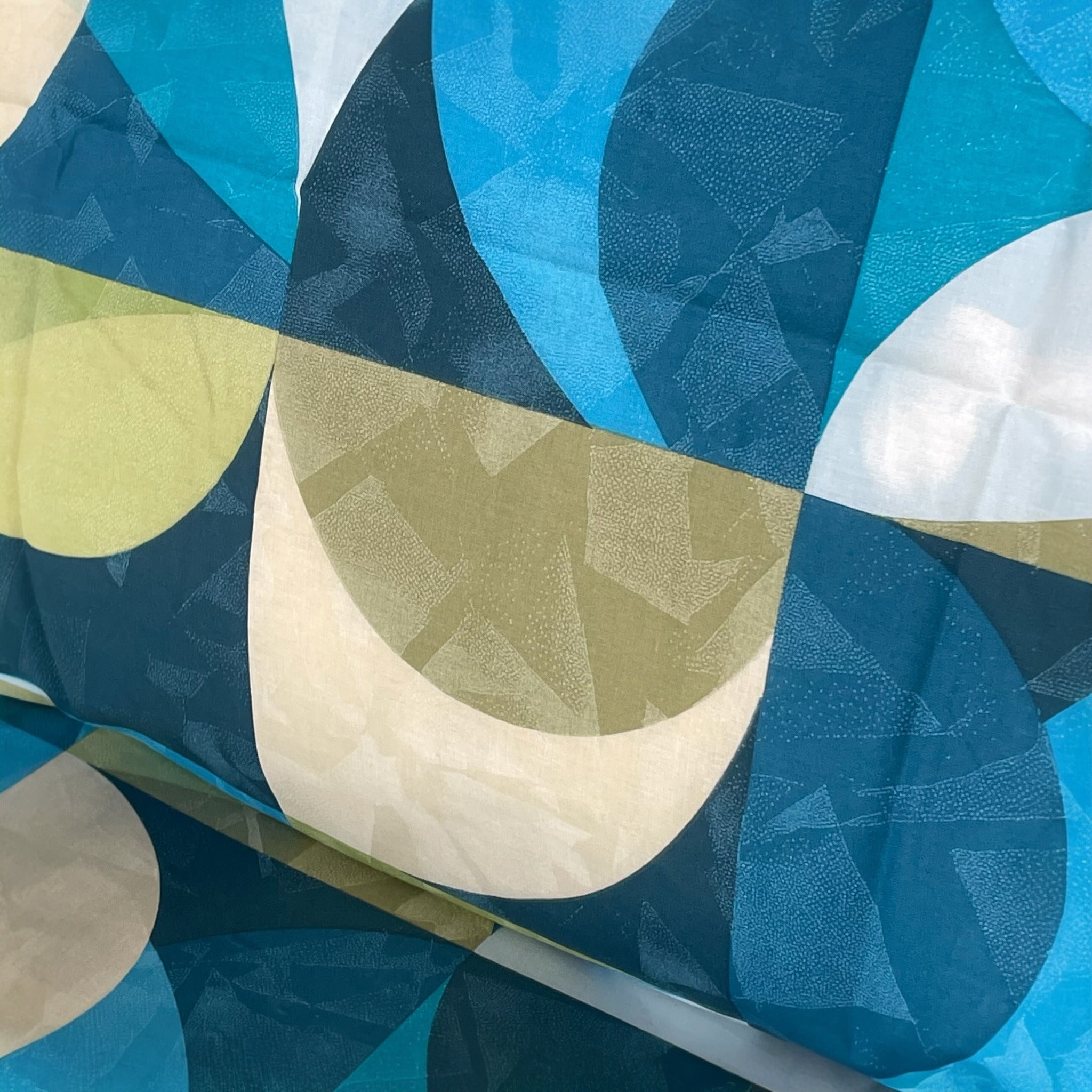 🔷 Stile moderno e geometrico – Fantasia blu con dettagli verdi per un look contemporaneo
