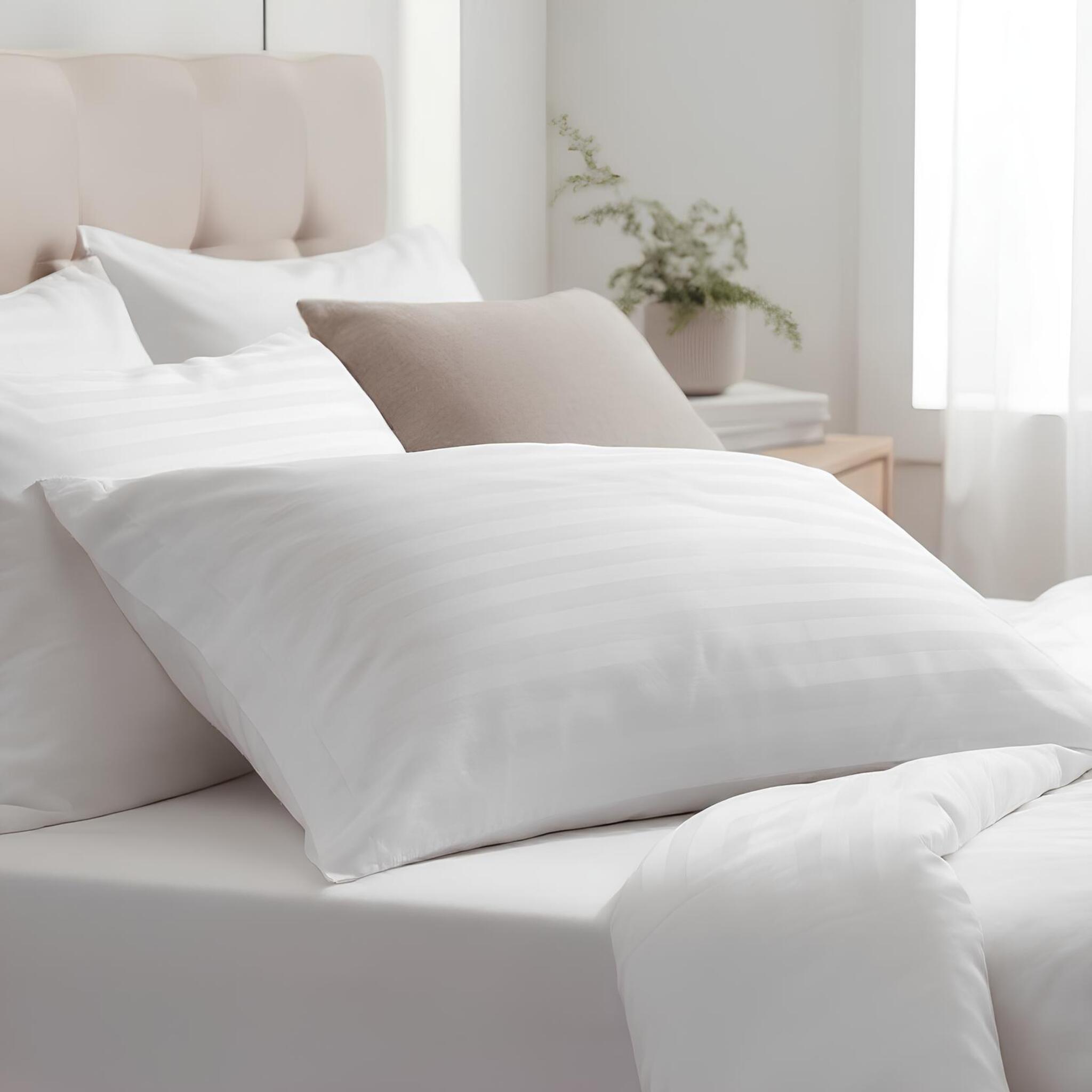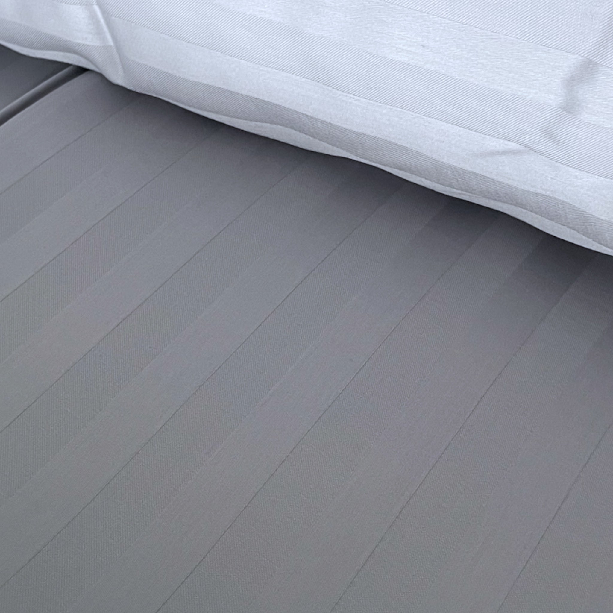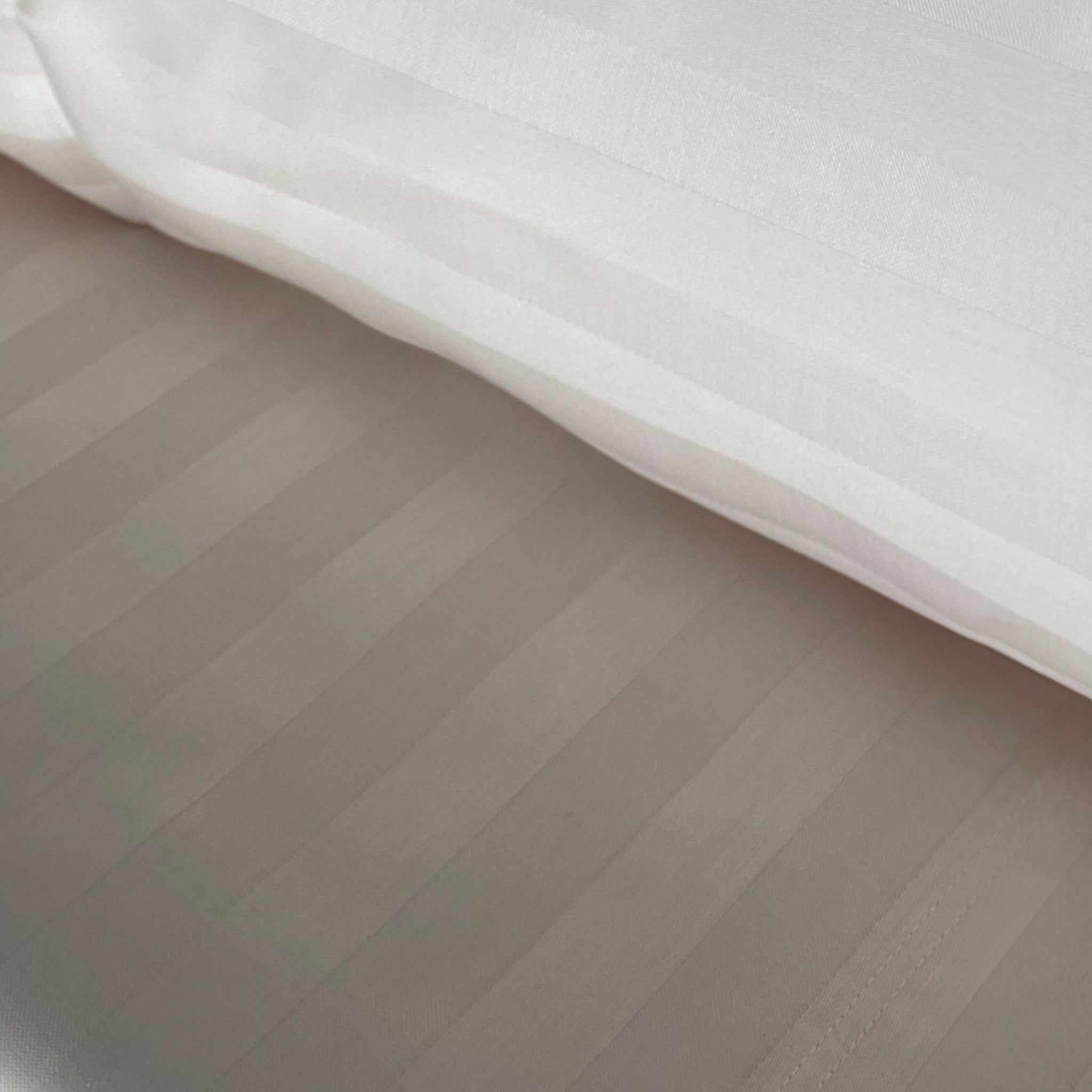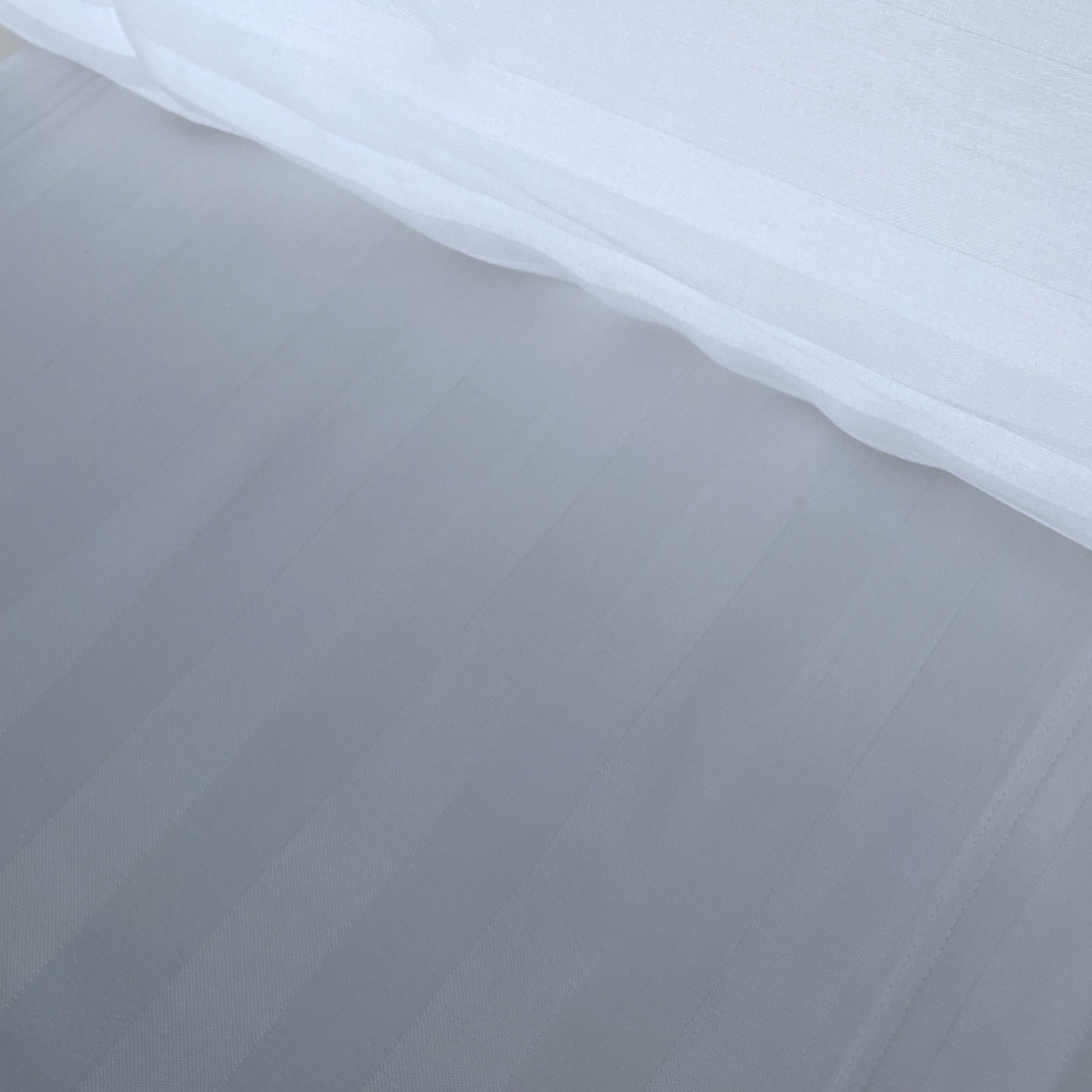 La lavorazione jacquard con effetto rigato tono su tono conferisce un tocco raffinato e luminoso. Disponibile nei colori Bianco, Ghiaccio, Tortora e Panna, è interamente Made in Italy e perfetto per donare un look sofisticato alla tua camera da letto.