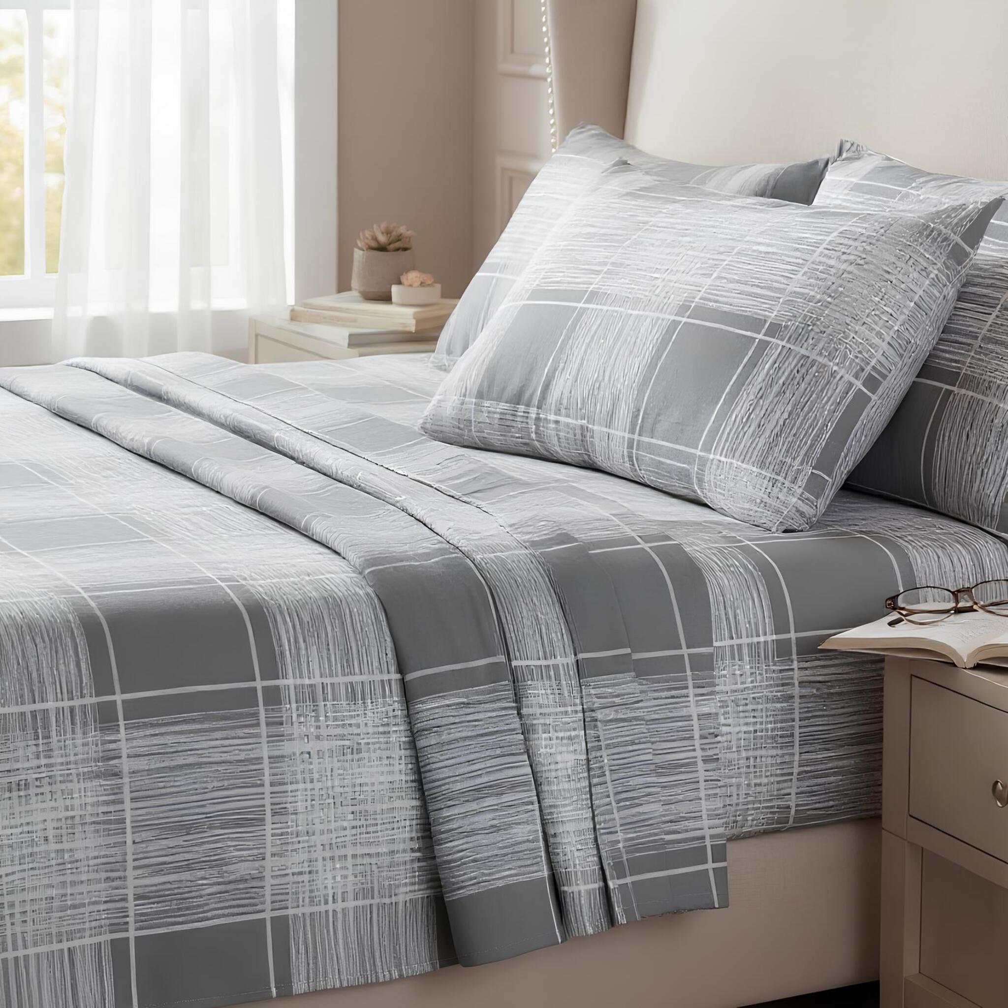 Il completo lenzuola matrimoniale invernale Rebecca Home Art. Nicol con motivo geometrico moderno è la scelta perfetta per chi desidera comfort e stile in ogni stagione fredda.