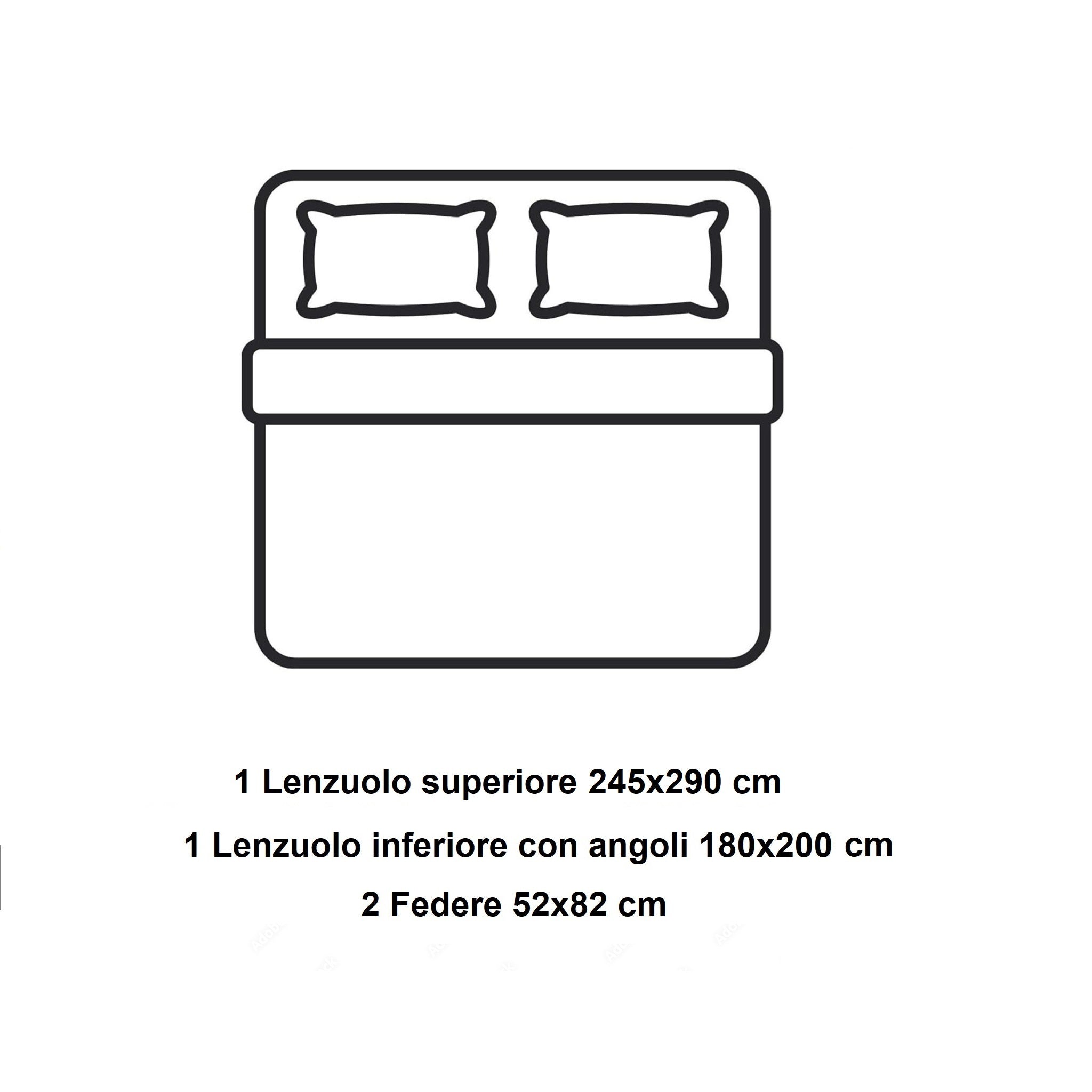🛏️ Set completo 4 pezzi: lenzuolo sopra 245x290 cm, sotto con angoli 180x200 cm e 2 federe coordinate 52x82 cm