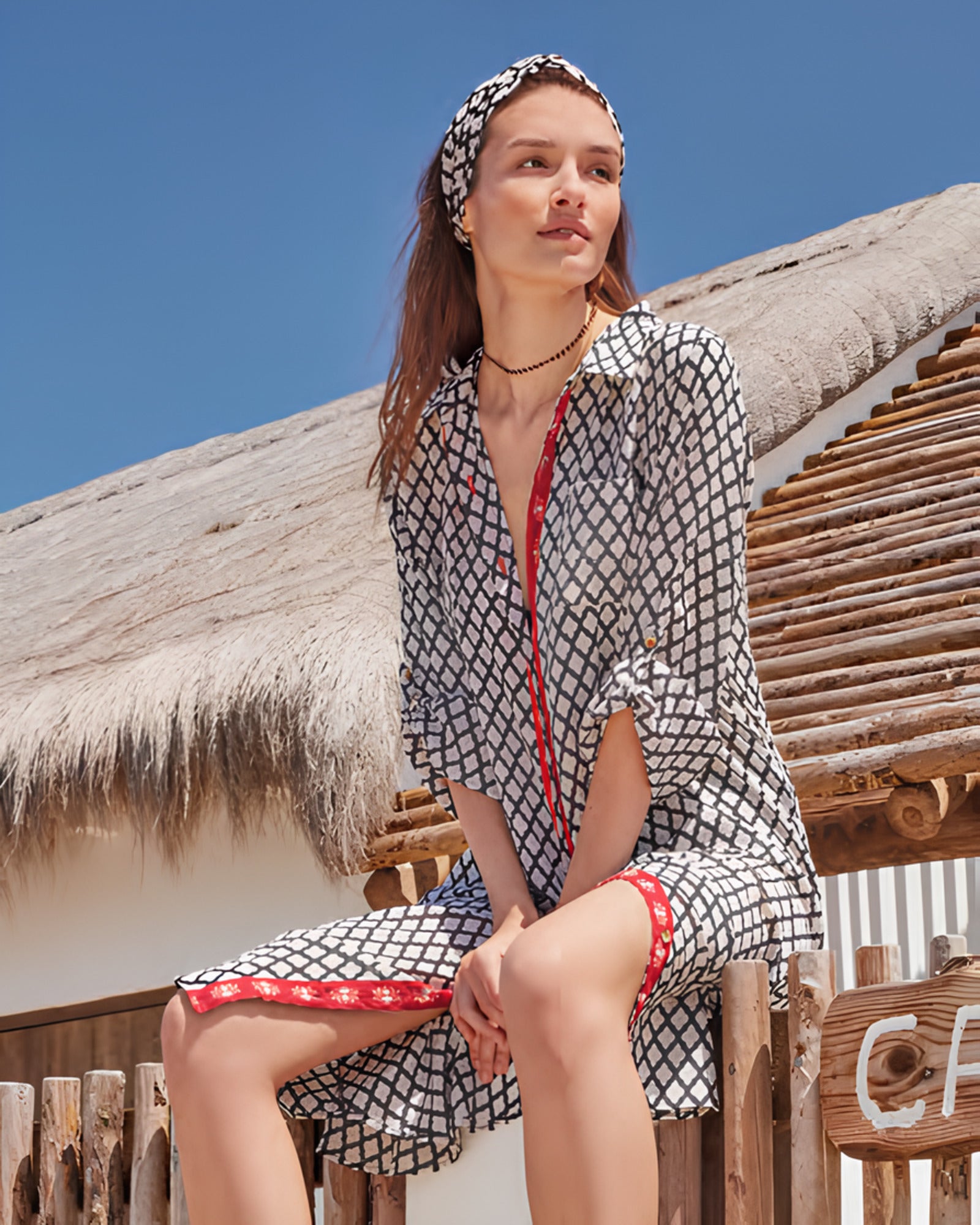 Scopri lo stile senza tempo dell’abito copricostume chemisier Gisela, pensato per accompagnarti con eleganza dalle giornate in spiaggia alle passeggiate sul lungomare.