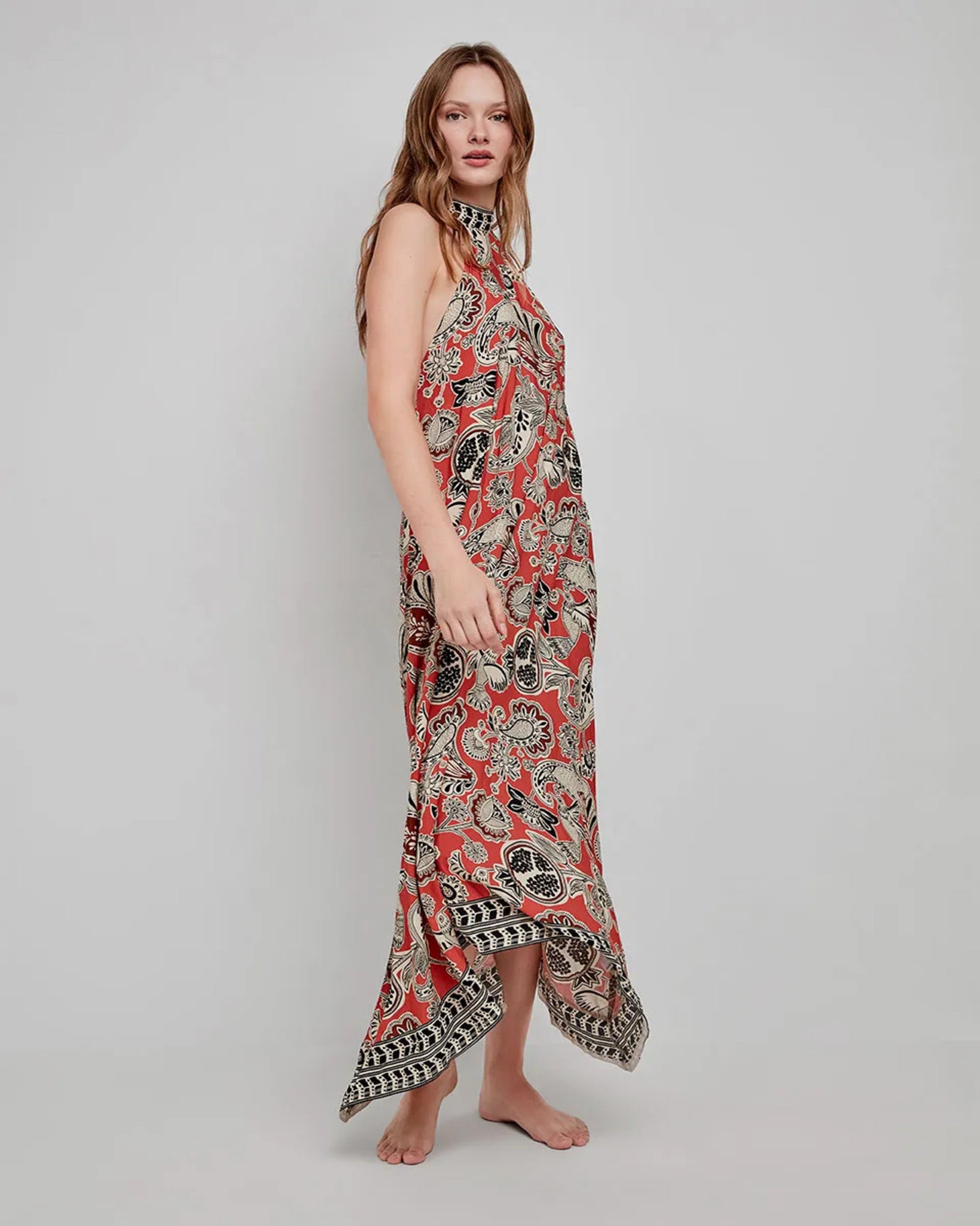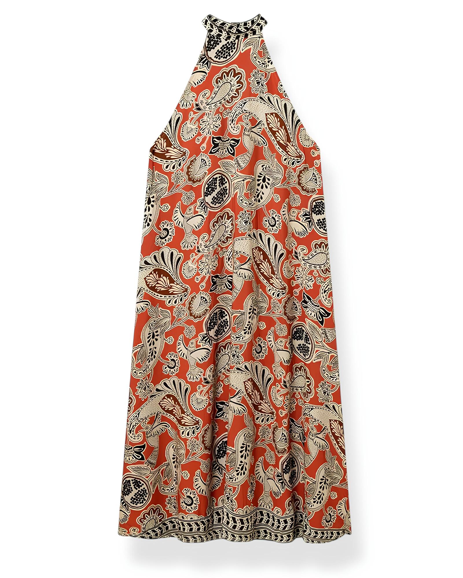 🎨 Fantasia etnica boho: stampa multicolore nei toni del rosso, nero e beige