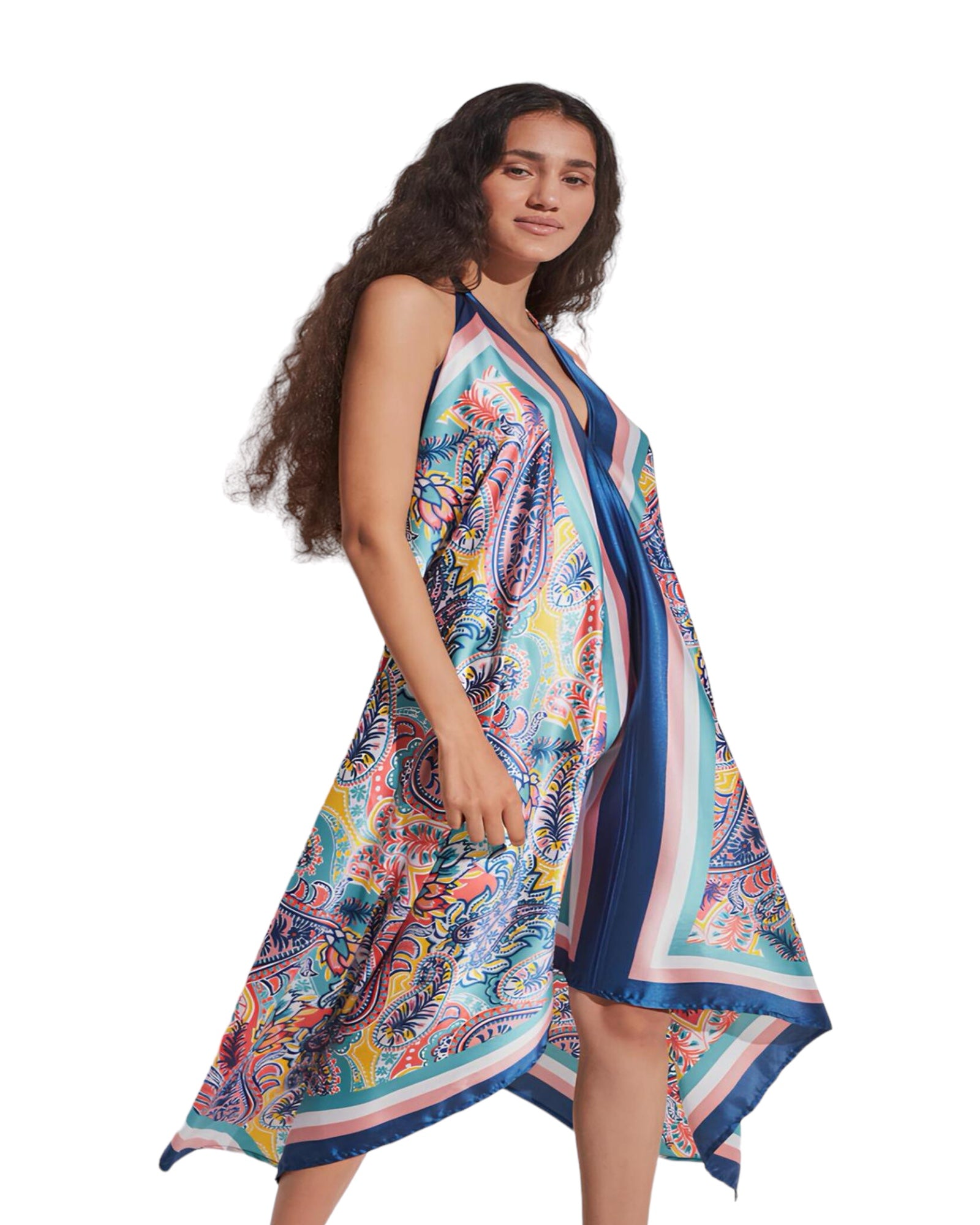 Aggiungi un tocco di eleganza alle tue giornate estive con l’abito copricostume di Gisela. Con il suo vivace motivo paisley e il tessuto leggero, offre comfort e stile in ogni occasione. Perfetto per la spiaggia o la piscina, questo capo versatile è un must-have per il tuo guardaroba estivo.