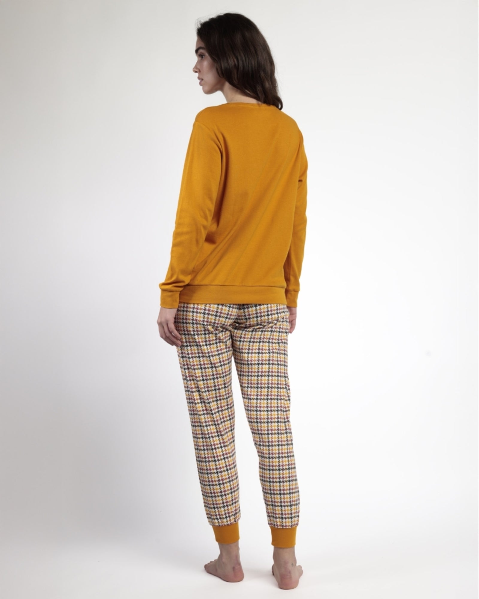 👕 Comodo e pratico – Completo a maniche lunghe con pantaloni lunghi a fantasia pied-de-poule, elastico in vita, coulisse e polsini al fondo.
