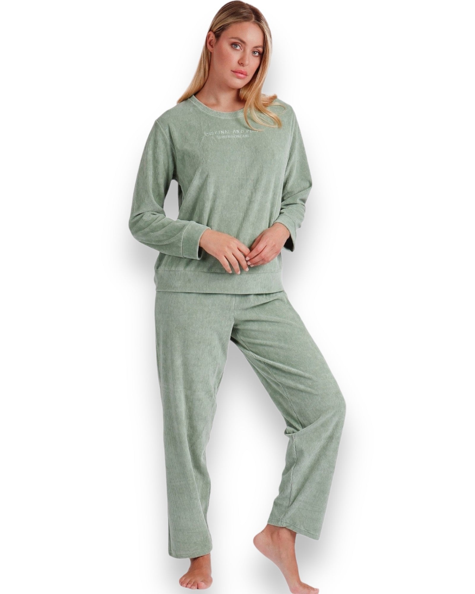 Pantaloni: Lungo in velluto a coste, morbido con elastico in vita regolabile