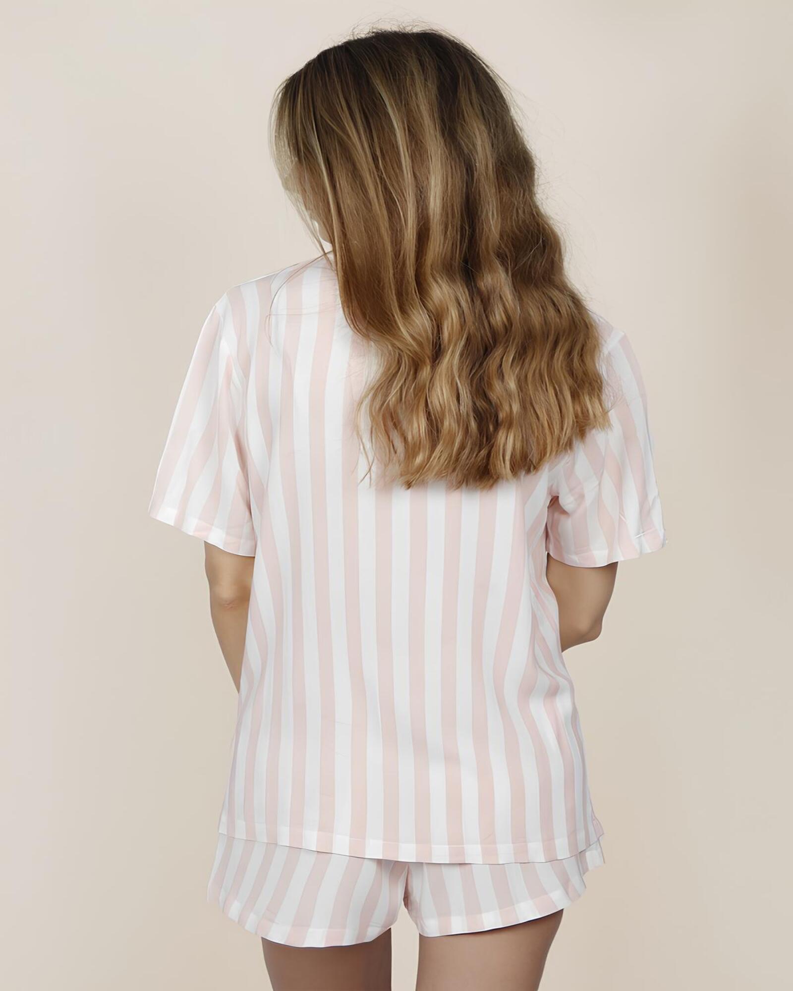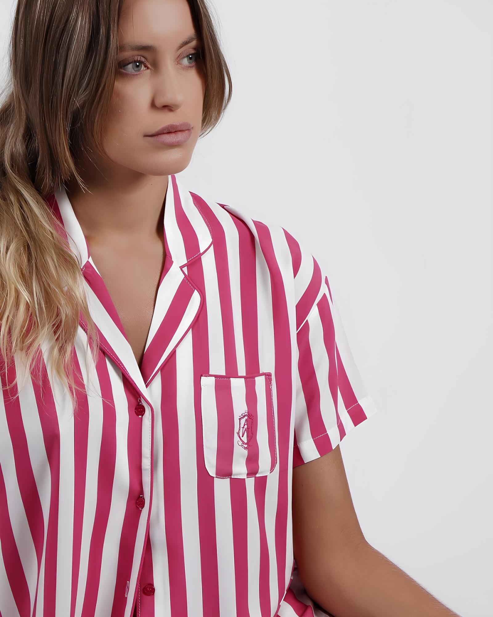 Questo pigiama Admas è sinonimo di fascino senza fine, caratterizzato da una raffinata stampa rigata verticale in finissima viscosa dal taglio classico. Tessuto fresco e morbido al tatto. Confezionato in una bellissima scatola personalizzata Admas.